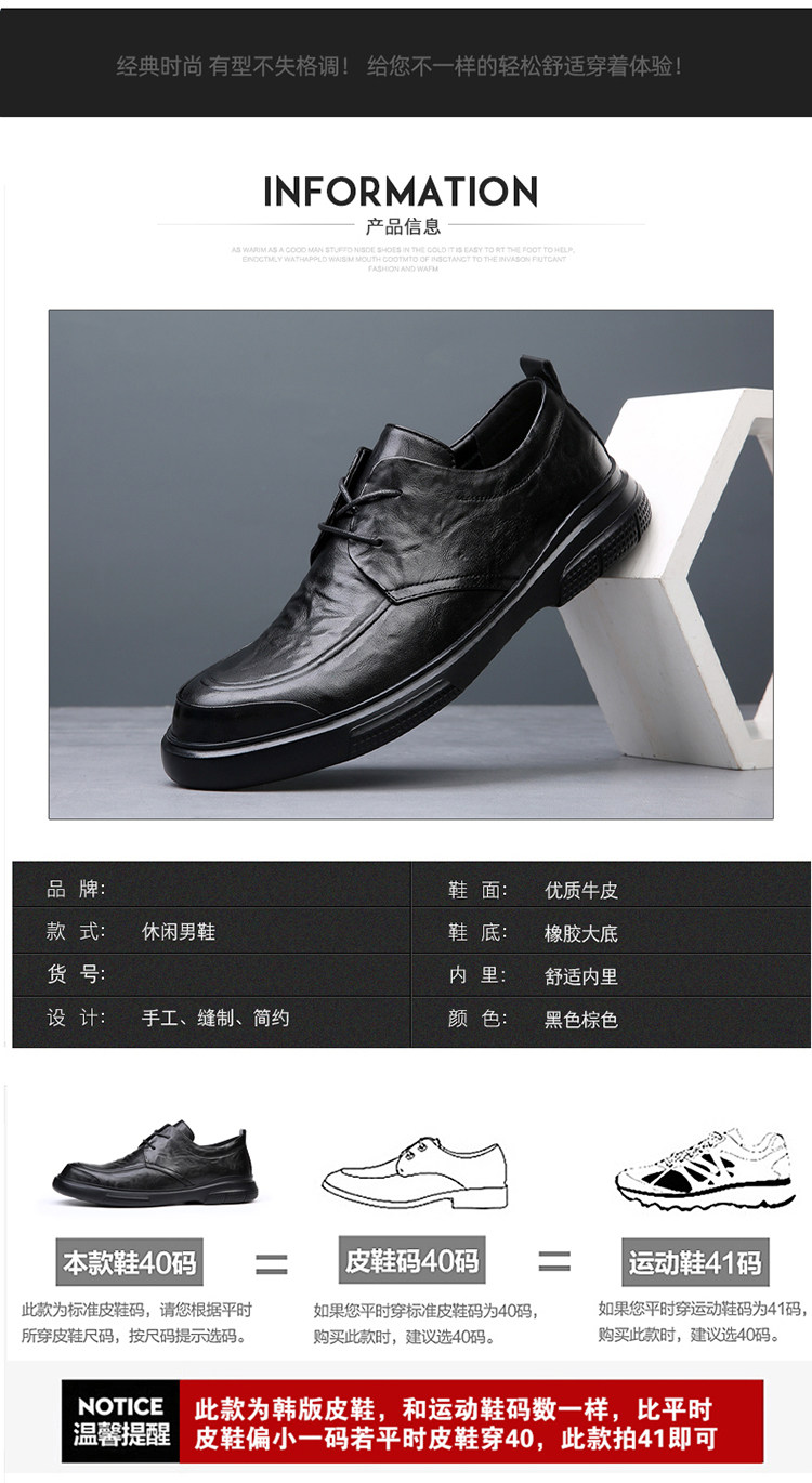 Plover men's shoes autumn men's genuine leather shoes men's business inner height increasing shoes soft sole versatile non-slip casual shoes