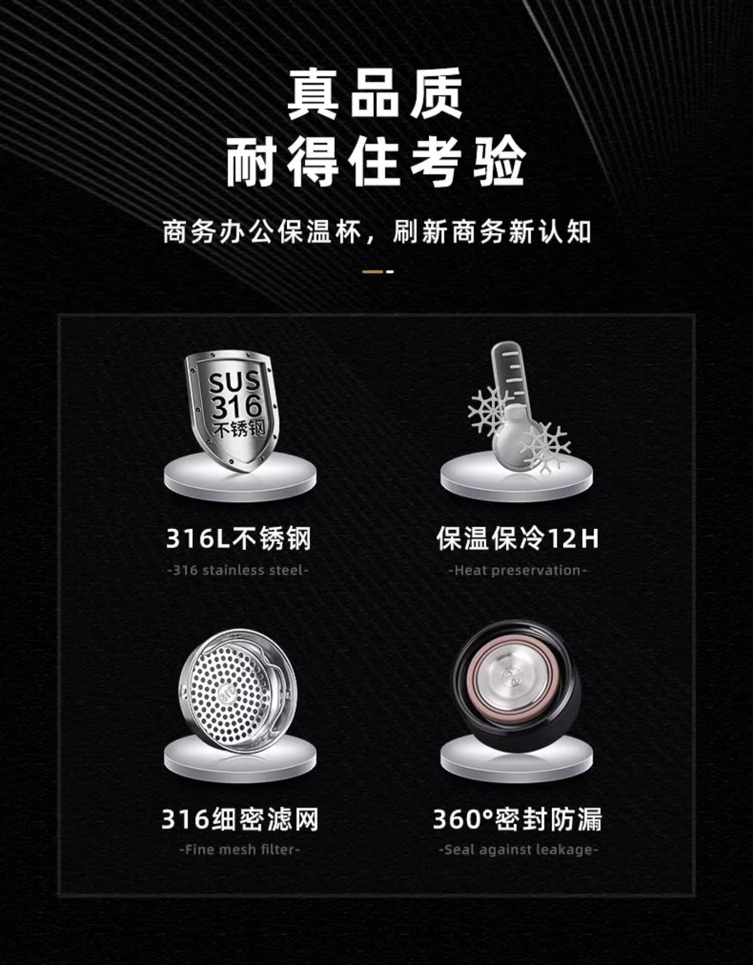 Fuguang Insulated Cup for Men, High-End Portable Business 316 Stainless Steel Large Capacity Tea Brewing Car Water Cup