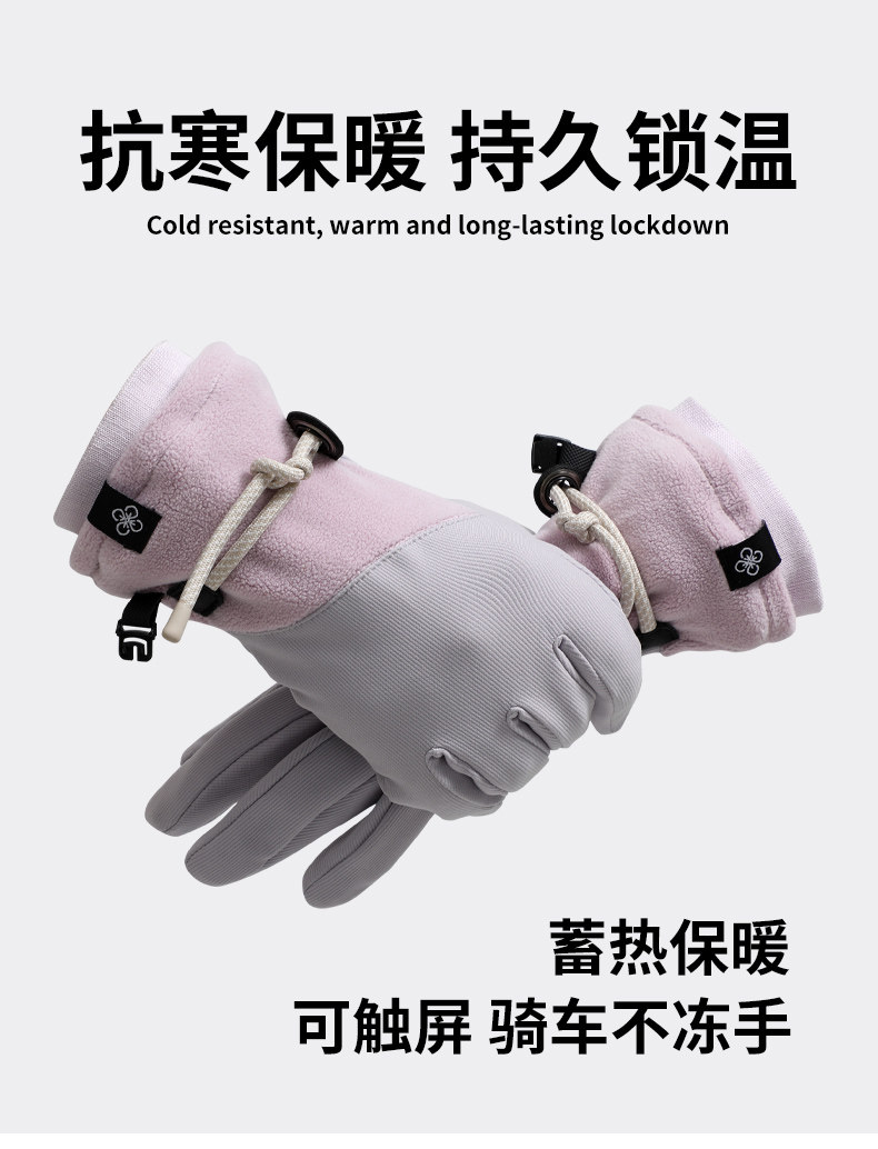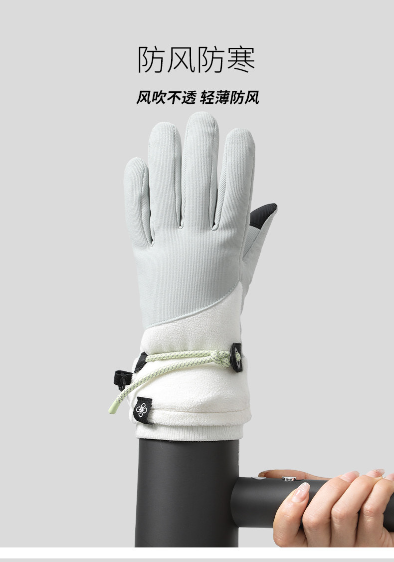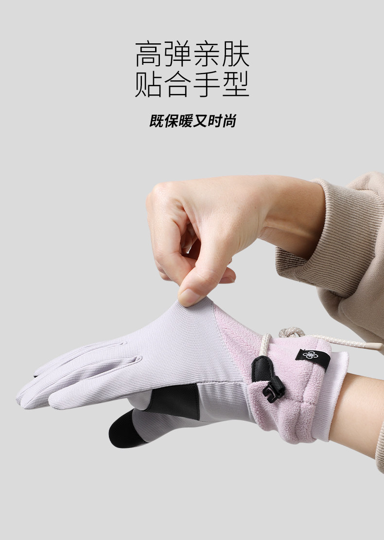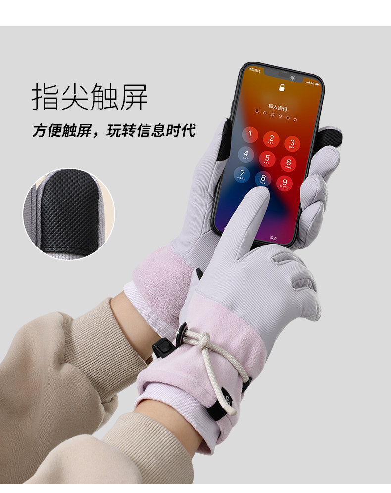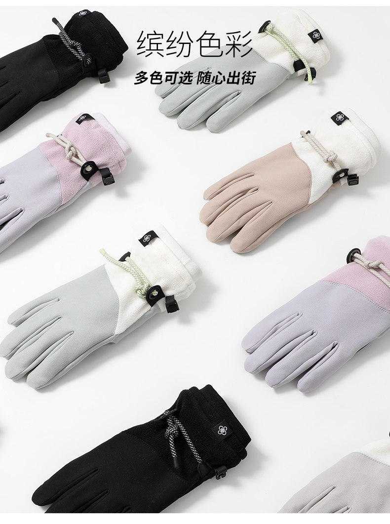 Velvet Gloves for Women, Winter Warm Touch Screen Outdoor Skiing Five-Finger Anti-Slip, Windproof and Cold-Proof Electric Vehicle Cycling Gloves