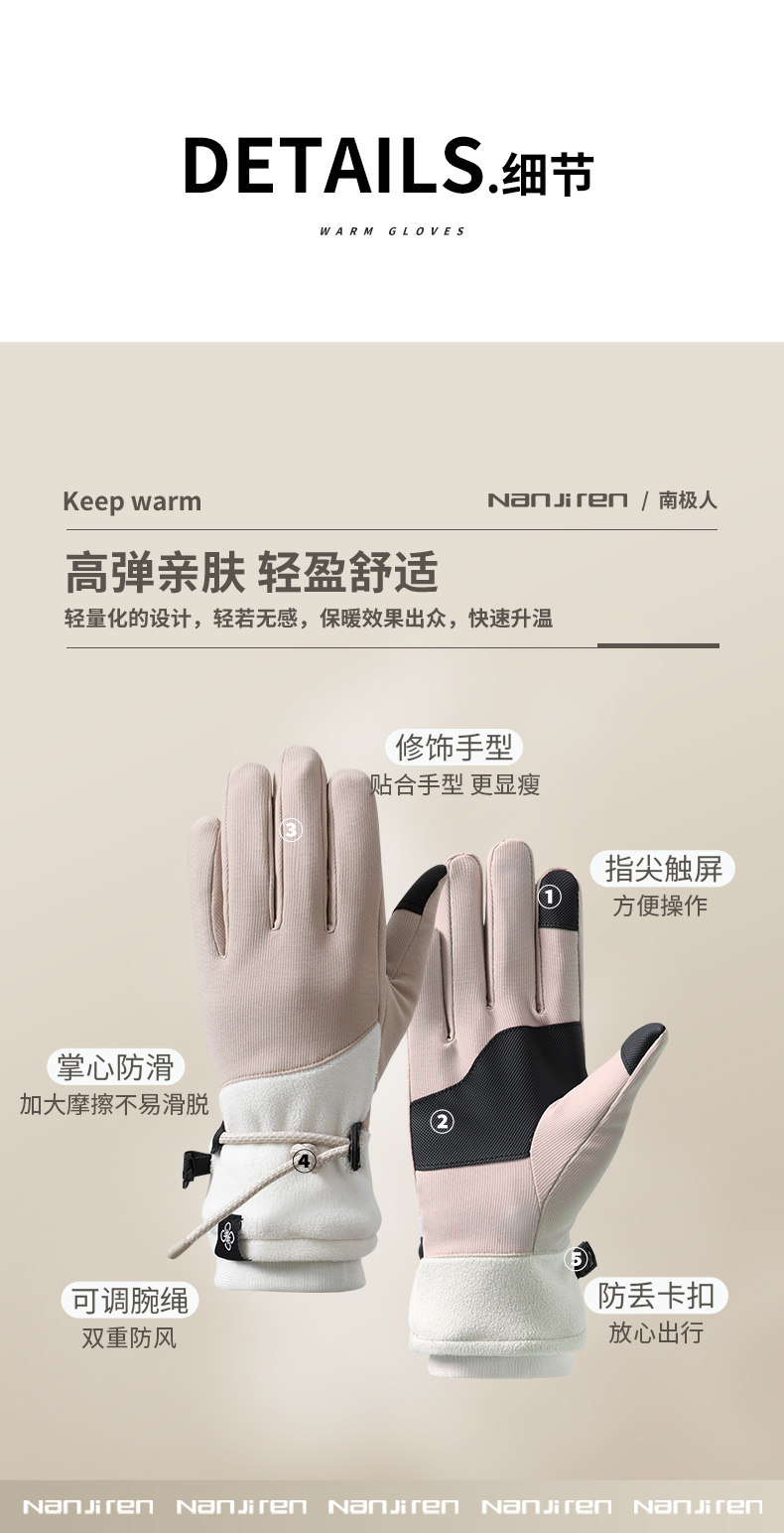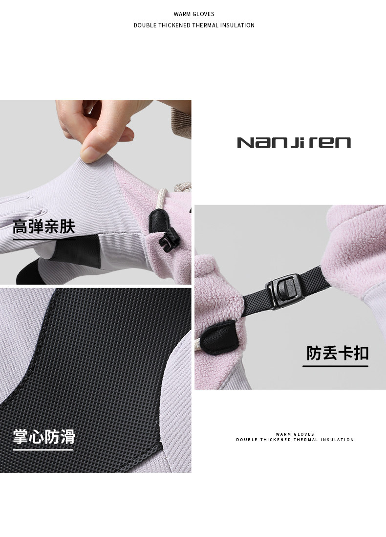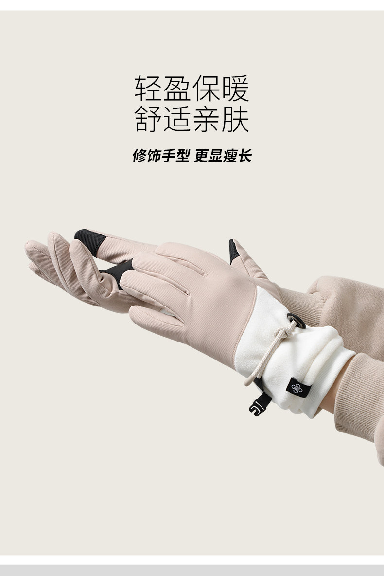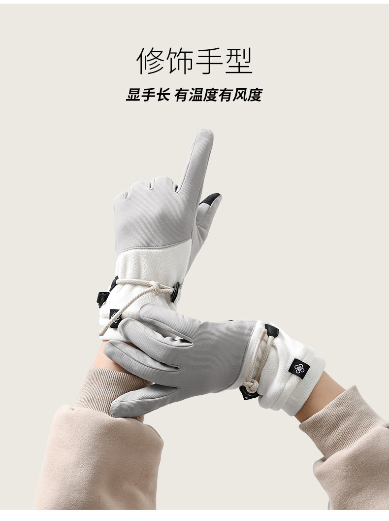 Velvet Gloves for Women, Winter Warm Touch Screen Outdoor Skiing Five-Finger Anti-Slip, Windproof and Cold-Proof Electric Vehicle Cycling Gloves