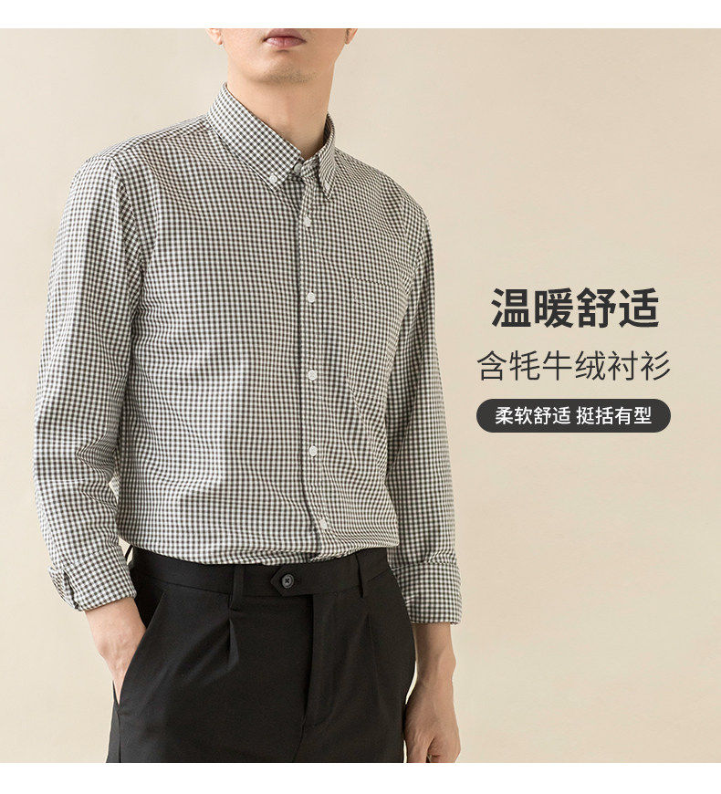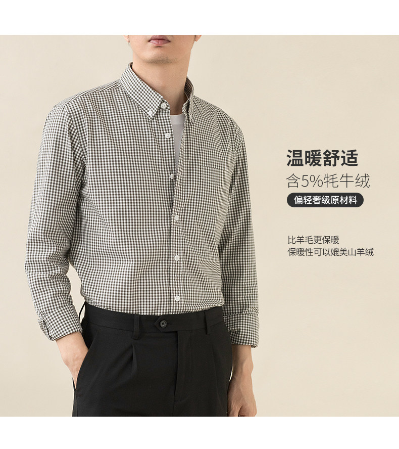 2025 Autumn/Winter New Yak Wool Long-Sleeve Brushed Shirt for Men, Casual Business Dad Shirt, Men's Light Luxury for Young and Middle-Aged