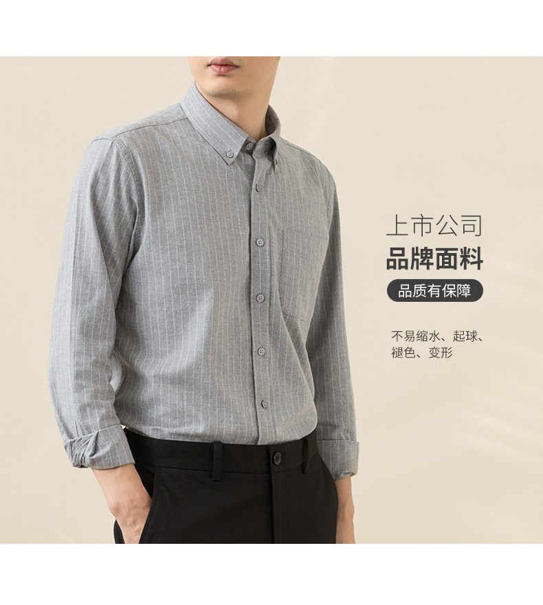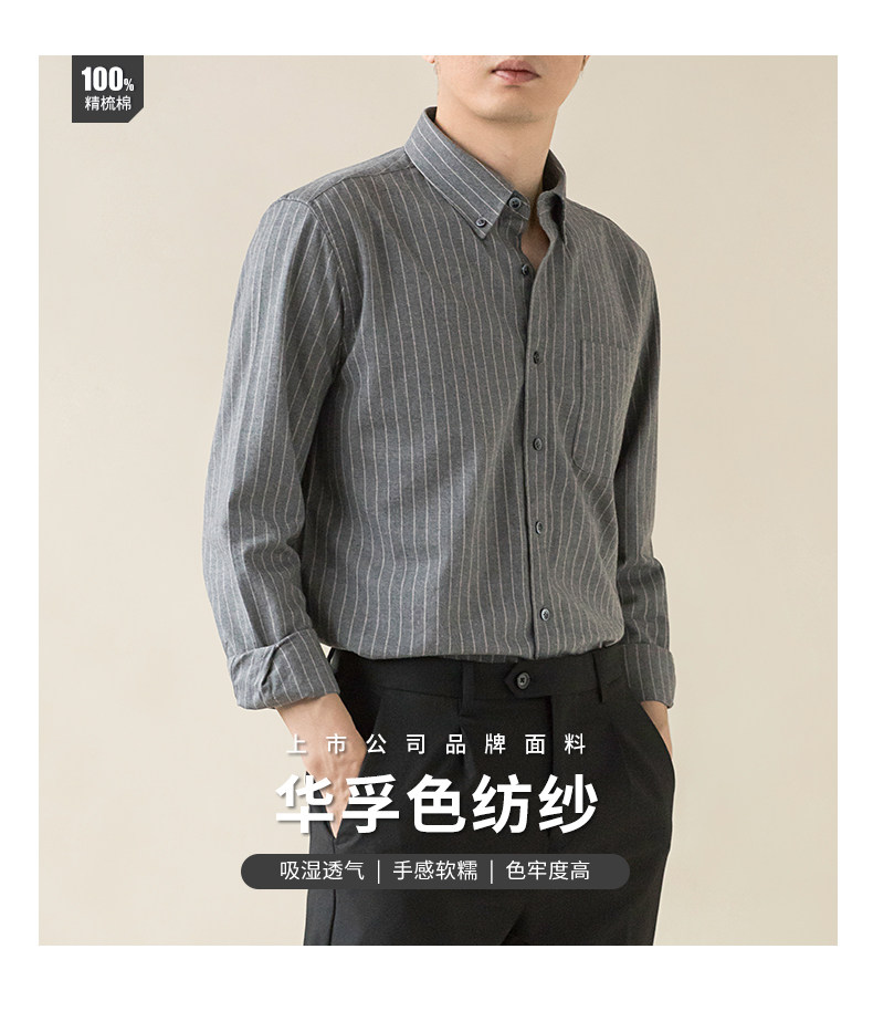 Мужская рубашка из чистого хлопка с текстурой и начесом, в полоску, повседневная, с длинным рукавом, осень 2025, высококачественная деловая рубашка