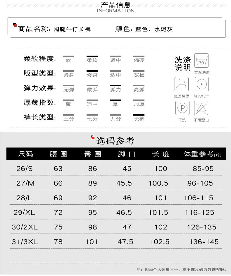 Outseam (cm) 99 cm 101.5 cm 104 cm 106.5 cm 109 cm