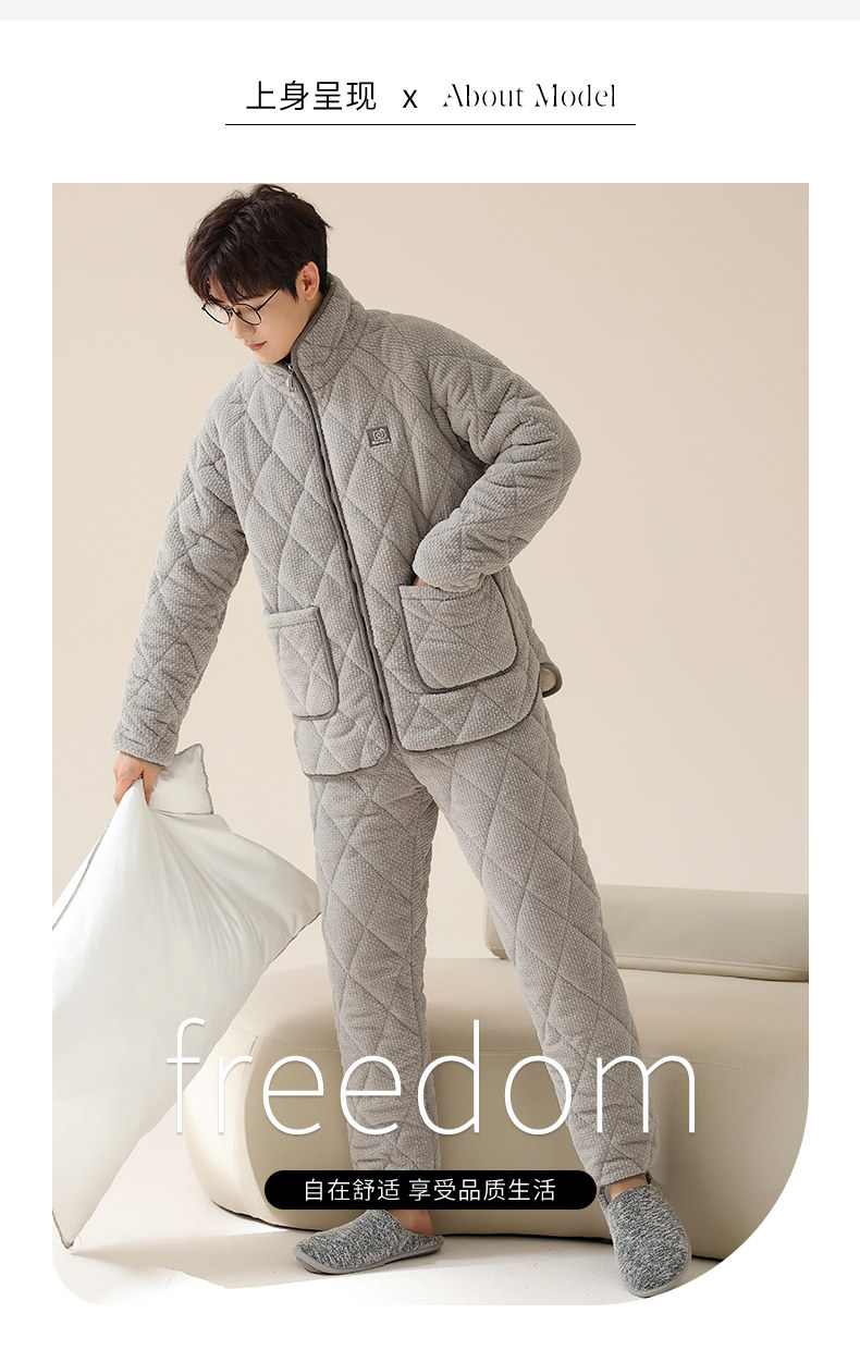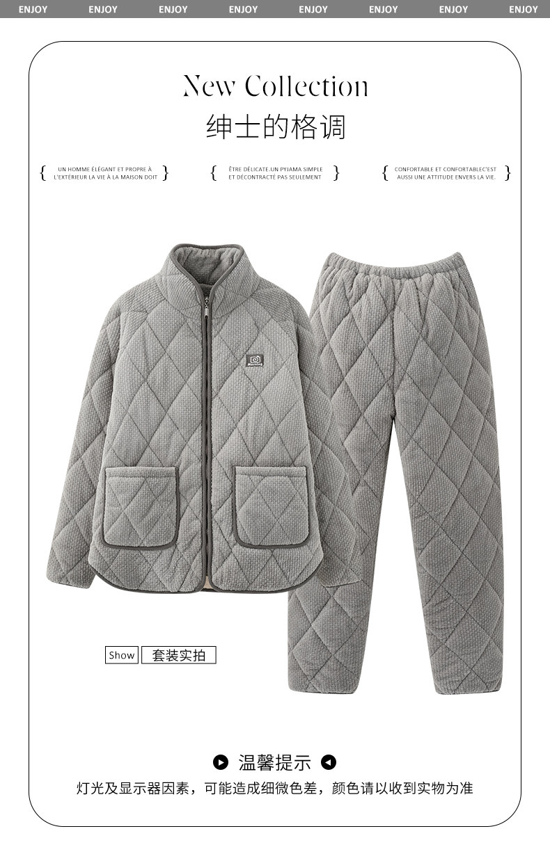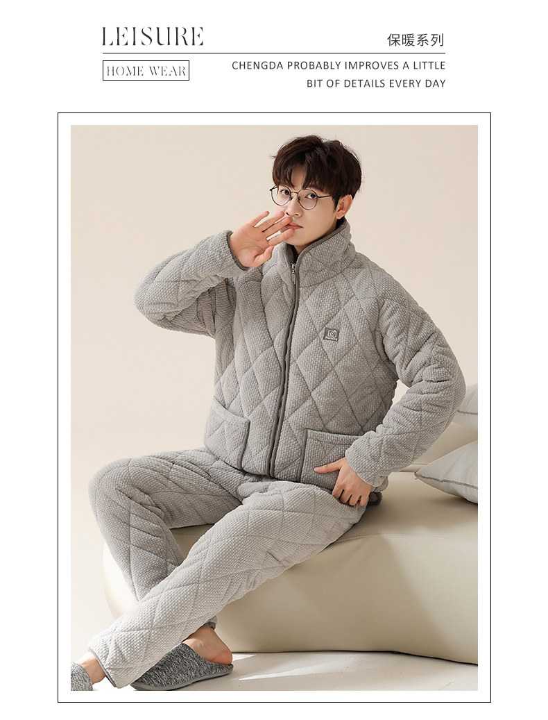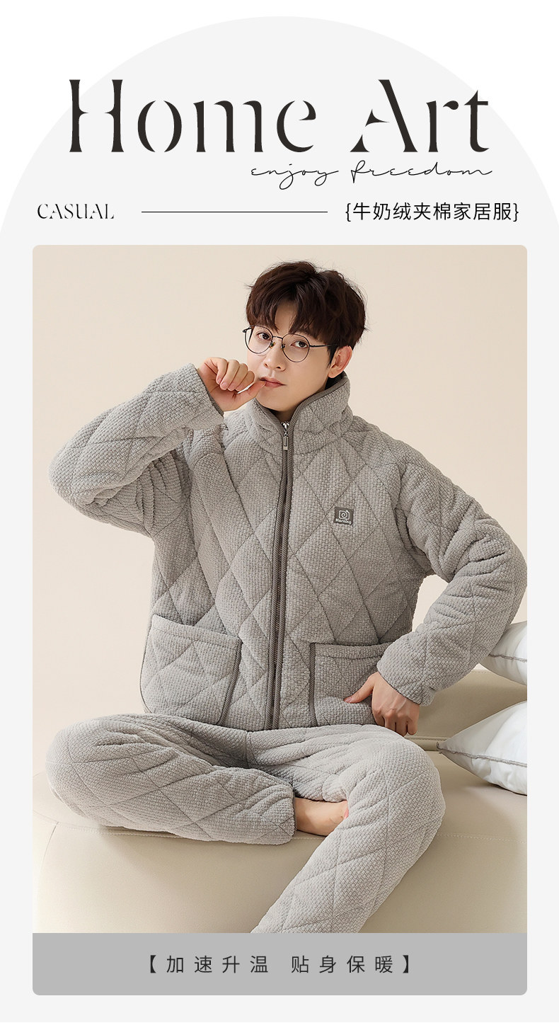 Catman pajamas men's winter three-layer quilted plus velvet thickened coral velvet 2025 new men's home wear set