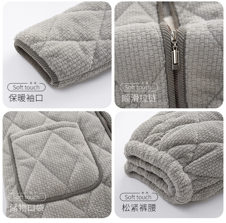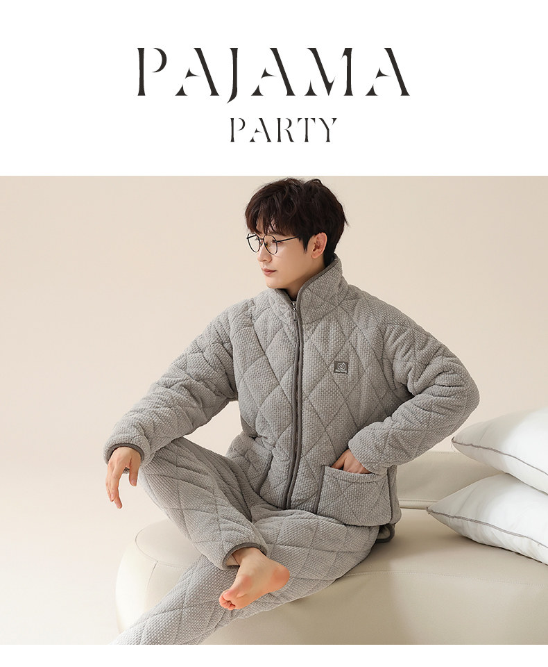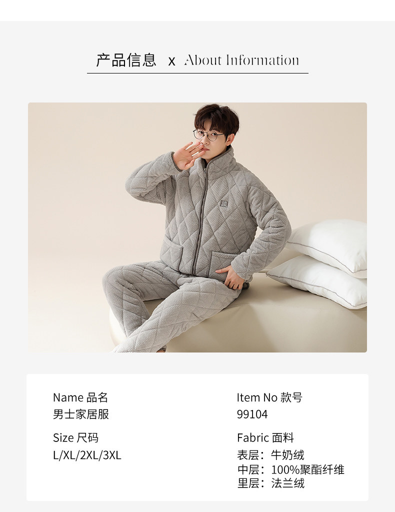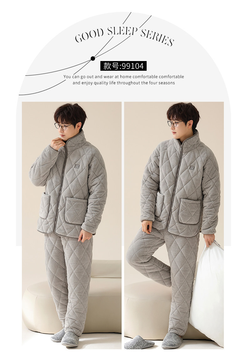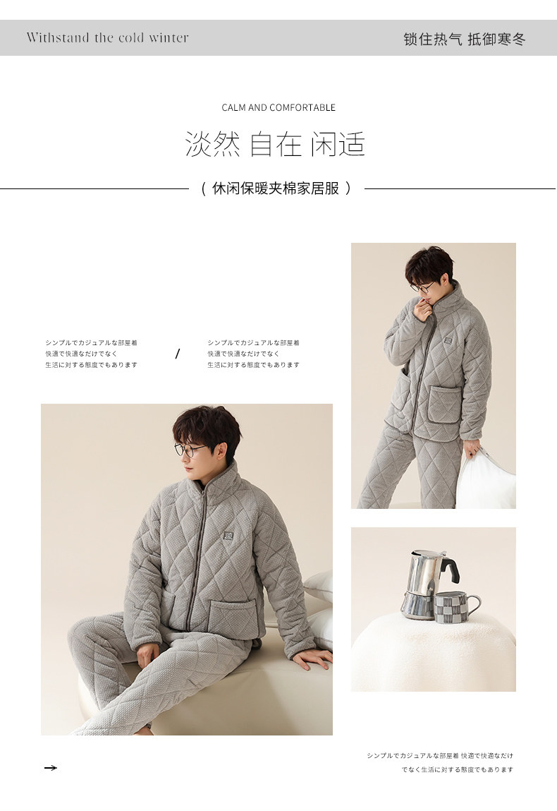 Catman pajamas men's winter three-layer quilted plus velvet thickened coral velvet 2025 new men's home wear set