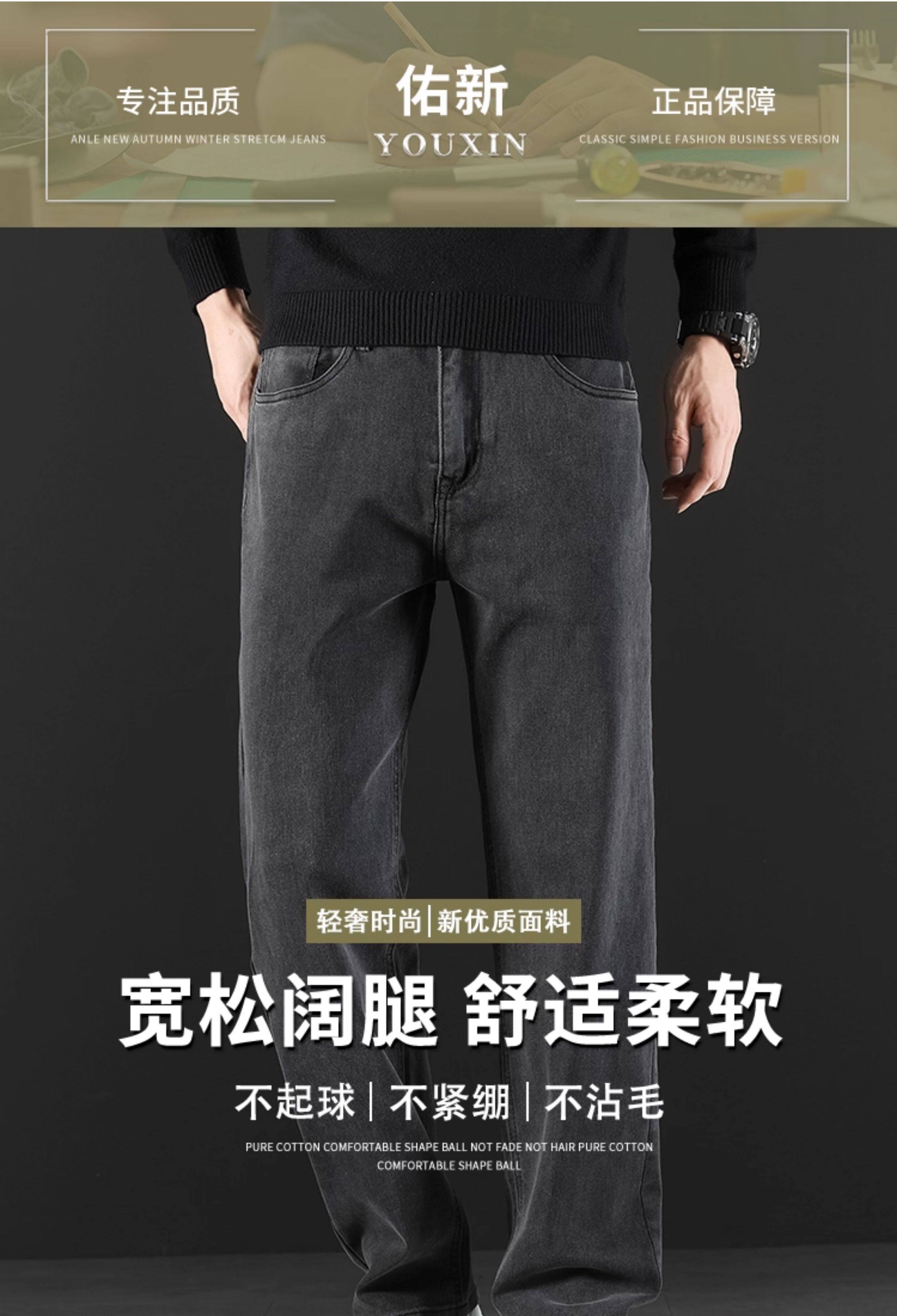 High-End Straight-Leg Jeans for Men 2026 New Spring and Autumn Style Loose Trendy Wide-Leg Pants Large Size Casual Trousers
