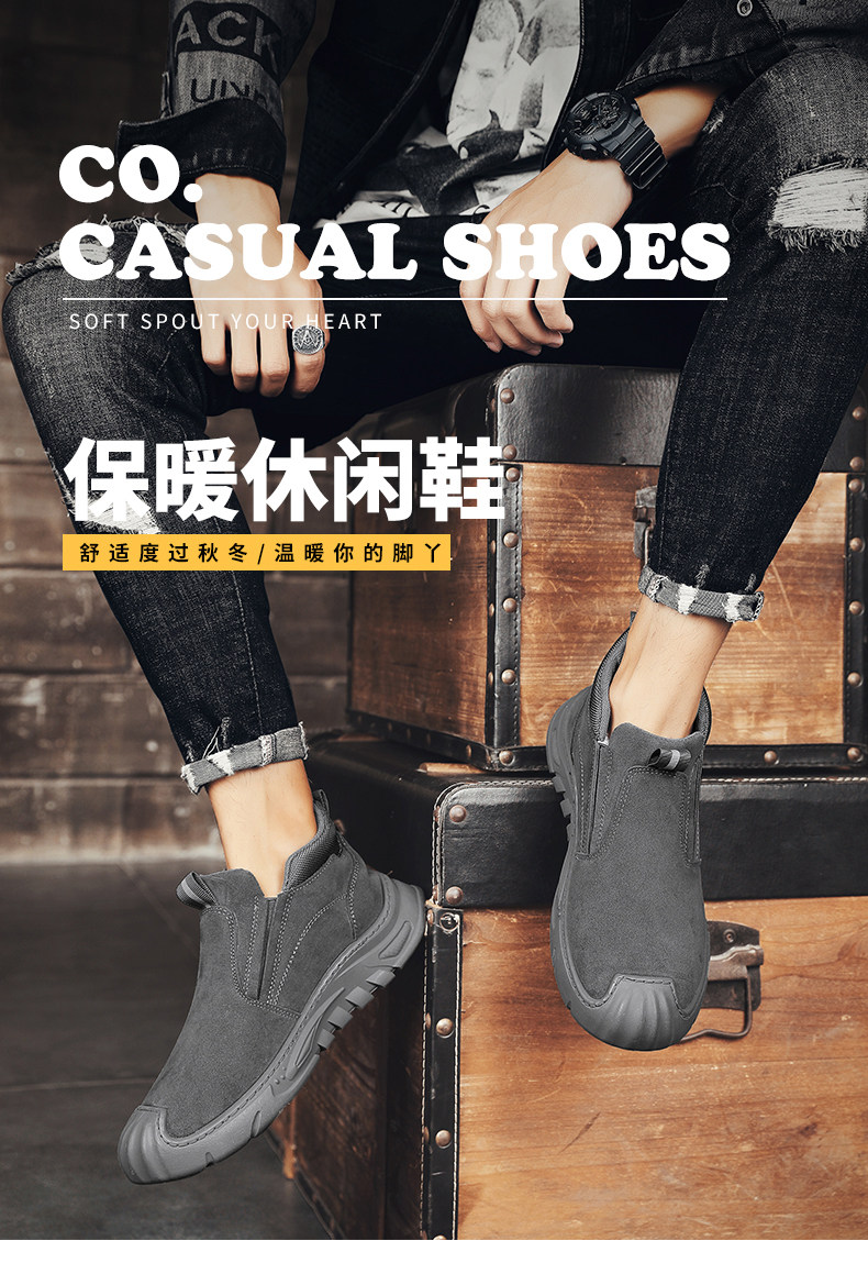 Winter men's shoes 2024 new style plus velvet to keep warm and thickened old Beijing cotton shoes one-step old people's sports labor insurance trendy shoes