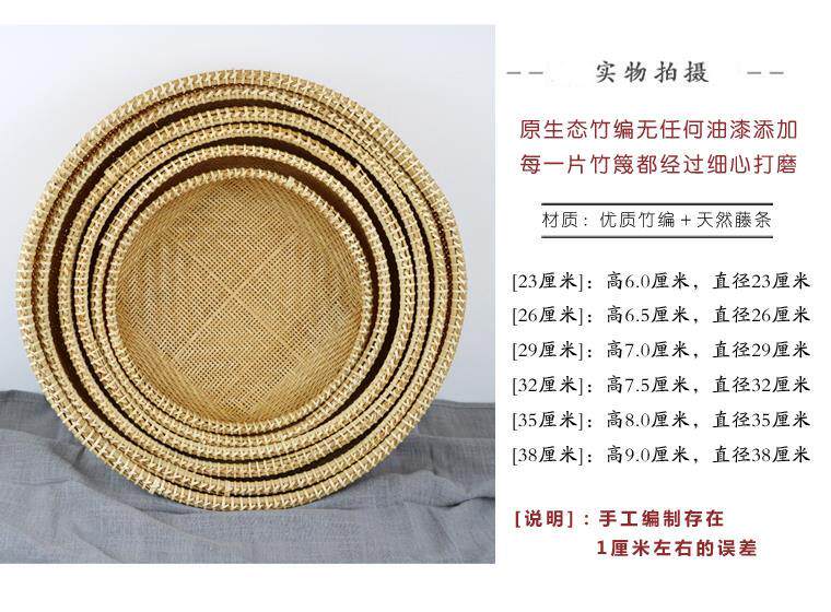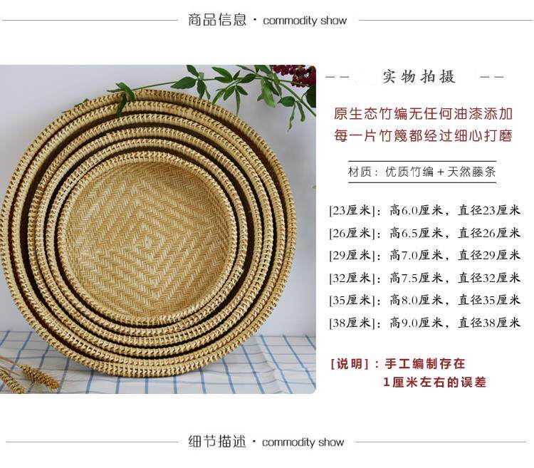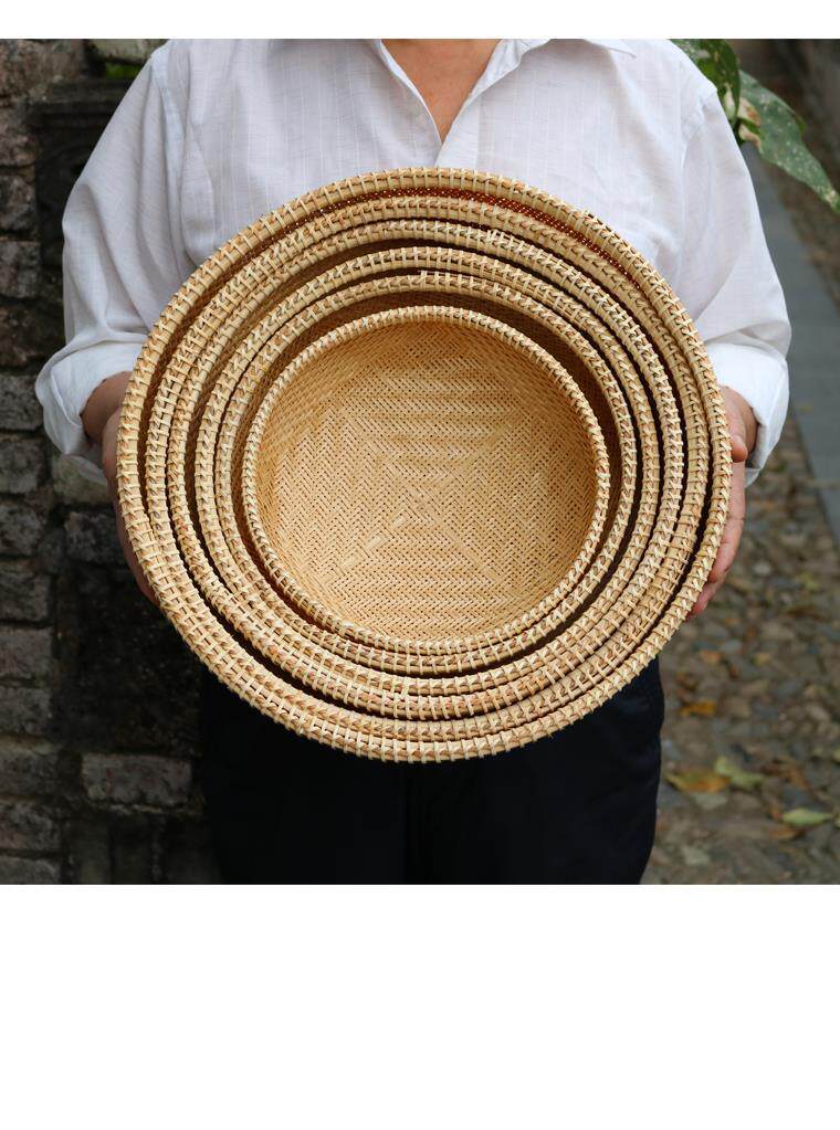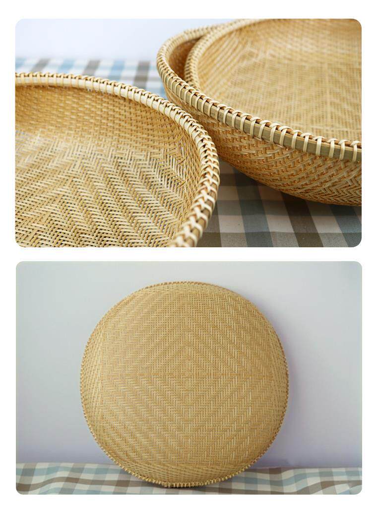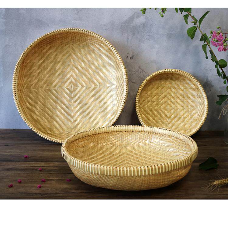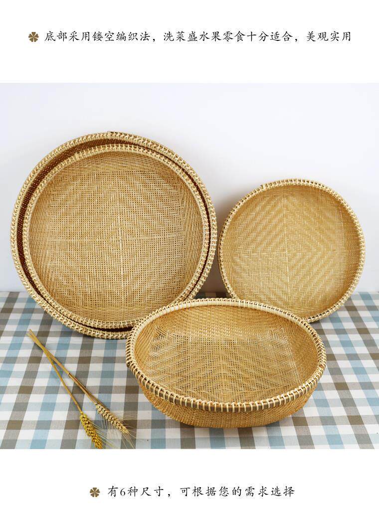 Handmade bamboo products hotel farmhouse steamed bread basket vegetable dustpan fruit basket dry goods drying sieve round storage tray