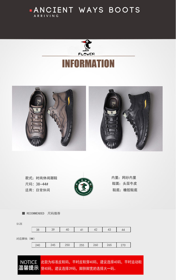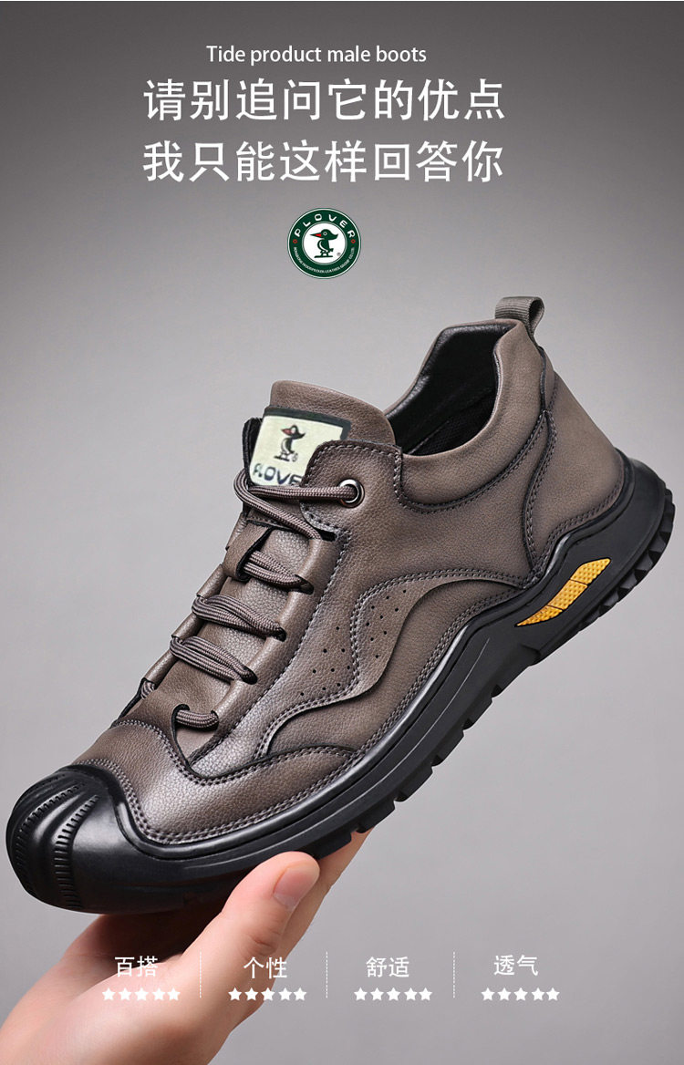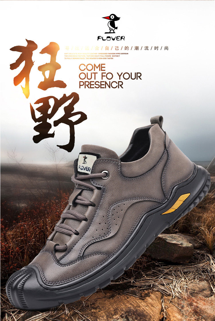 Plover men's shoes 2025 new genuine leather shoes outdoor shoes casual shoes inner heightening shoes soft sole non-slip hiking shoes