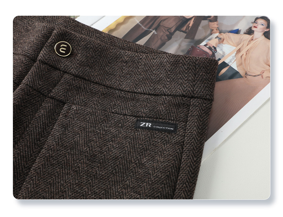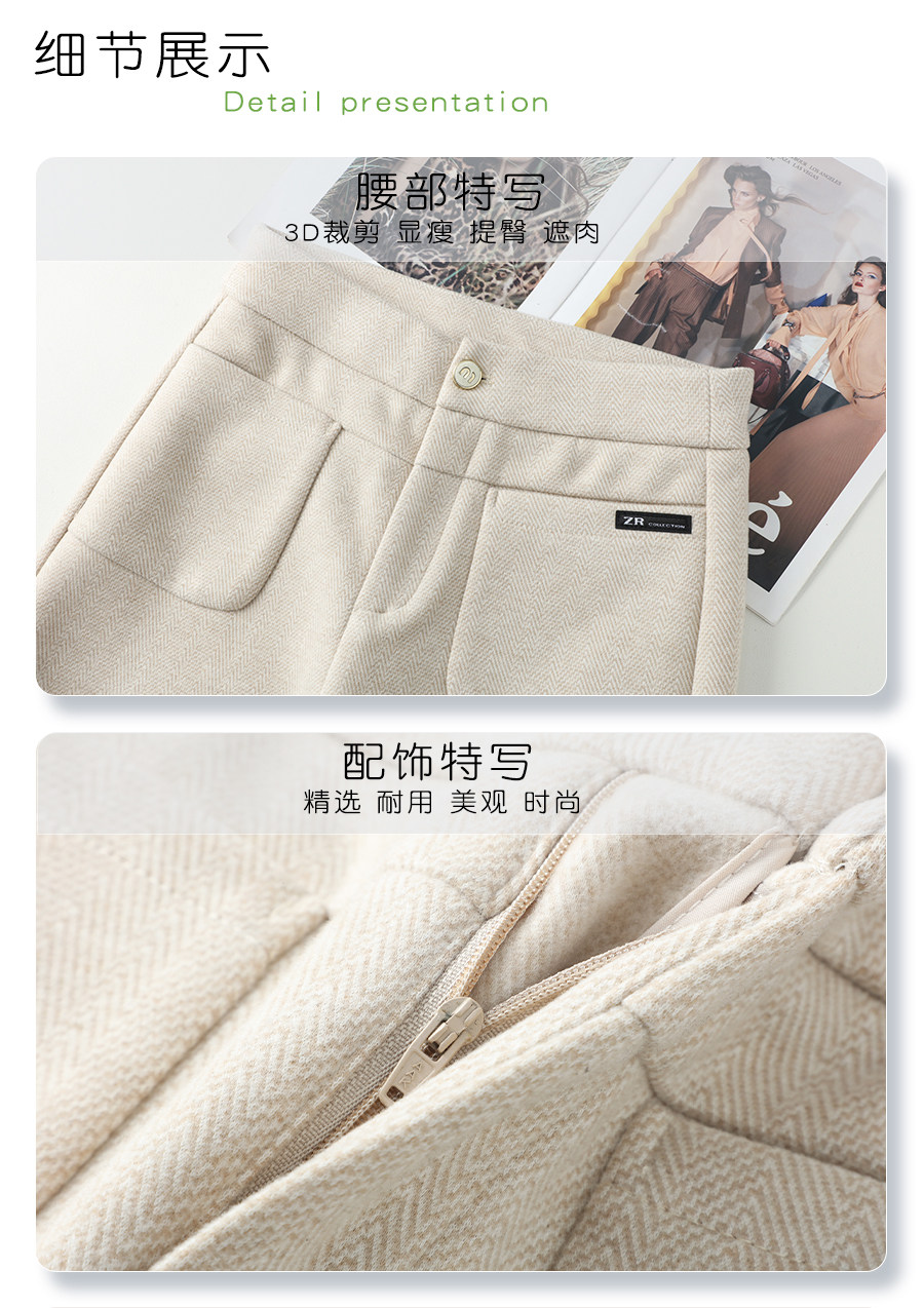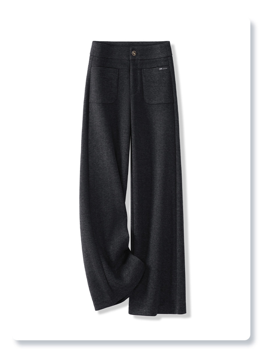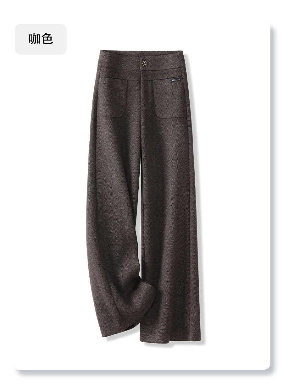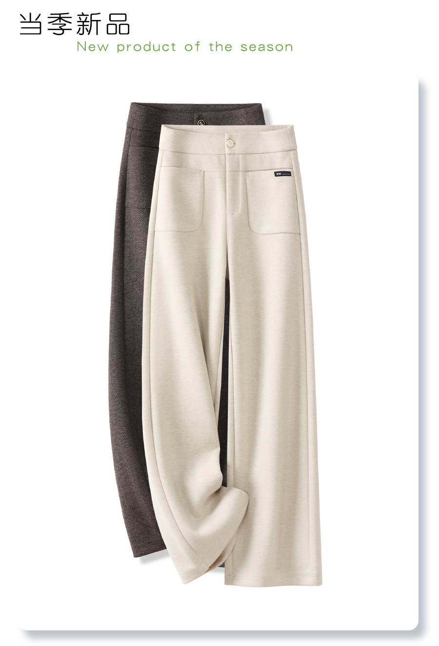 Woolen wide-leg pants for women in autumn and winter 2024 new hot style narrow straight pants winter plus velvet thickened glutinous rice pants