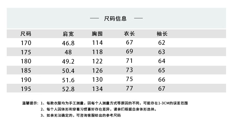 China (cm) 165 / 88-90 170 / 96-98 175 / 108-110 180 / 118-122 185 / 126-130