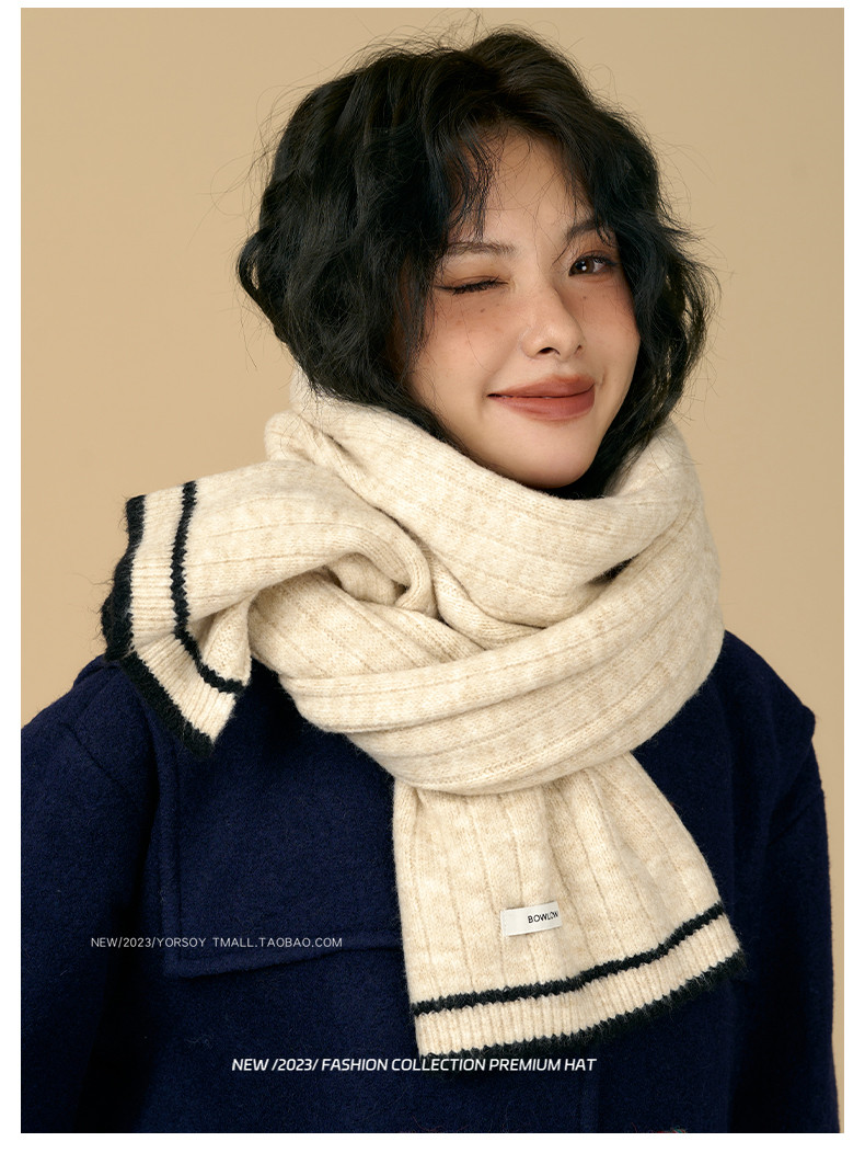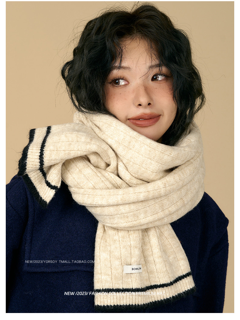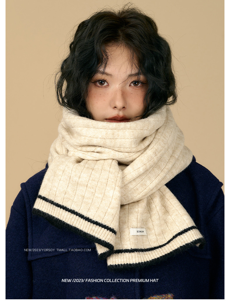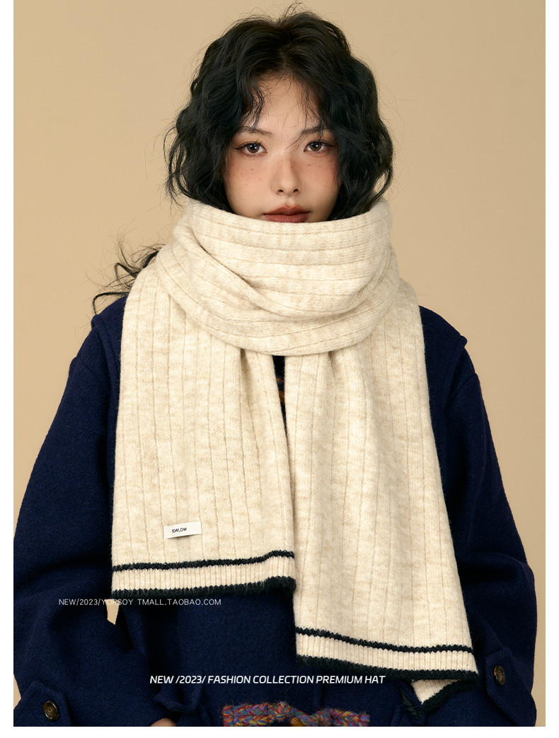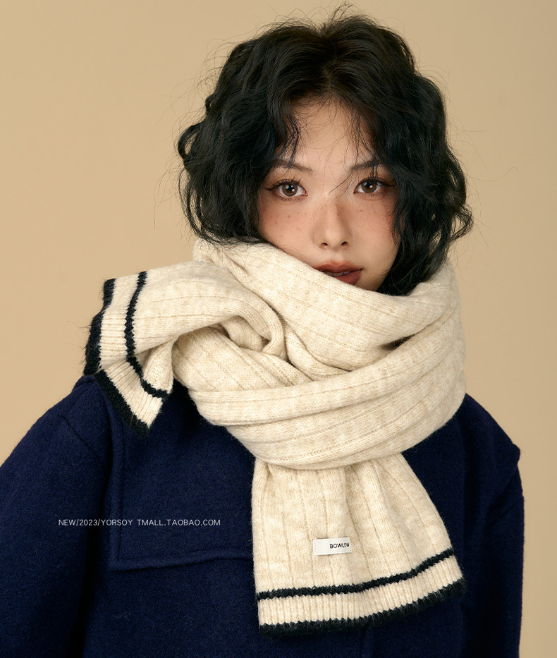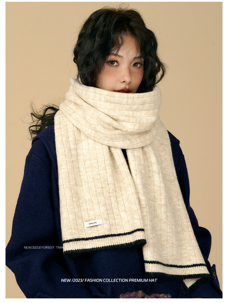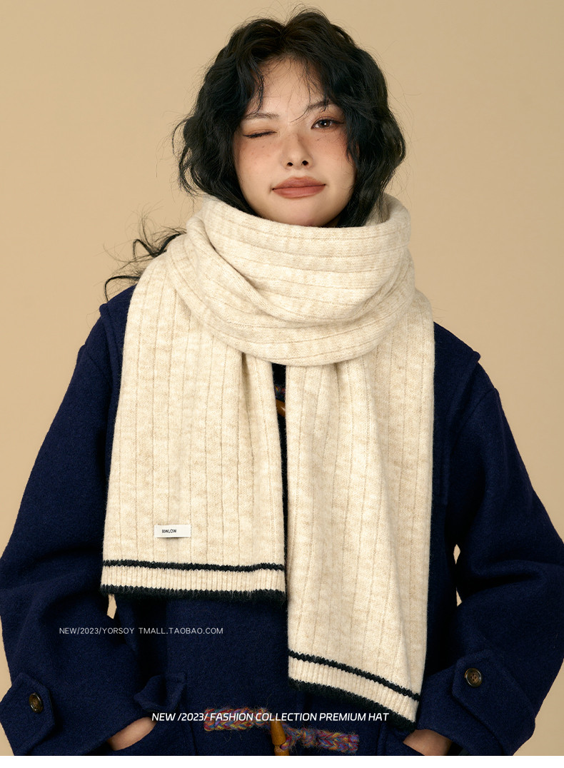 Soft White Scarf for Women, Winter Retro College Style, Atmospheric, Student Couple, Thickened, Warm Neck Warmer for Men