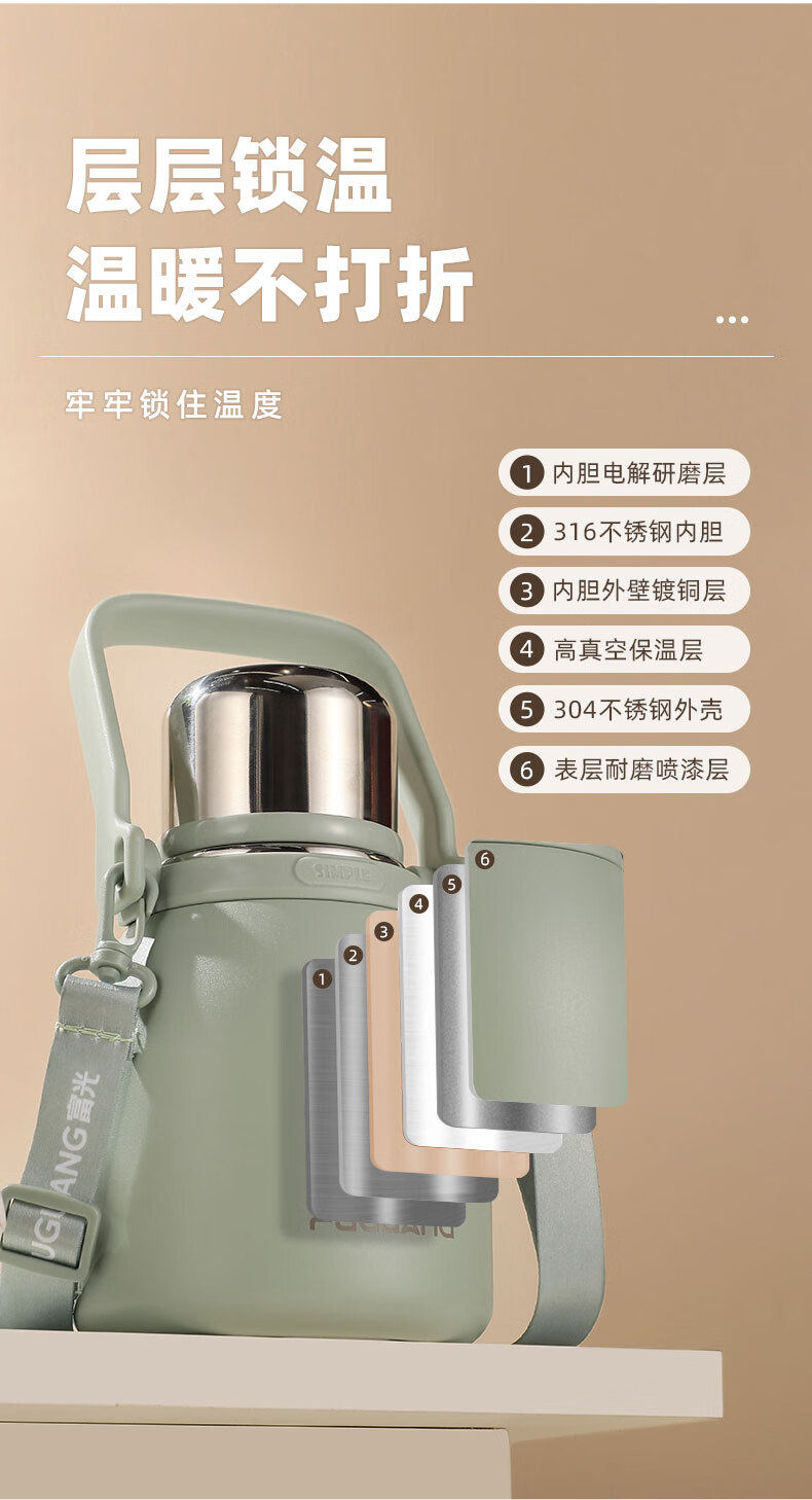 Fuguang Large Capacity Thermos Cup 316 Stainless Steel Men's and Women's Sports Portable Insulated Water Bottle Large Capacity Cup