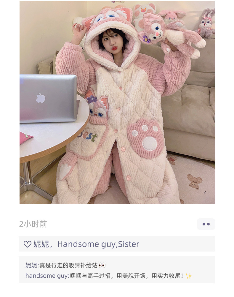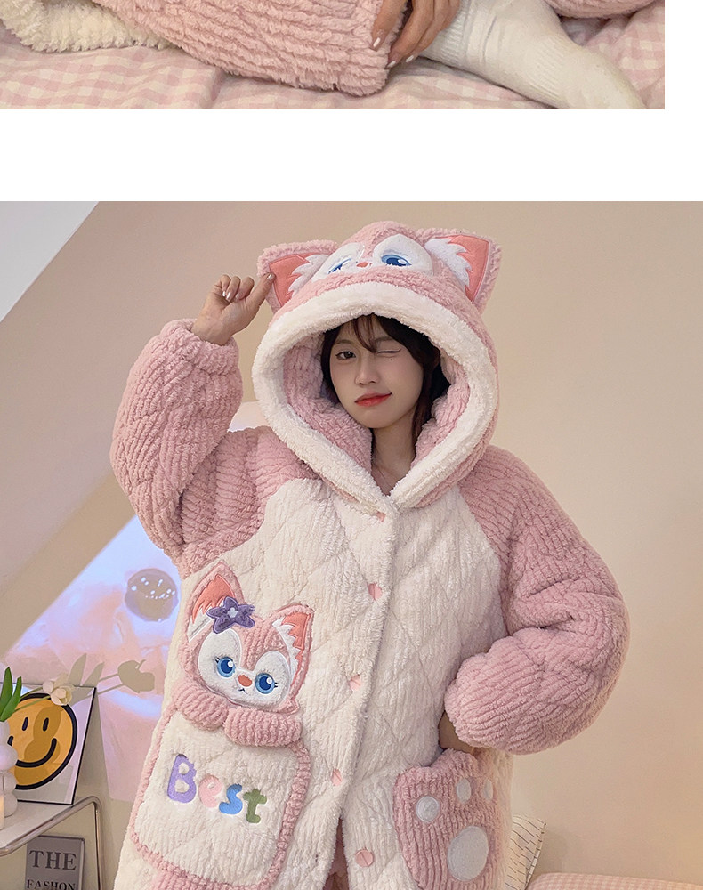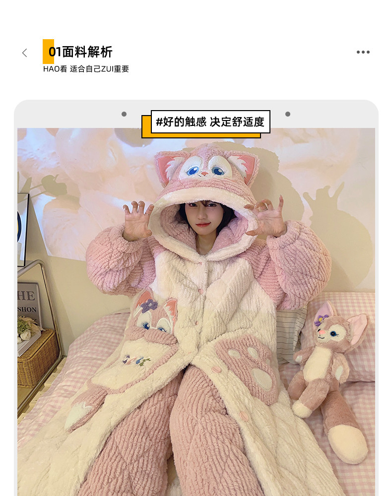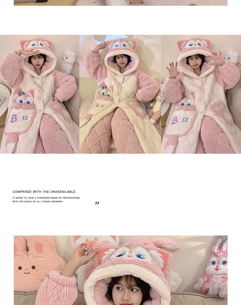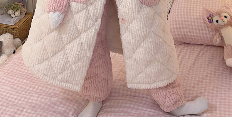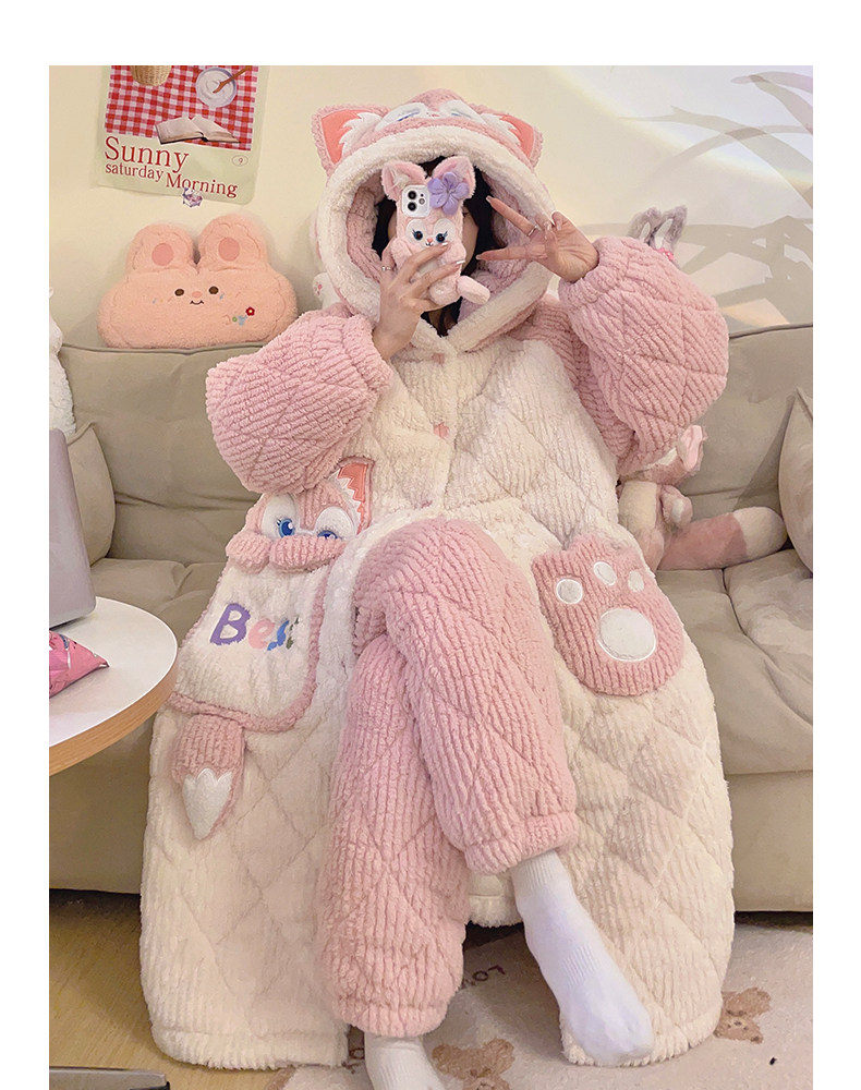 2026 New Autumn and Winter Three-Layer Quilted Women's Nightgown Coral Fleece Pajama Set with Extra Fleece and Thickened Loungewear