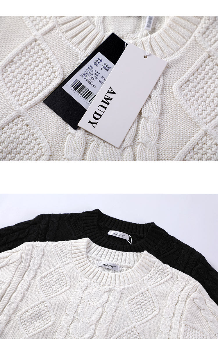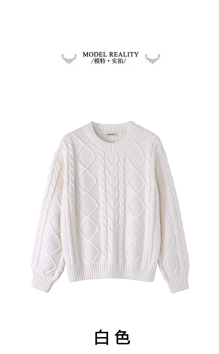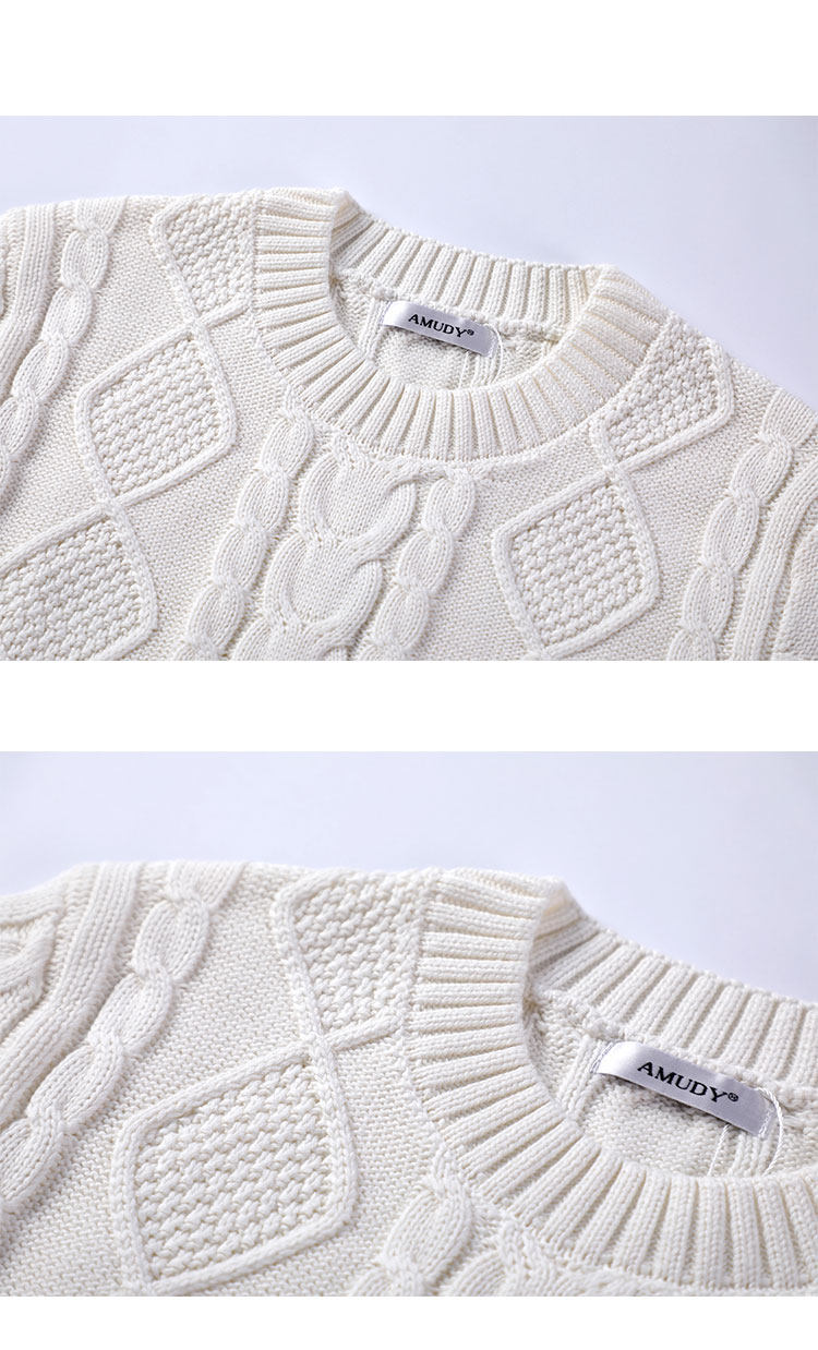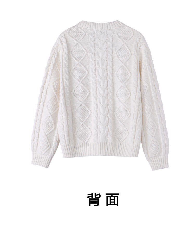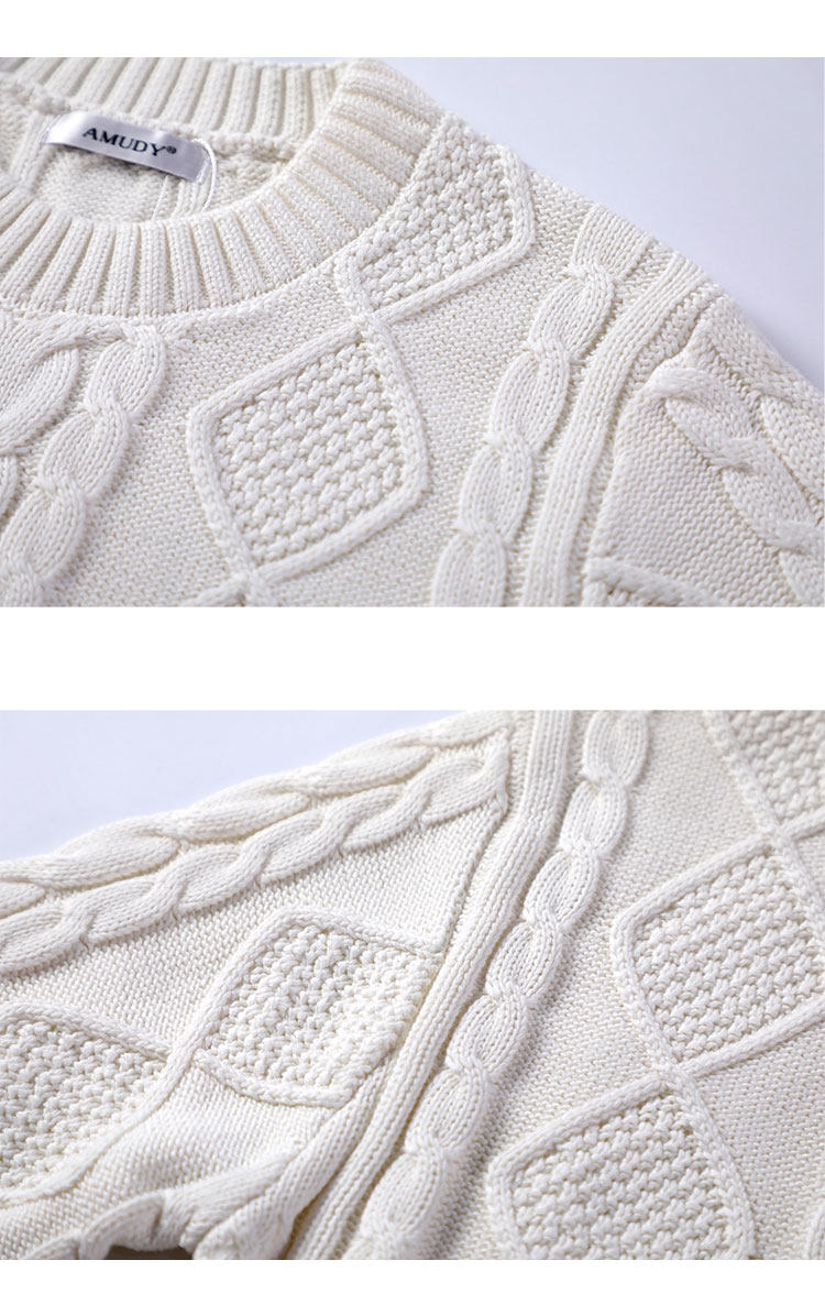 Thickened heavyweight 100% thick knitted twist round neck white sweater for women loose pullover cotton sweater for outer wear in winter