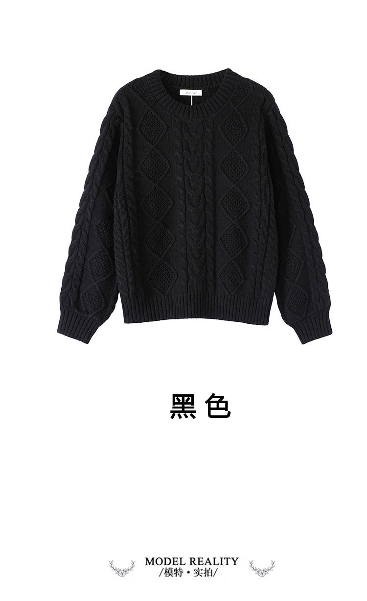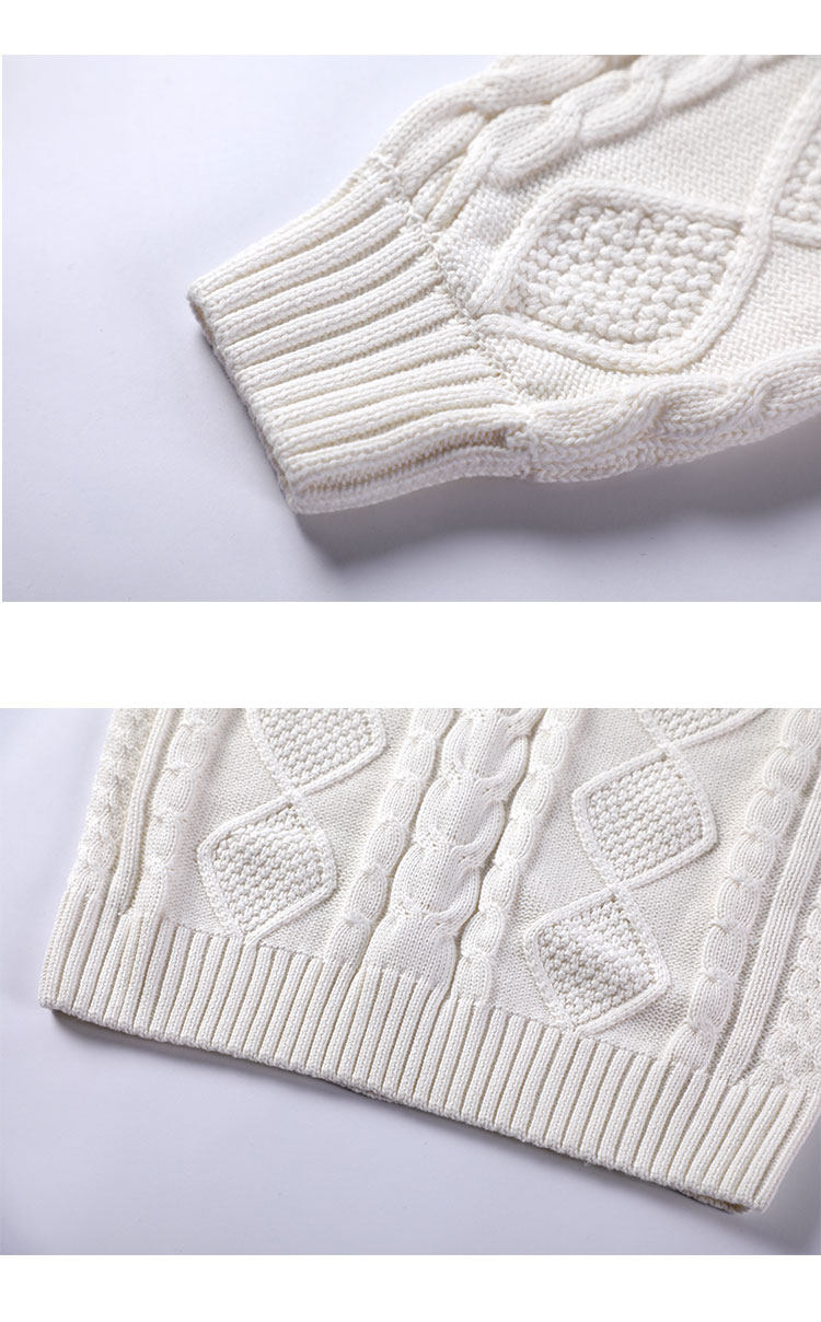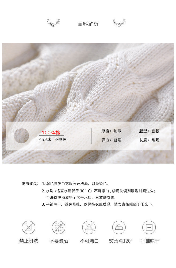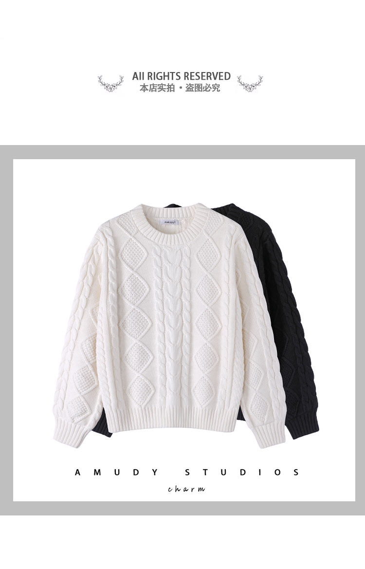 Thickened heavyweight 100% thick knitted twist round neck white sweater for women loose pullover cotton sweater for outer wear in winter