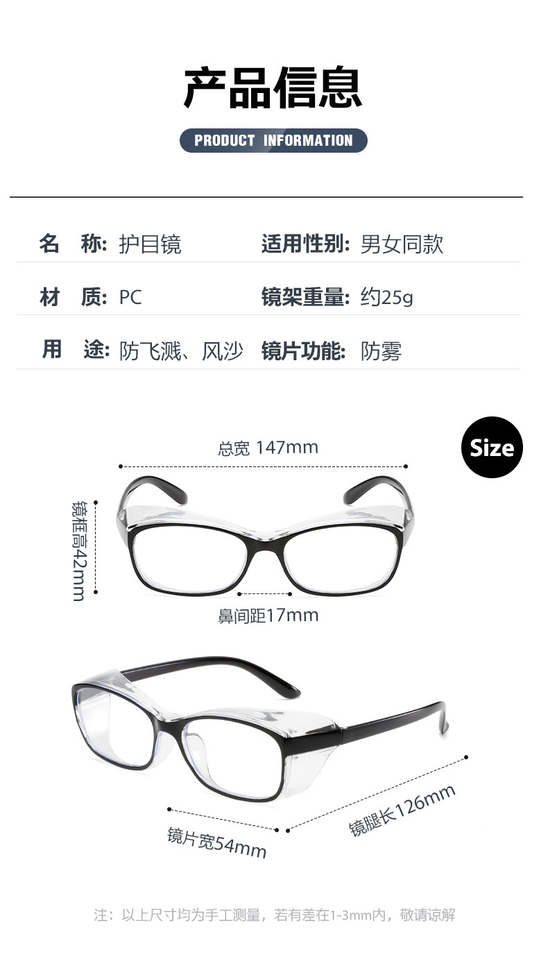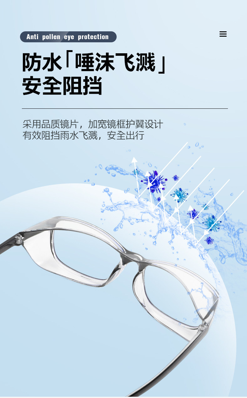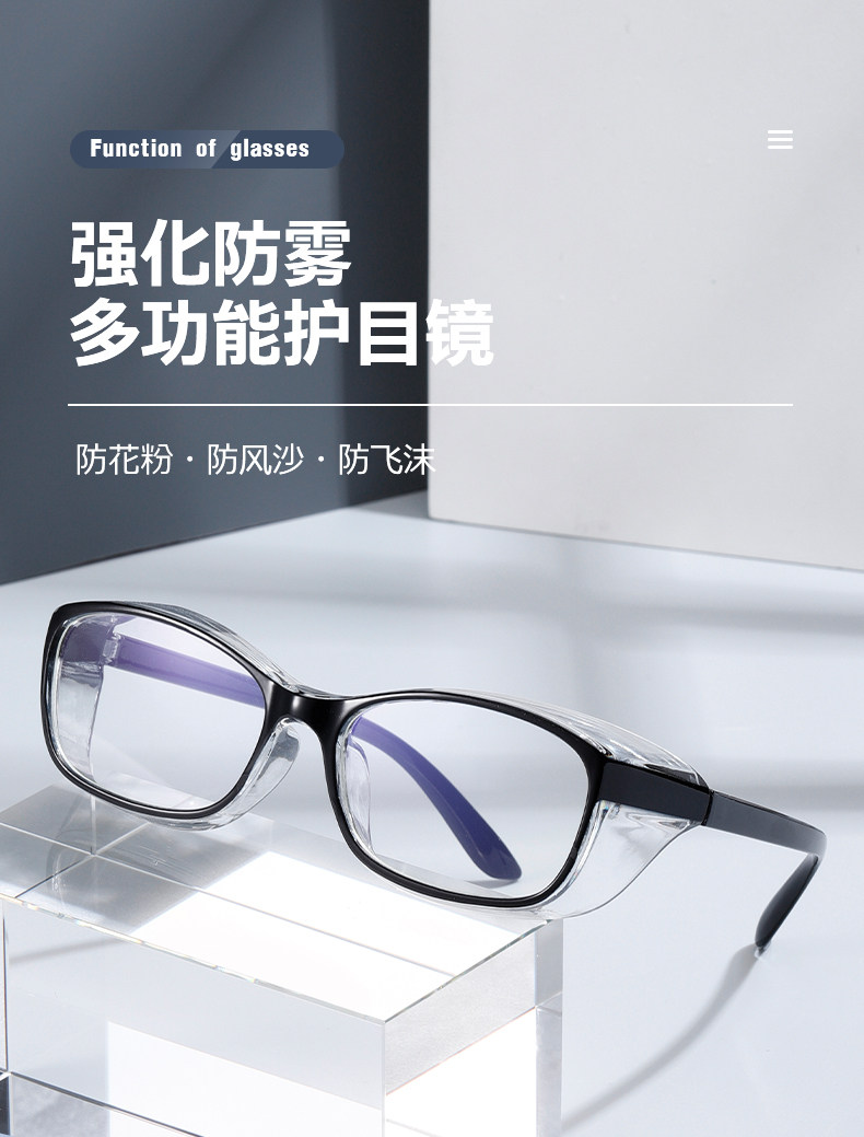 2025防花粉过敏眼镜女网红防蓝光抗辐射防雾防风沙骑行透明护目镜