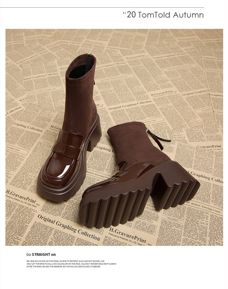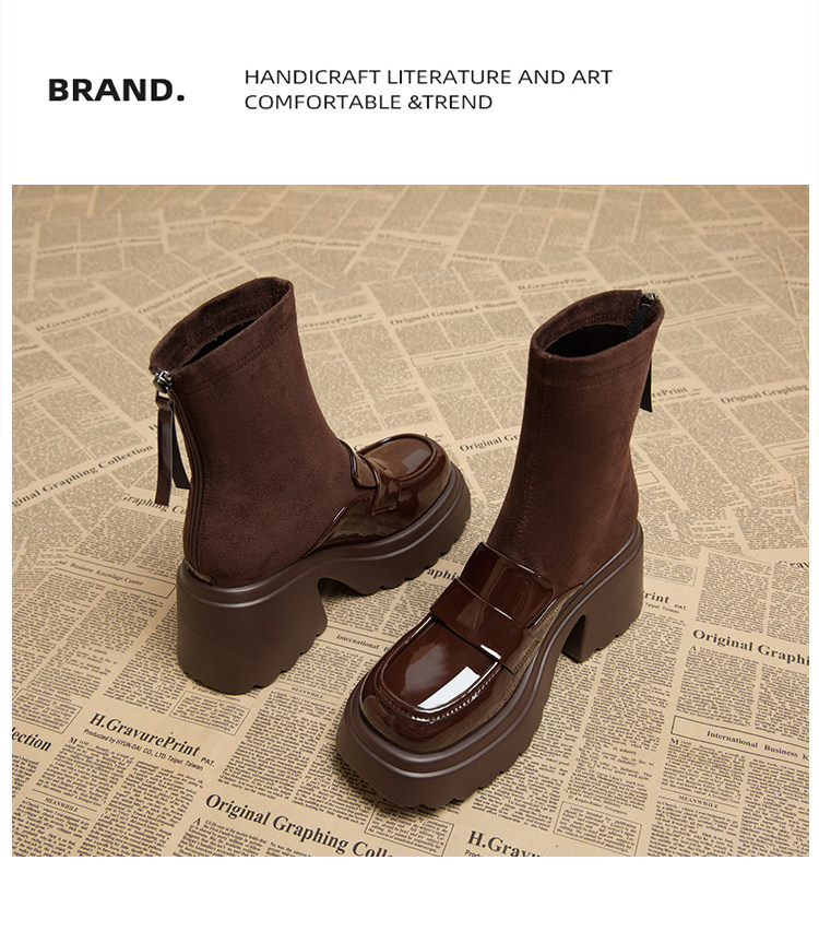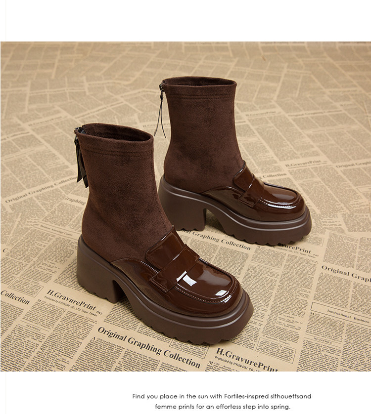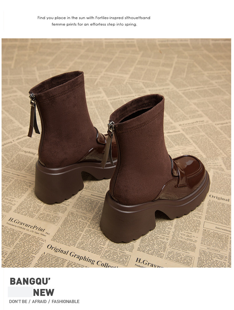 Platform Thick-Soled Short Boots for Women 2025 New Autumn and Winter High-Heeled Suede Petite Internet Celebrity Spring and Autumn European Style Martin Boots