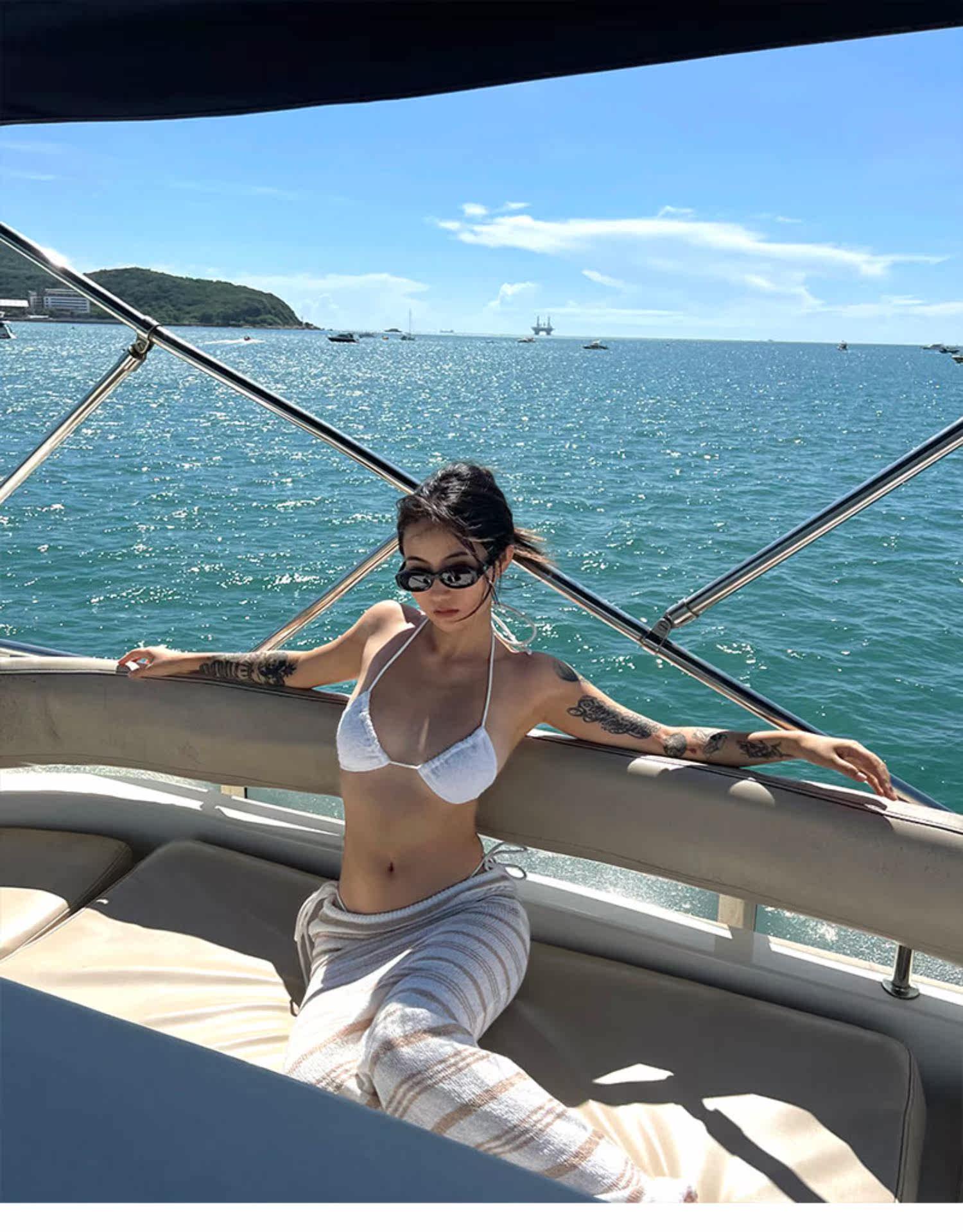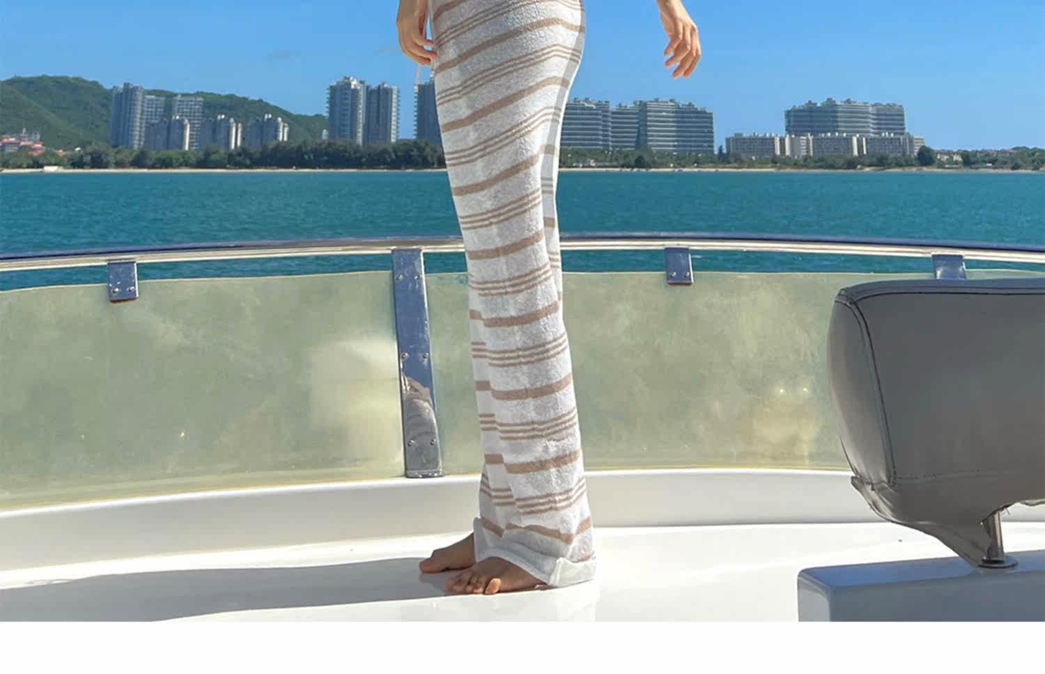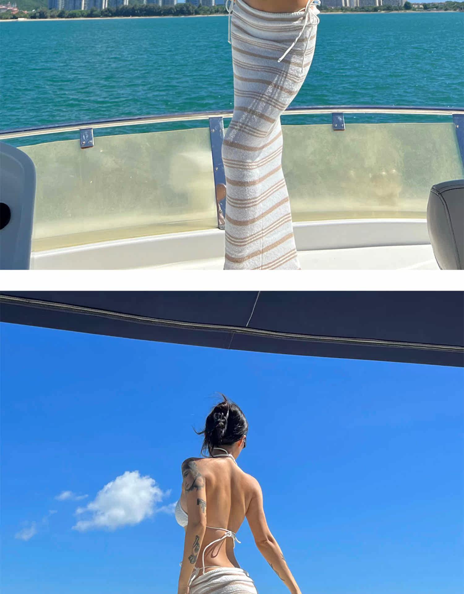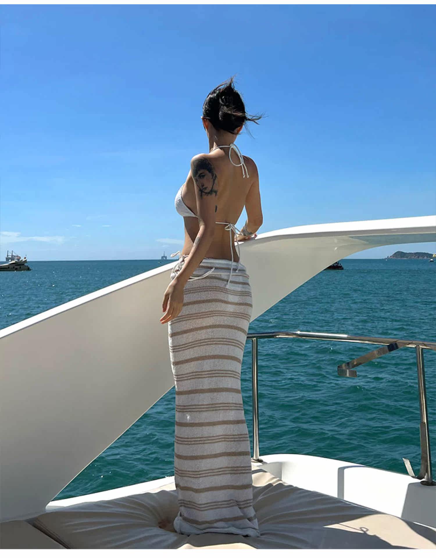 Dolcevita holiday lazy rice-colored striped holiday skirt knitted sunscreen low-waist floor-length long skirt