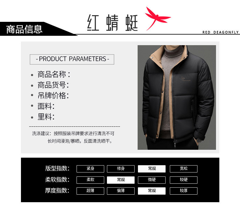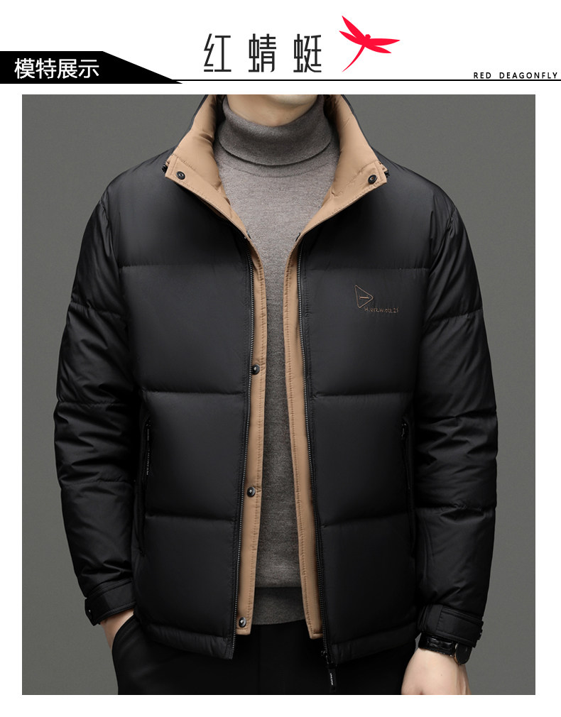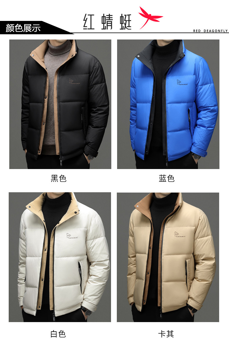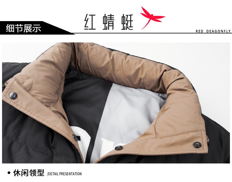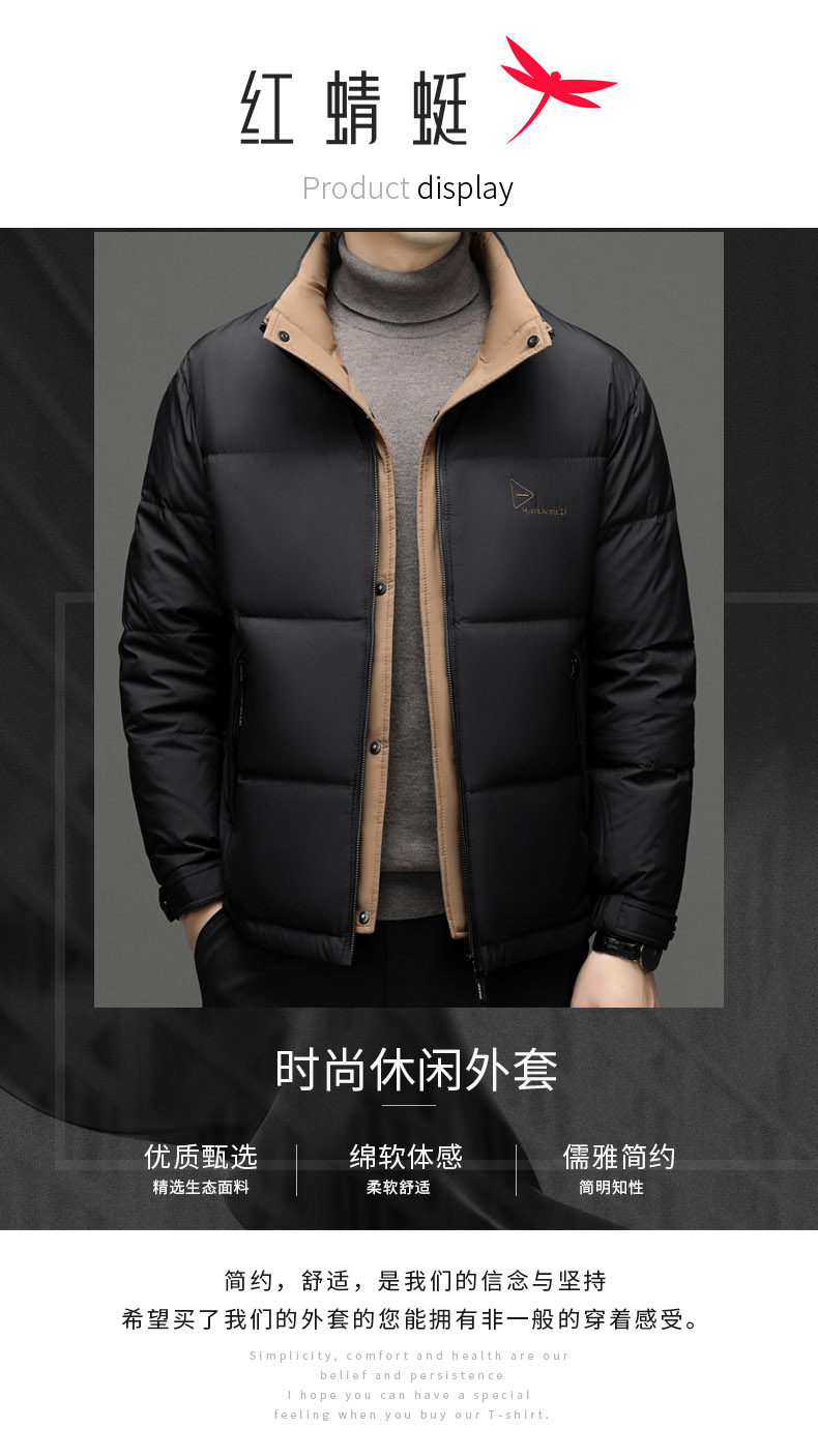 Red Dragonfly Men's down Jacket Winter New Thickened Stand Collar Warm Puffer Jacket Trendy Casual Khaki Coat for Men