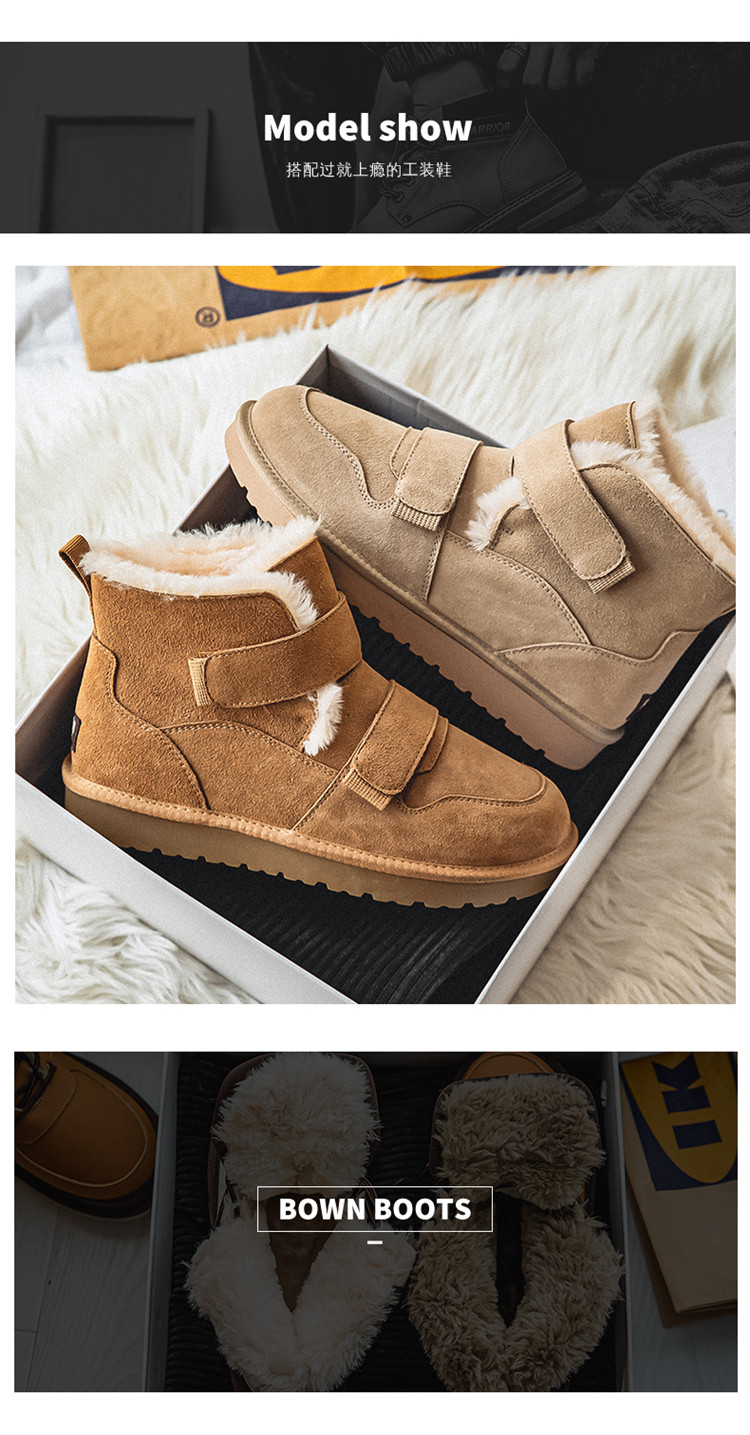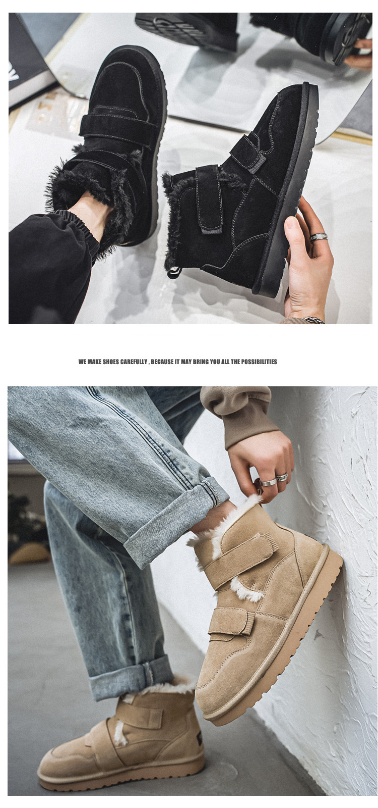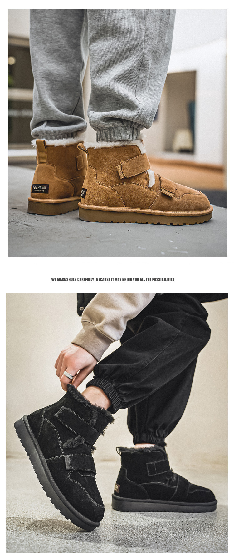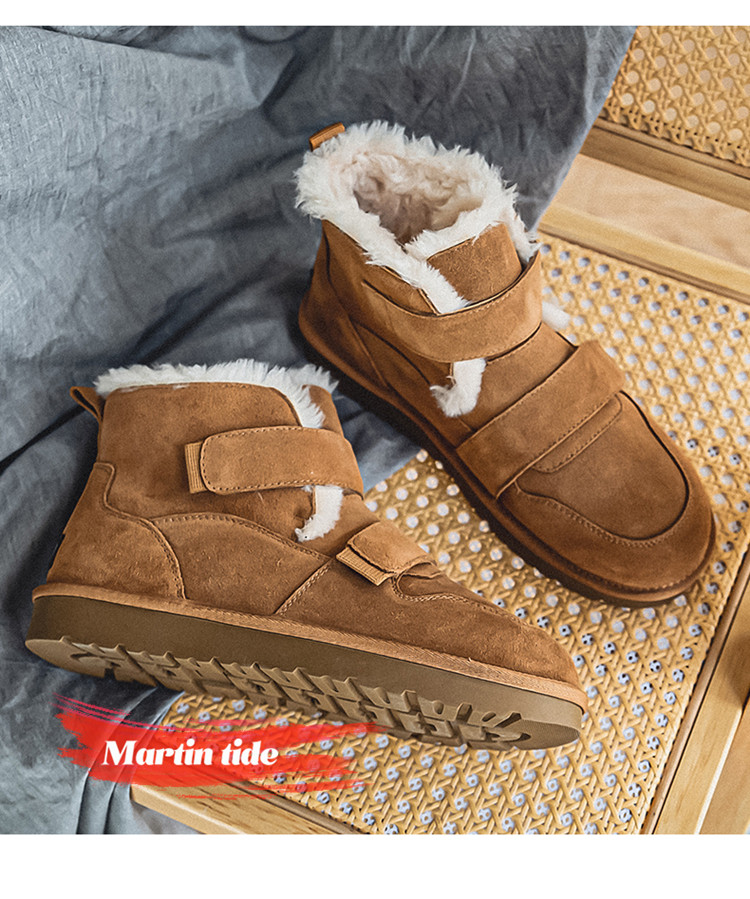Men's Winter Snow Boots with Plush Lining, Thickened Cotton Shoes for Women, Warm Couple Style Loafers, Genuine Leather Cold-Resistant Cotton Boots
