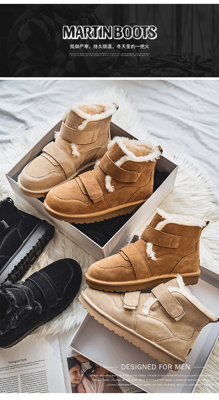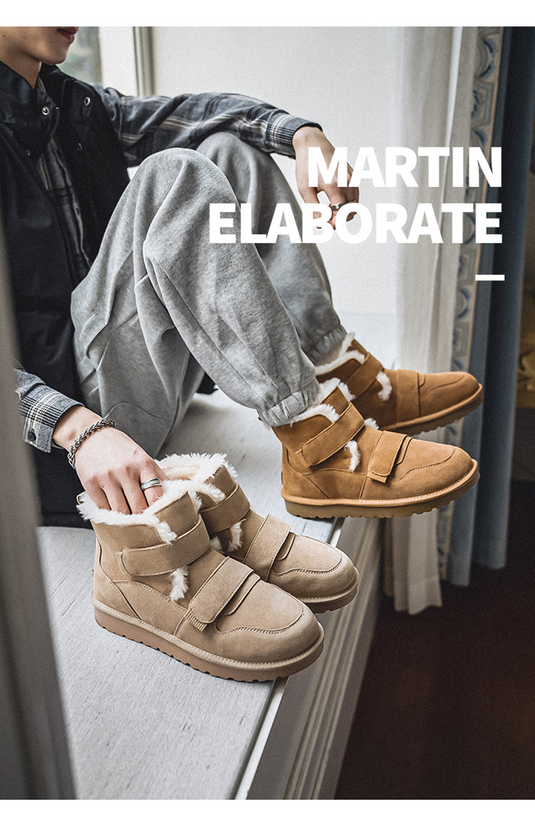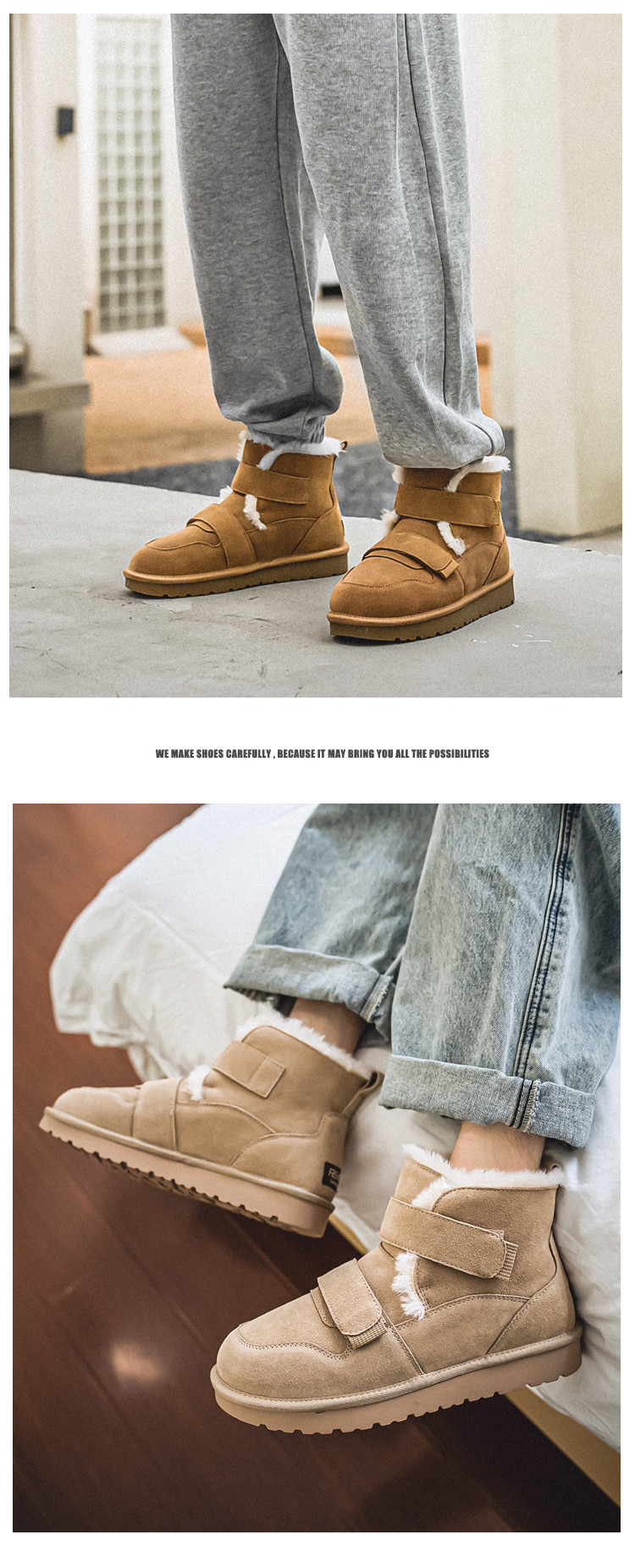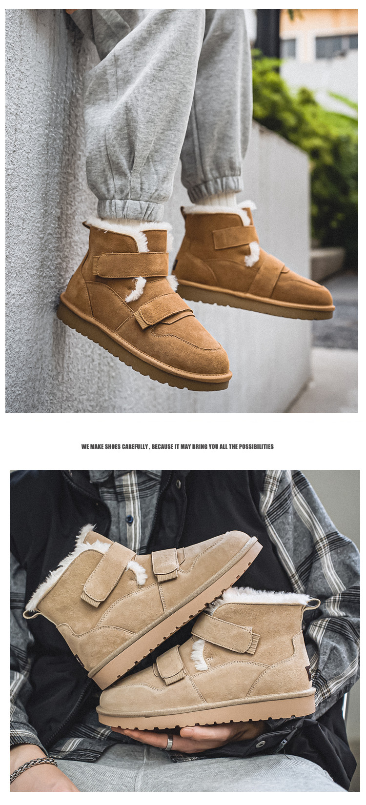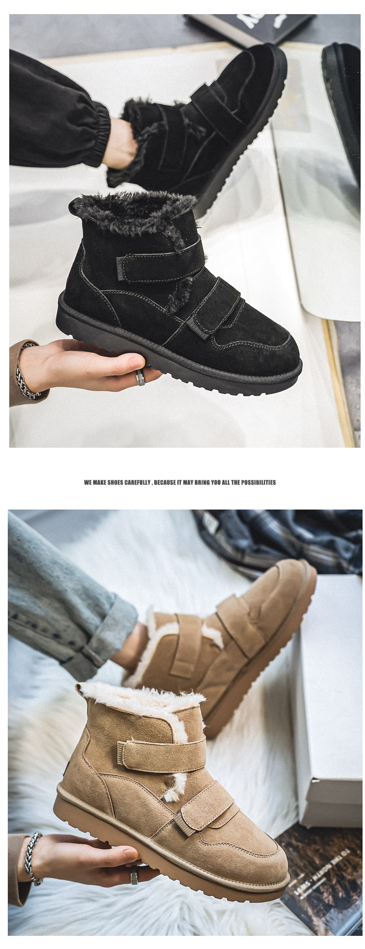 Men's Winter Snow Boots with Plush Lining, Thickened Cotton Shoes for Women, Warm Couple Style Loafers, Genuine Leather Cold-Resistant Cotton Boots