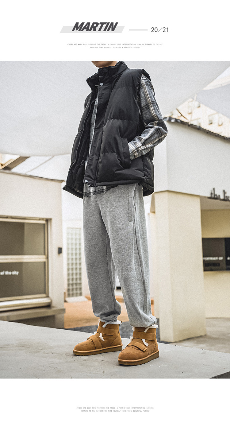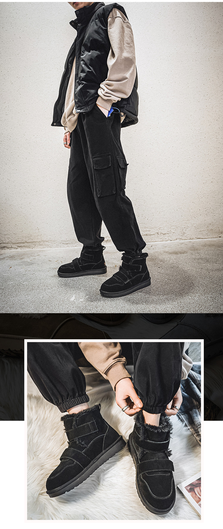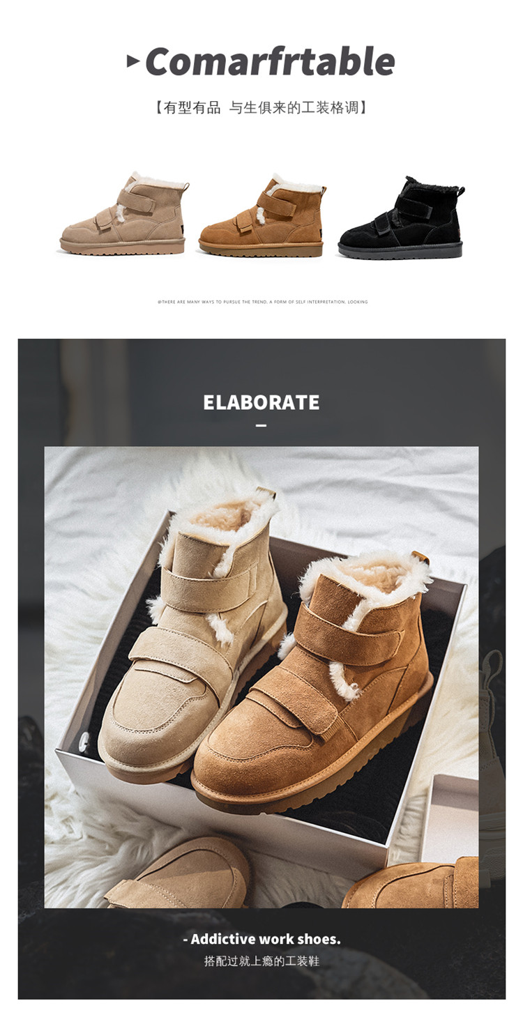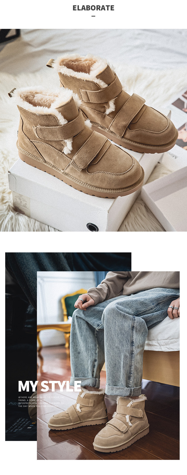 Men's Winter Snow Boots with Plush Lining, Thickened Cotton Shoes for Women, Warm Couple Style Loafers, Genuine Leather Cold-Resistant Cotton Boots