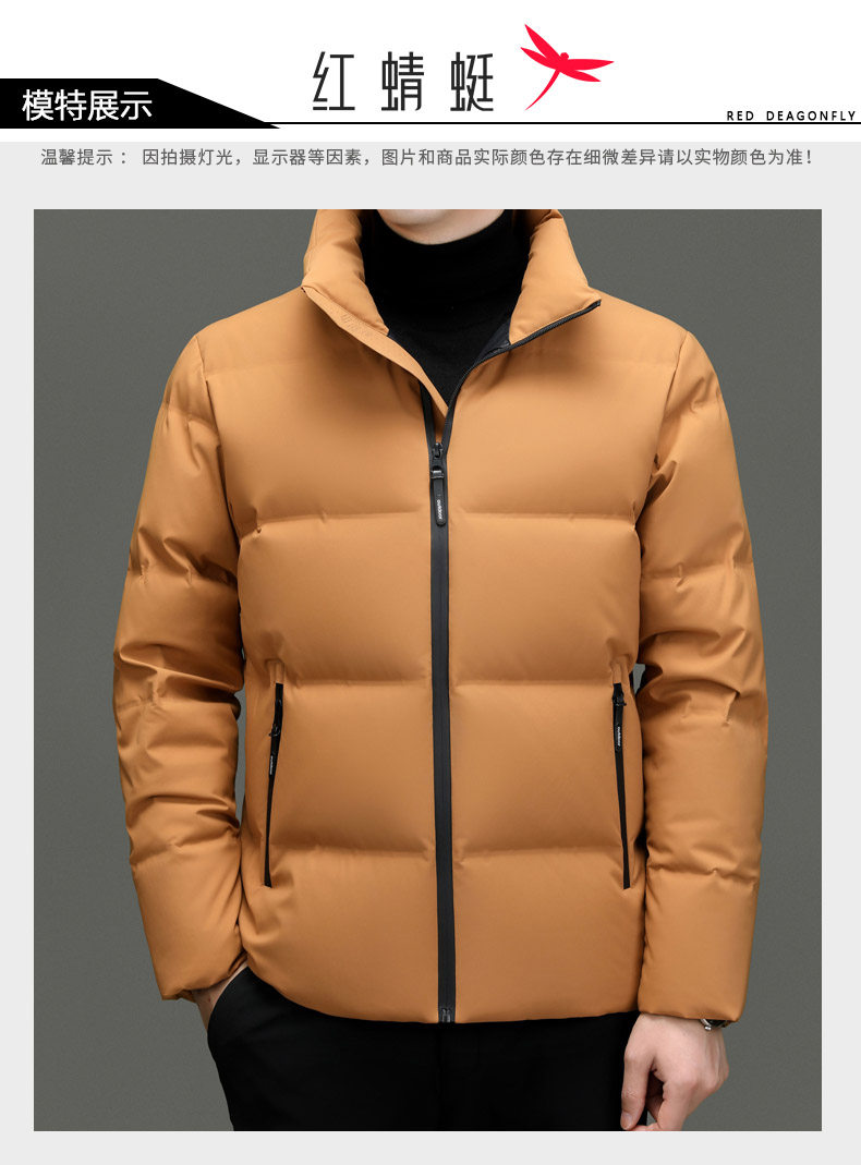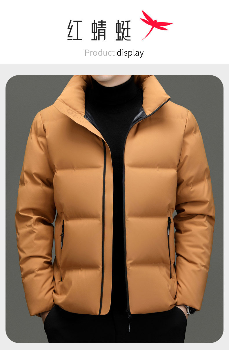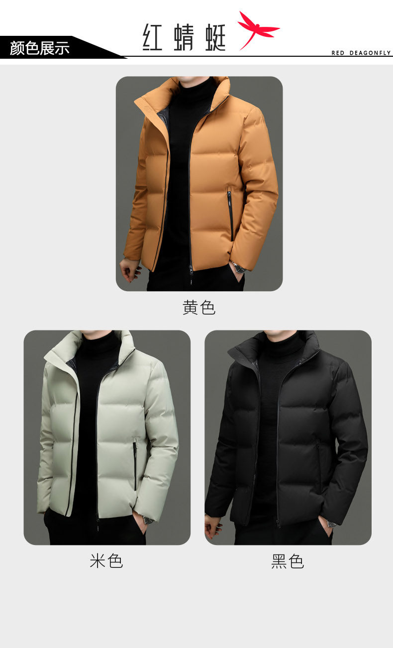 Red Dragonfly down Jacket Men's Winter New Trendy Solid Color Cold-Proof down Jacket Casual Short Stand Collar Jacket for Men