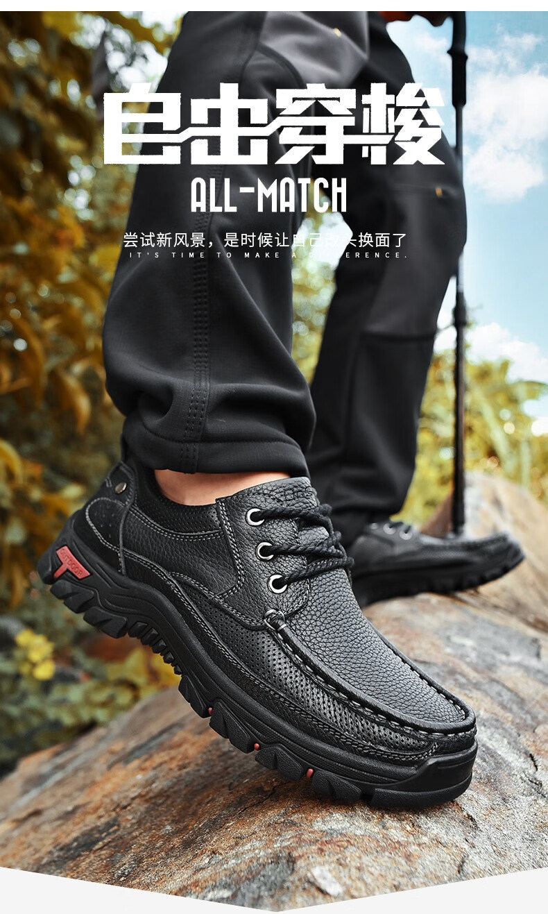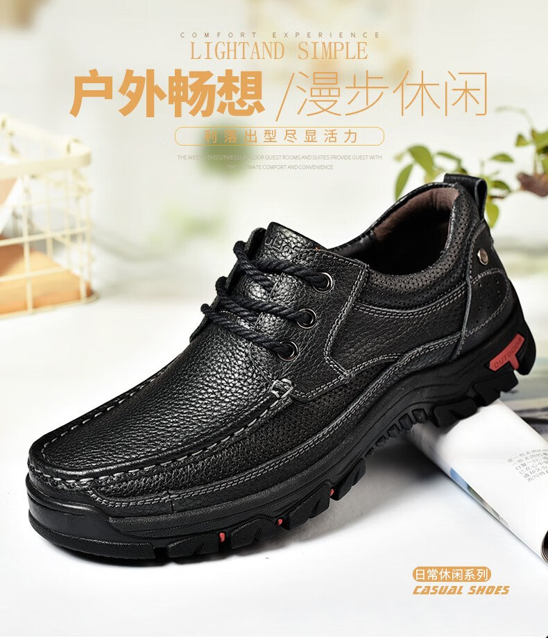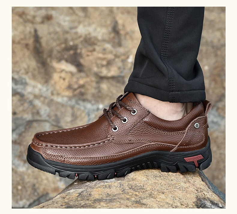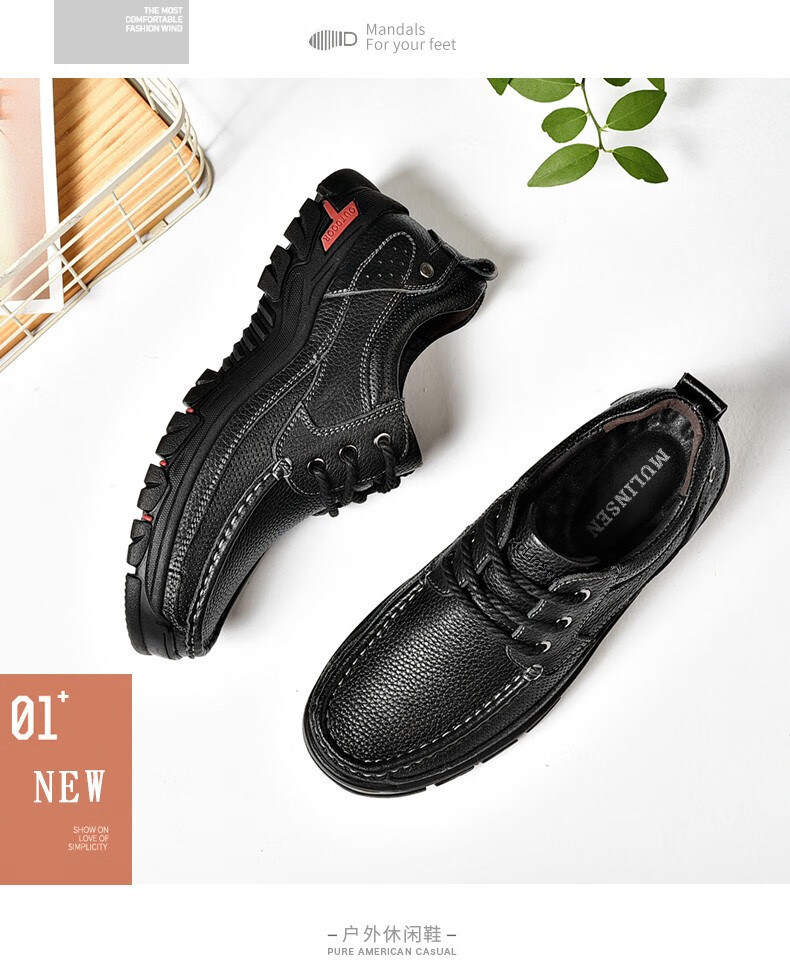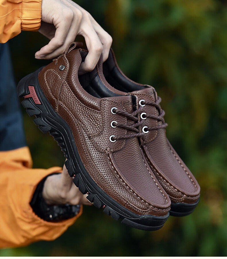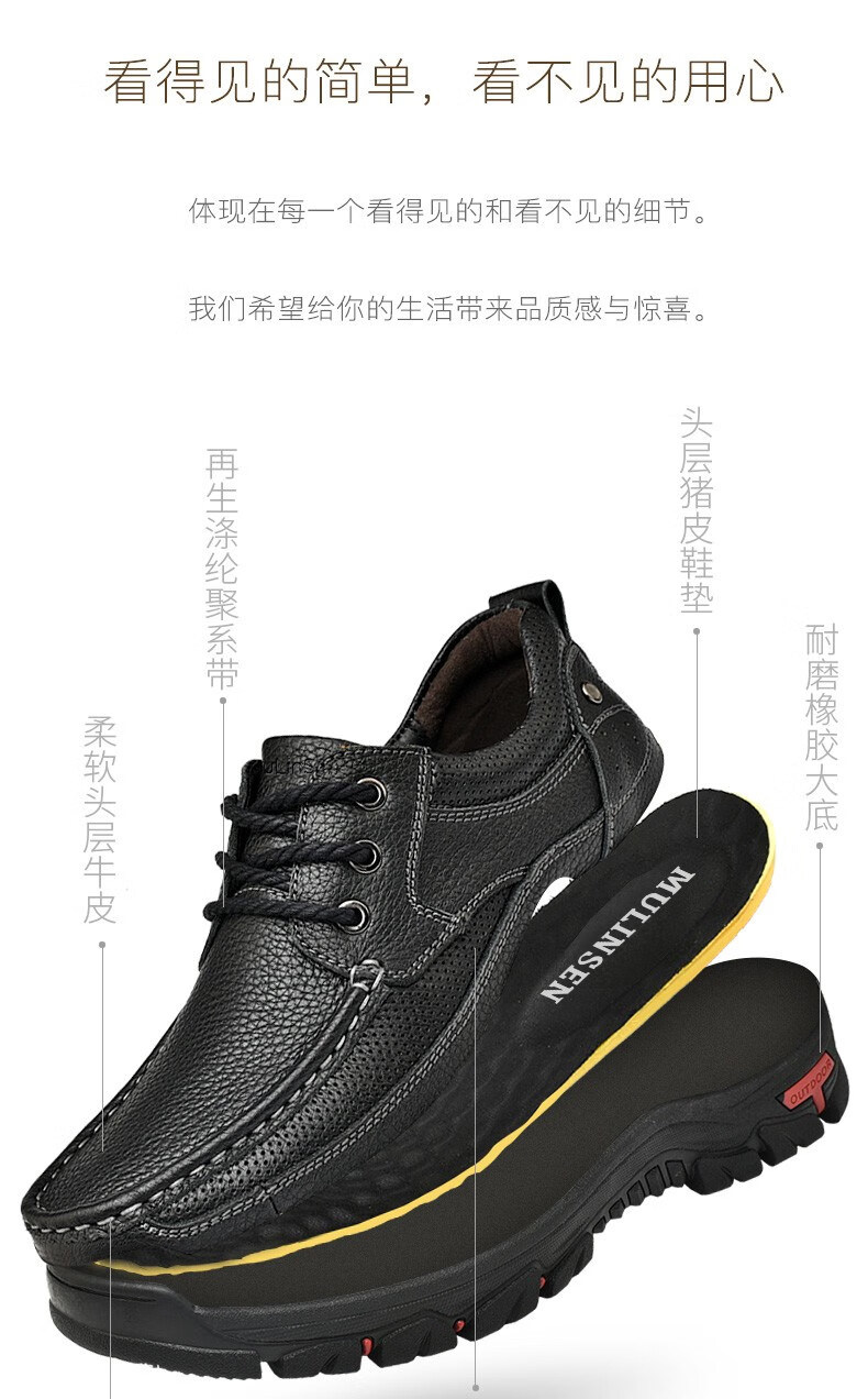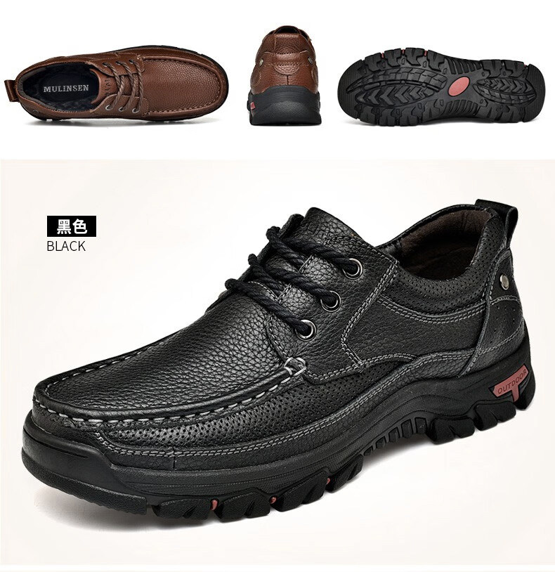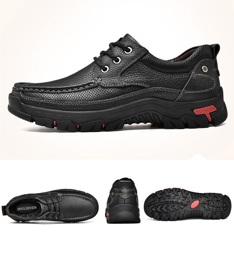 Mulinsen men's shoes genuine leather casual large-toe shoes men's sports outdoor hiking shoes men's thick-soled non-slip dad leather shoes