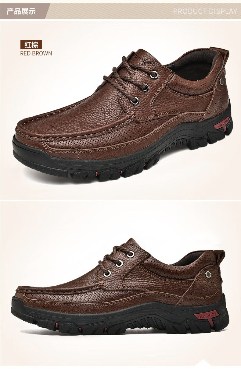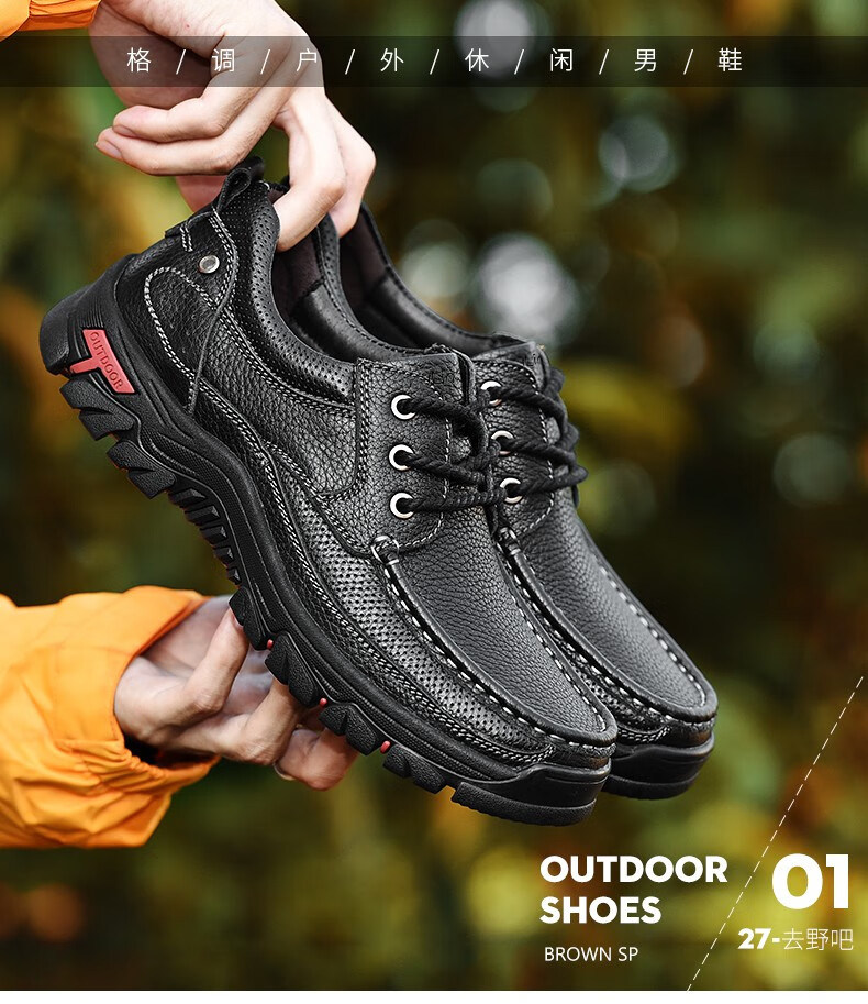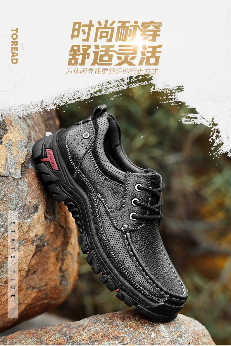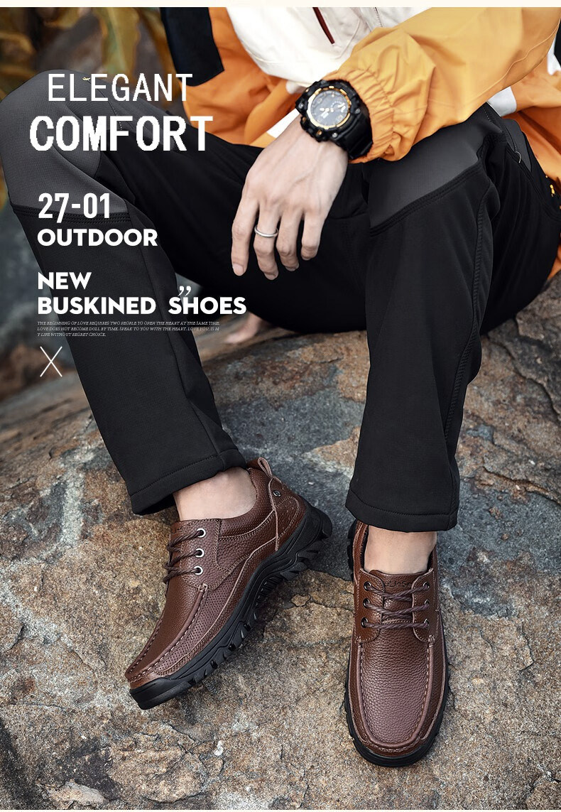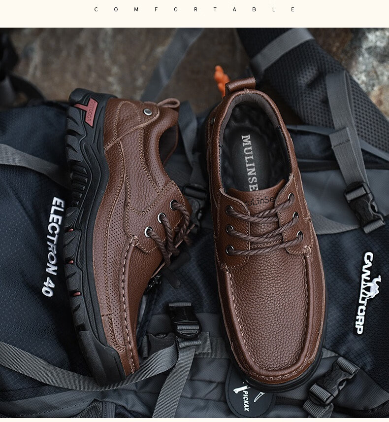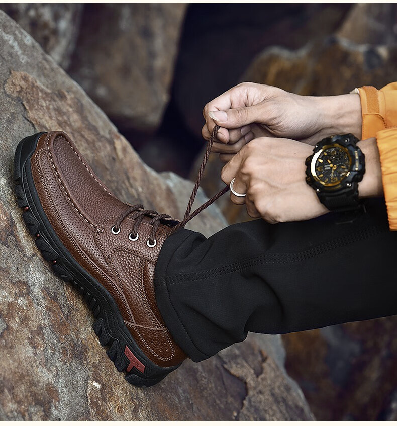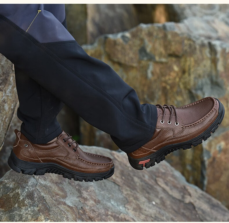Mulinsen men's shoes genuine leather casual large-toe shoes men's sports outdoor hiking shoes men's thick-soled non-slip dad leather shoes