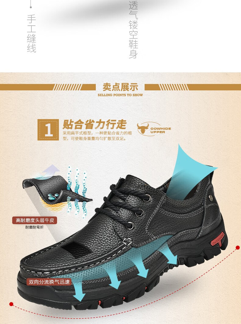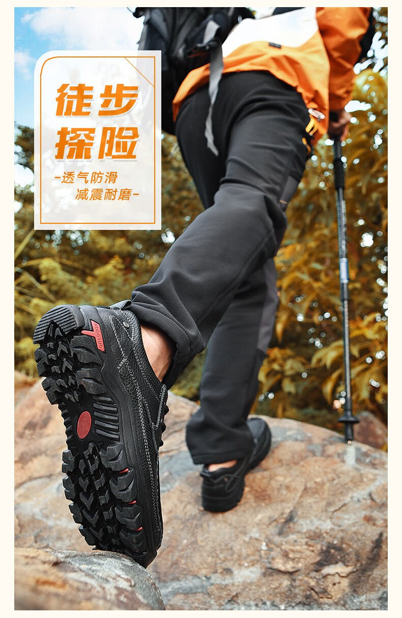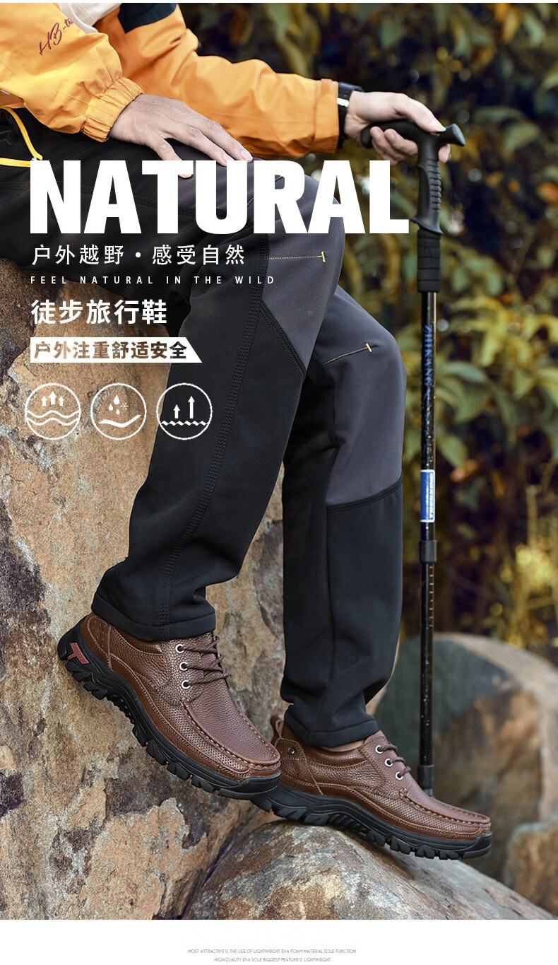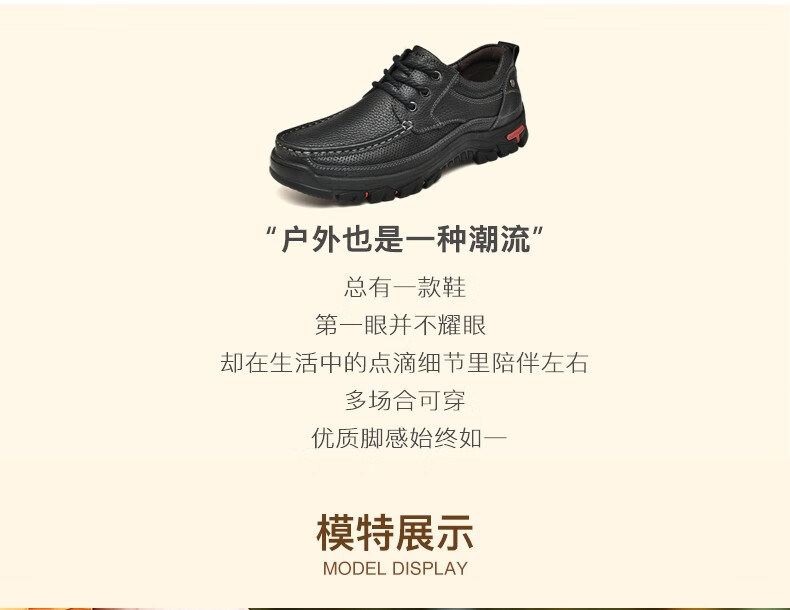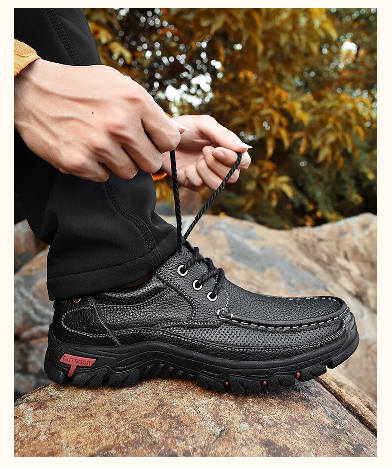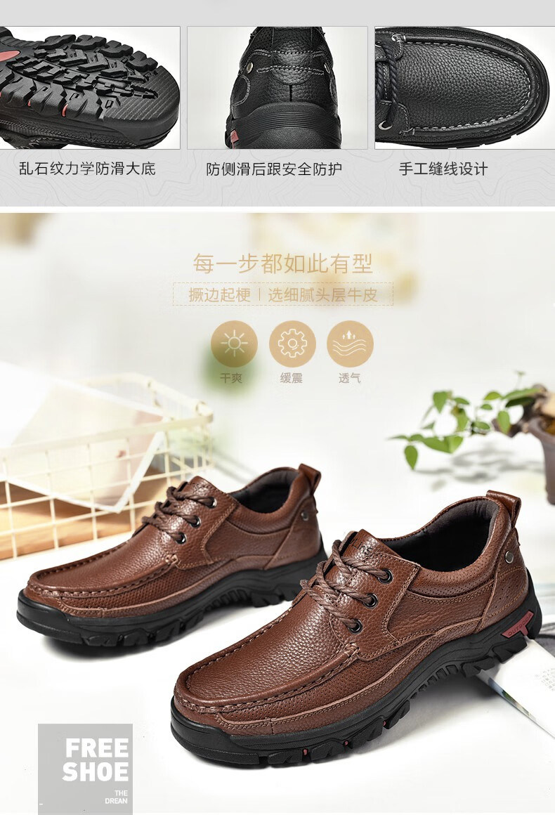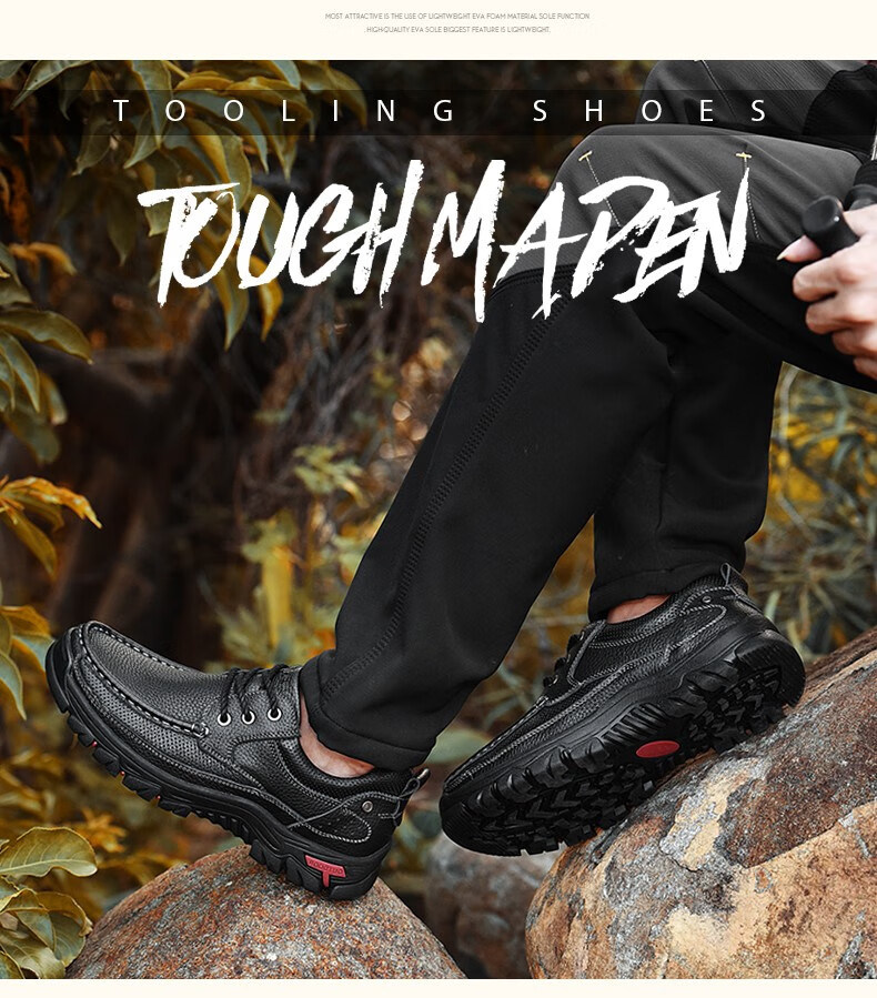 Mulinsen men's shoes genuine leather casual large-toe shoes men's sports outdoor hiking shoes men's thick-soled non-slip dad leather shoes