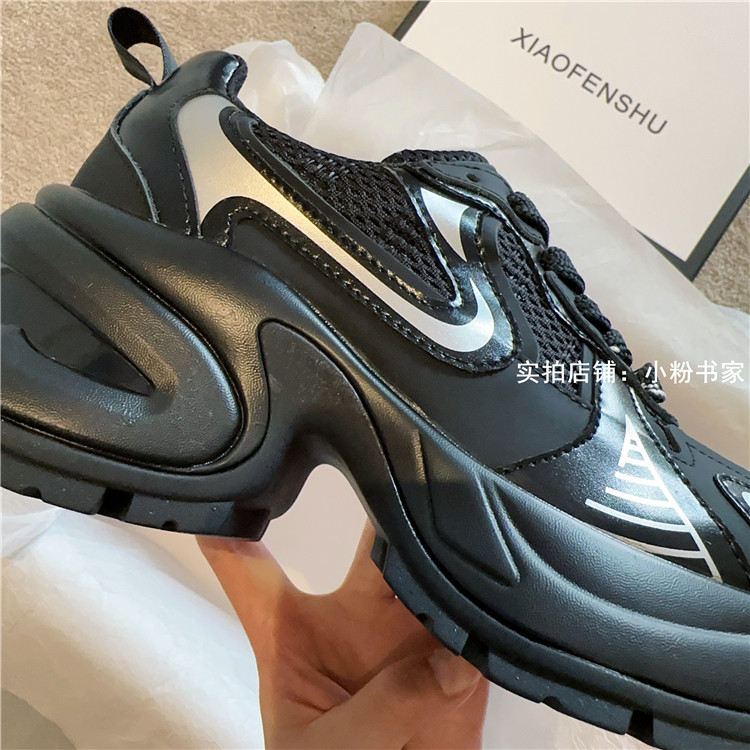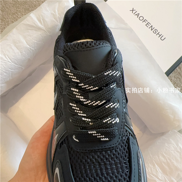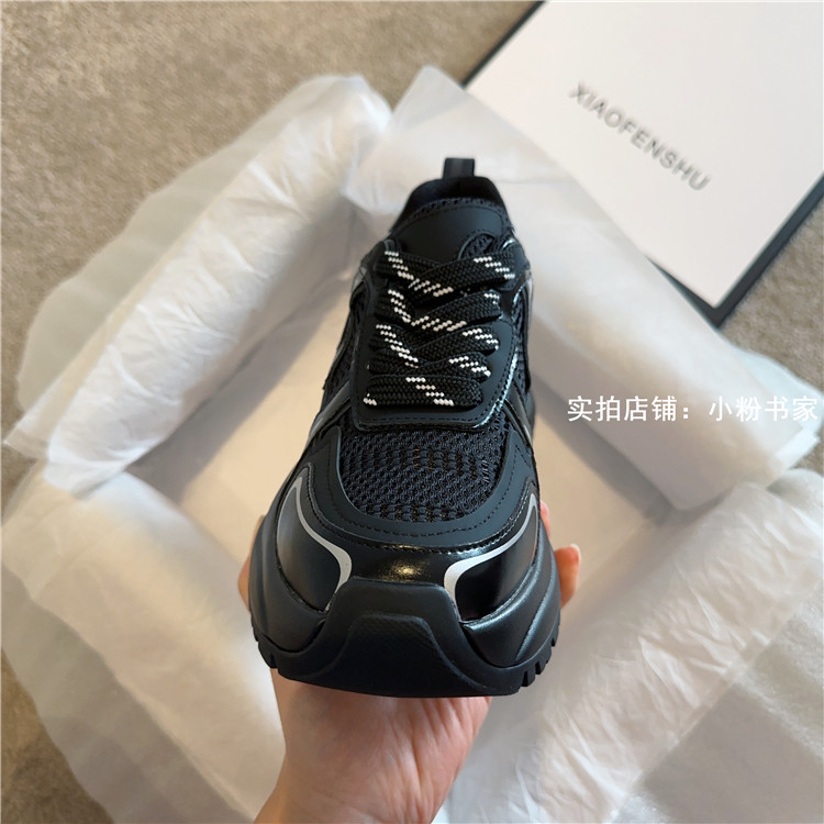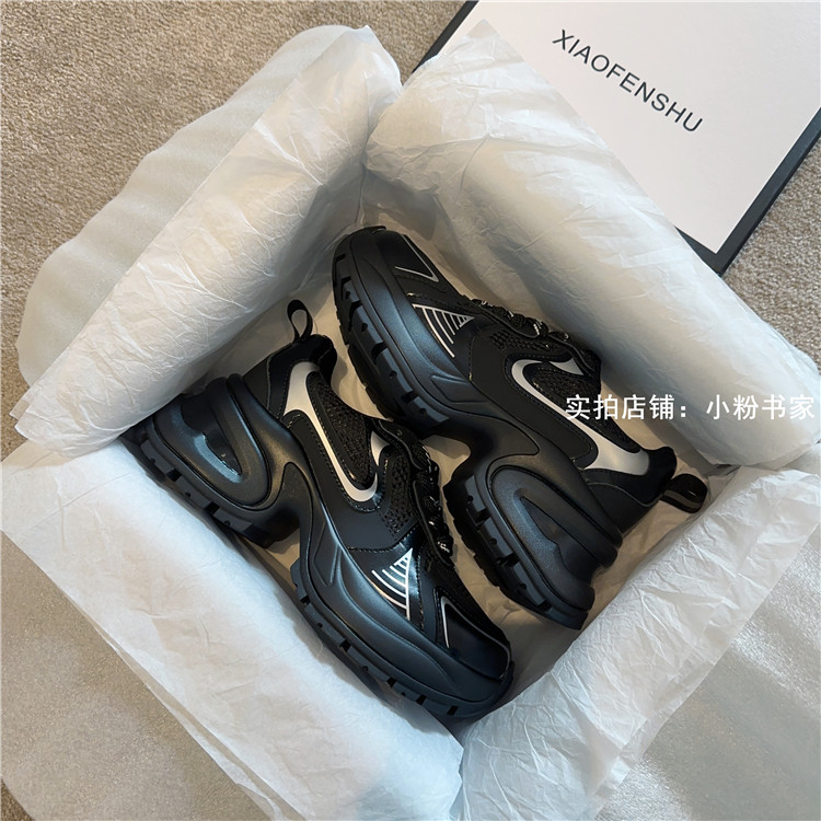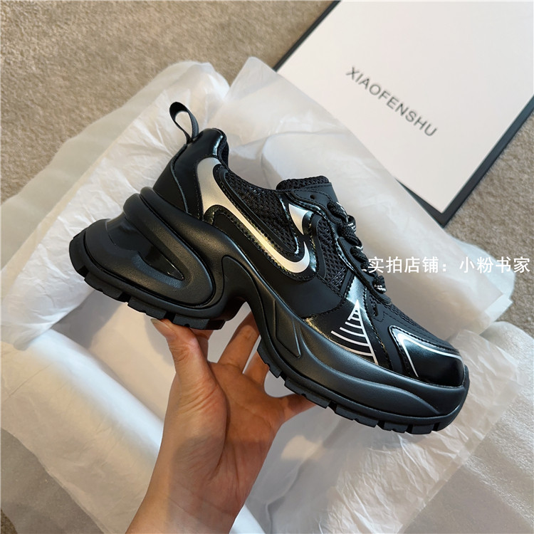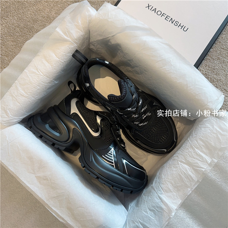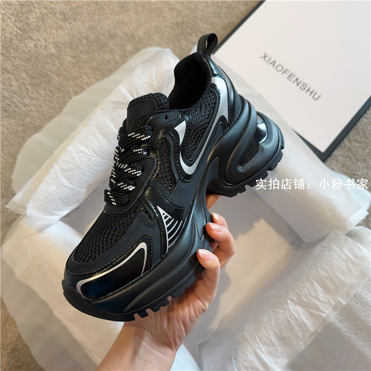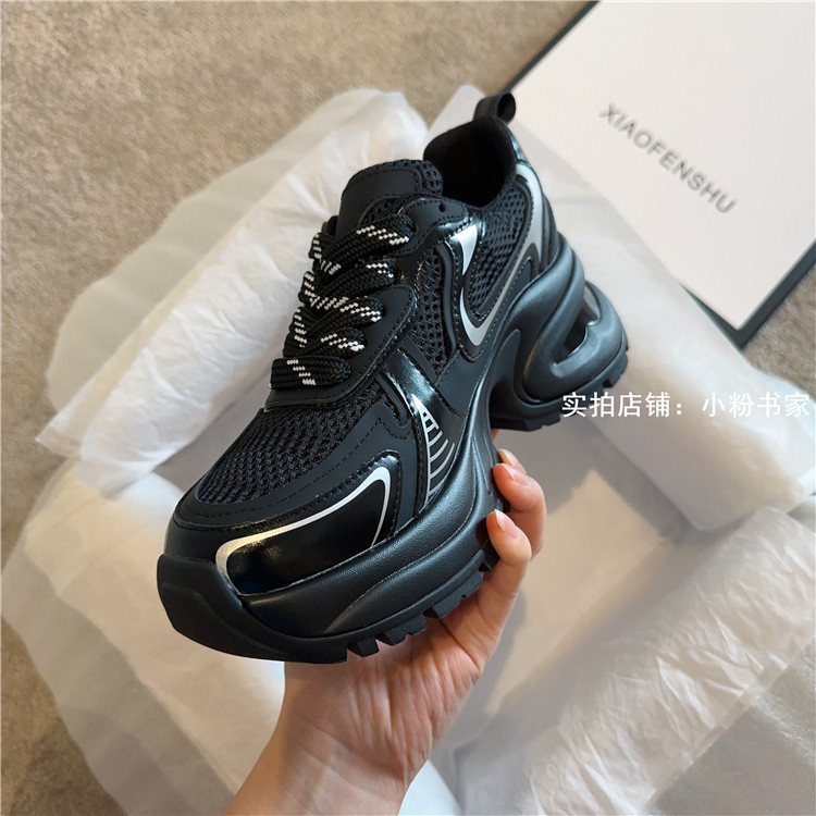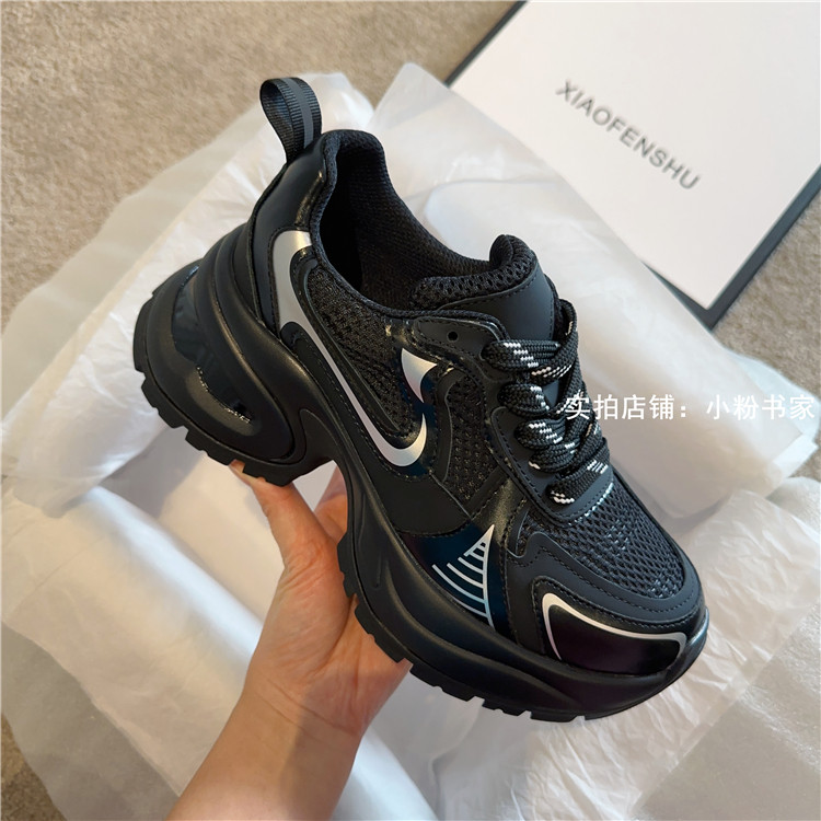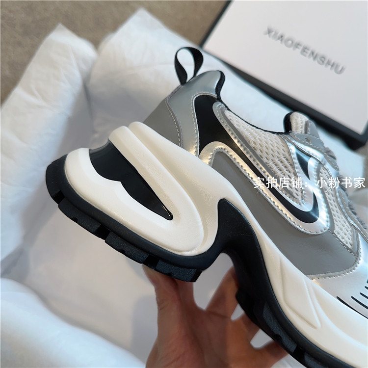 Zhao Lusi's same arch-soled dad shoes for women, thick-soled heightening casual shoes, genuine leather, silver mesh, high-heeled sneakers