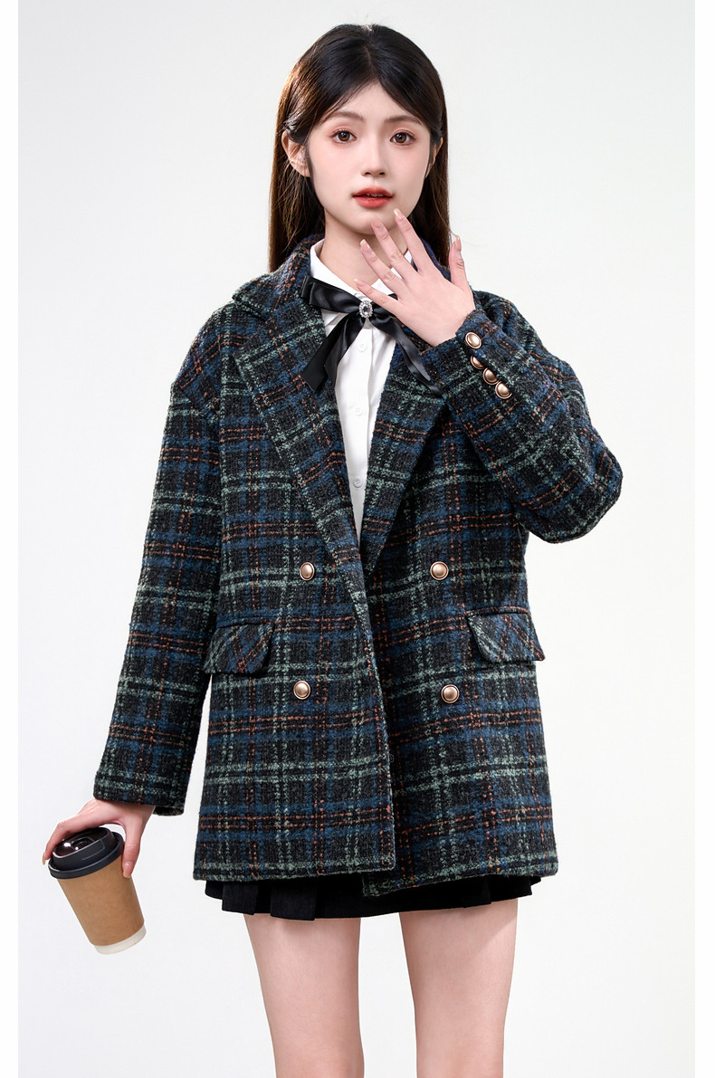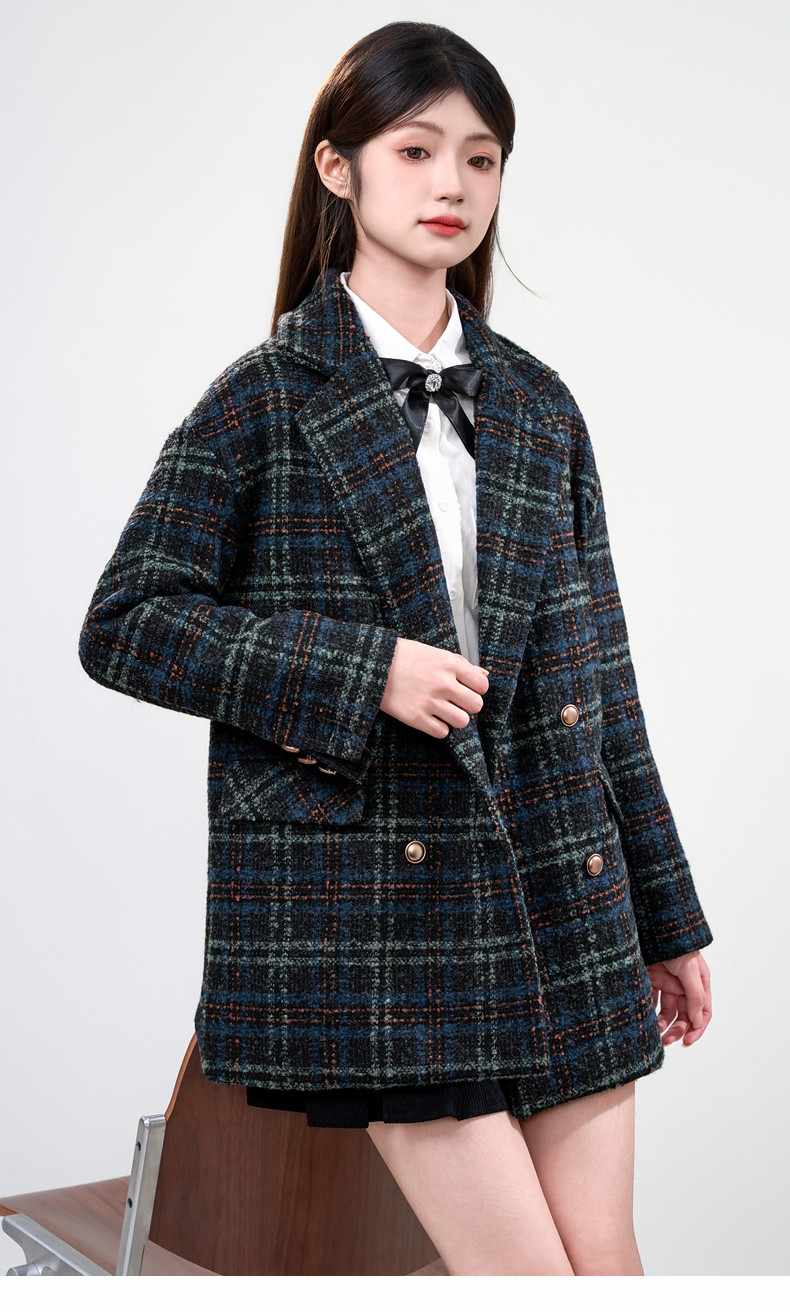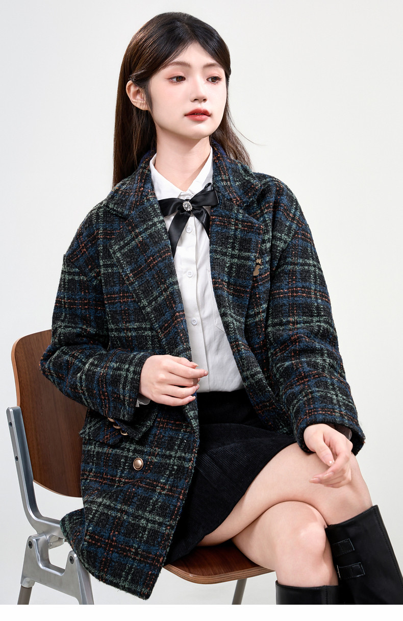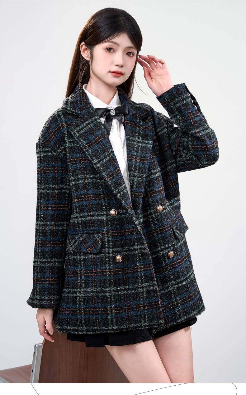 Jane Wen 2025 new winter retro plaid woolen blazer women's college style small woolen coat trendy