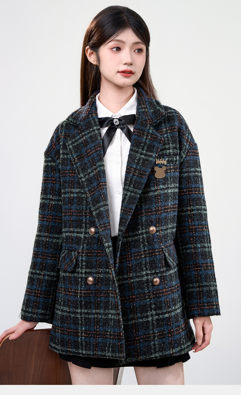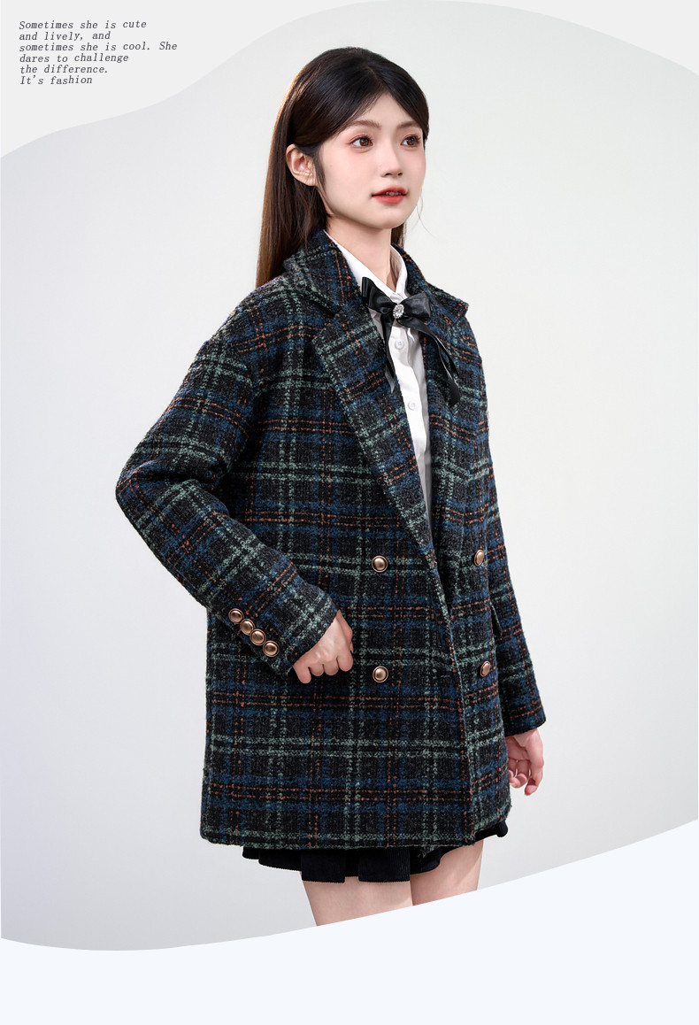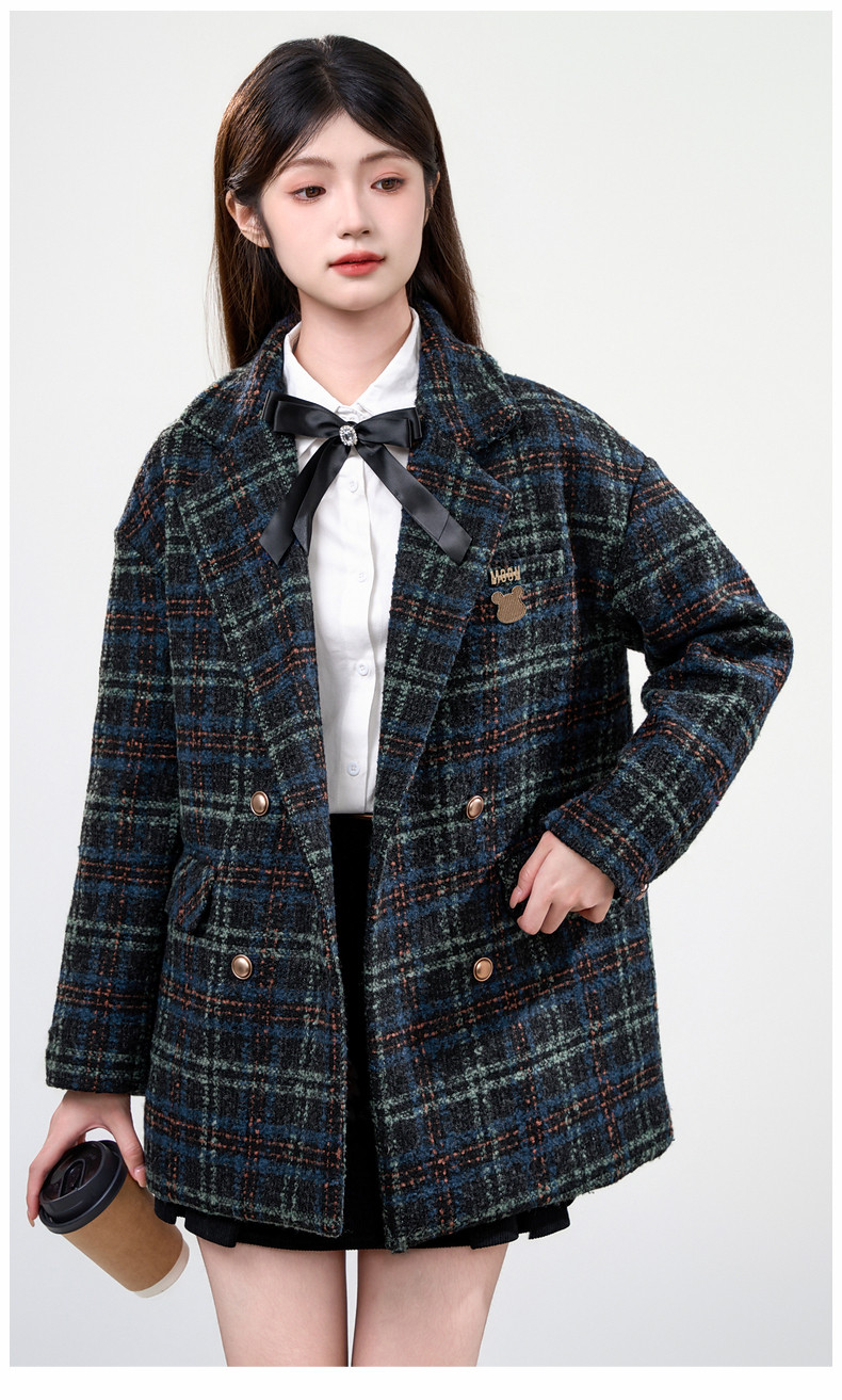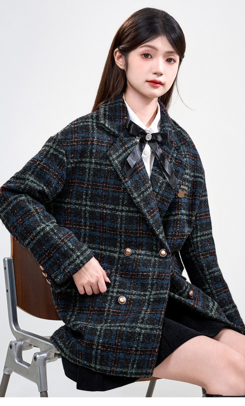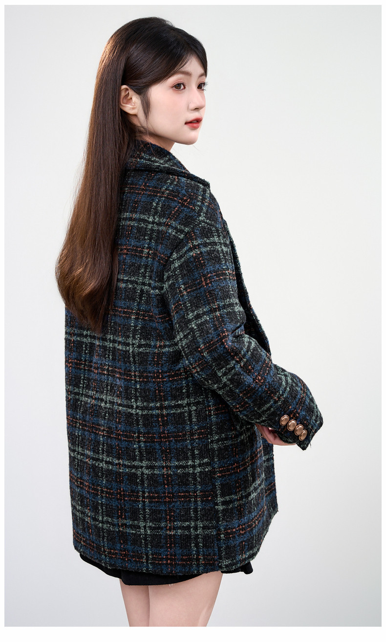 Jane Wen 2025 new winter retro plaid woolen blazer women's college style small woolen coat trendy