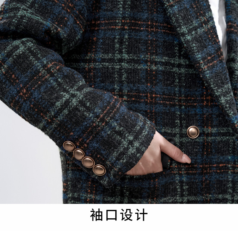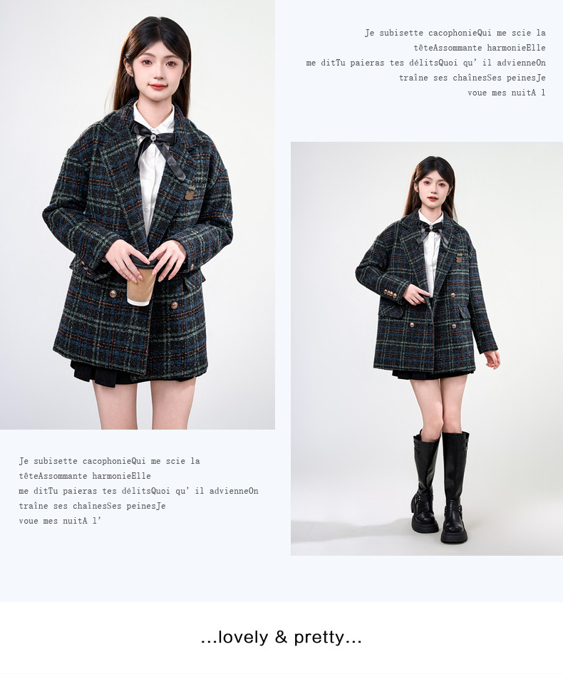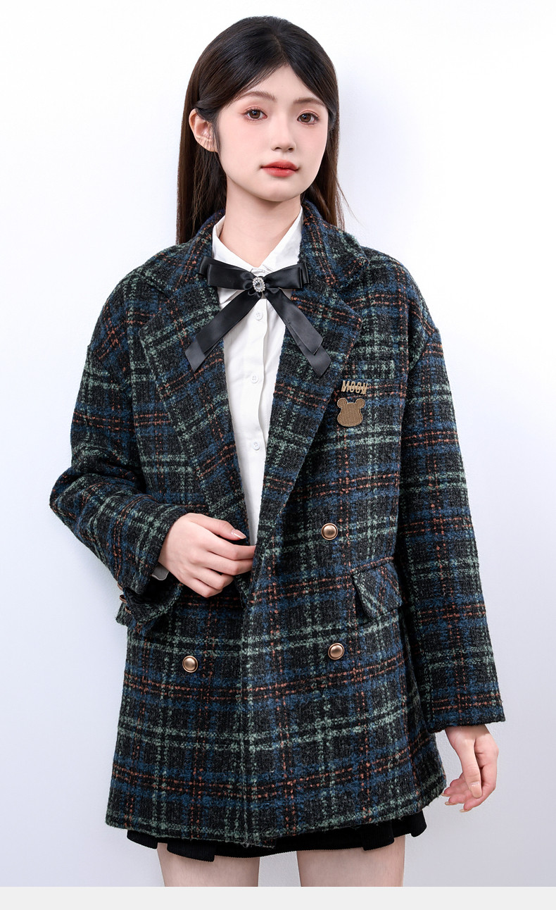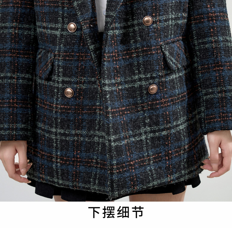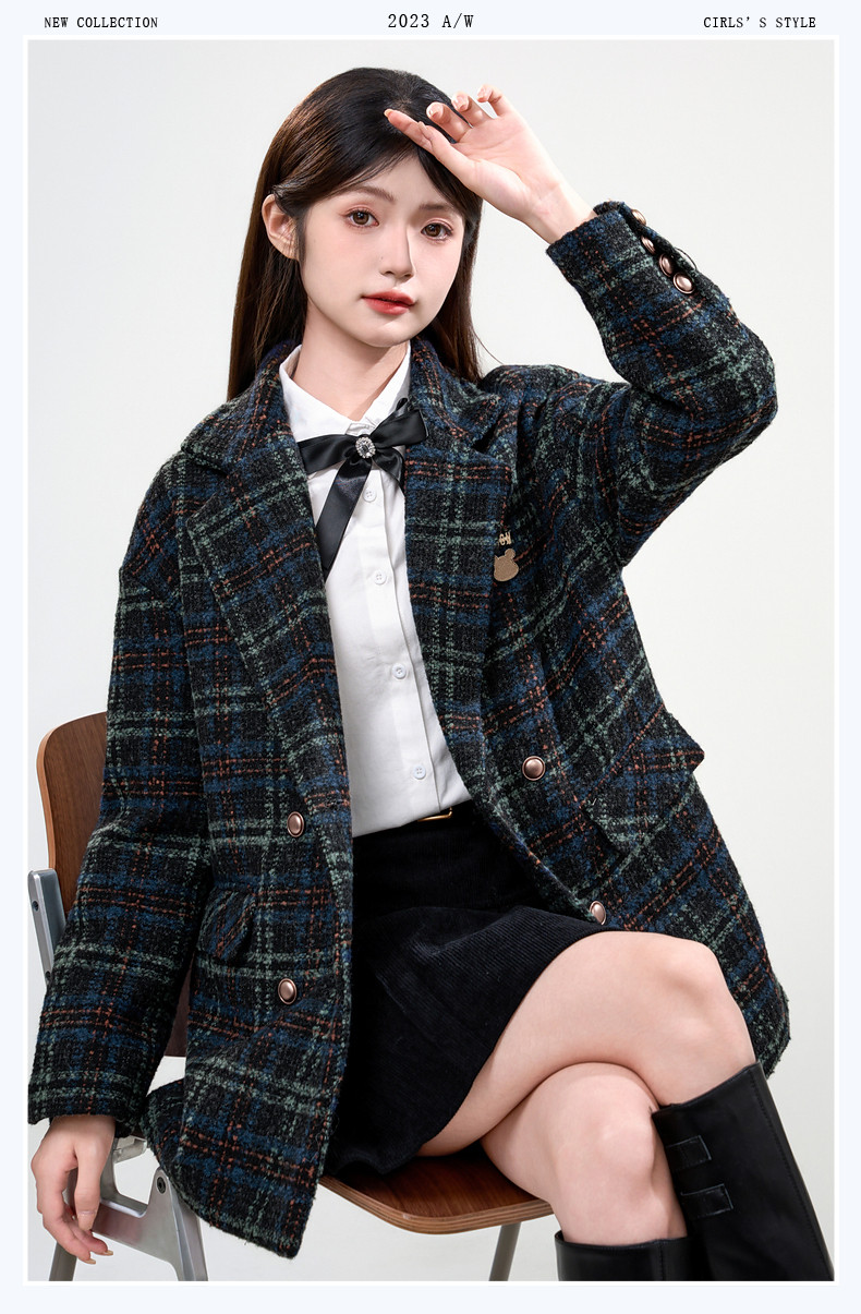 Jane Wen 2025 new winter retro plaid woolen blazer women's college style small woolen coat trendy