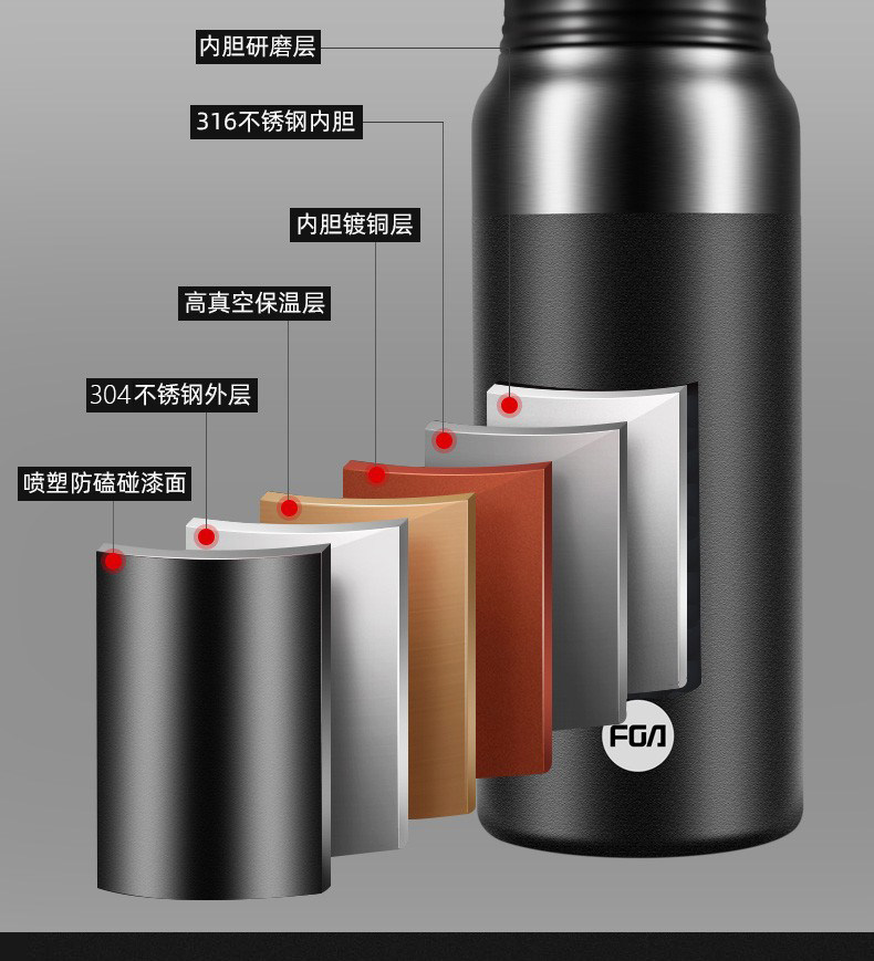 Fuguang Thermos Cup 316L Stainless Steel Men's Large Capacity Women's Student Car-Mounted Tea and Water Separation Cup for Drinking and Brewing Tea