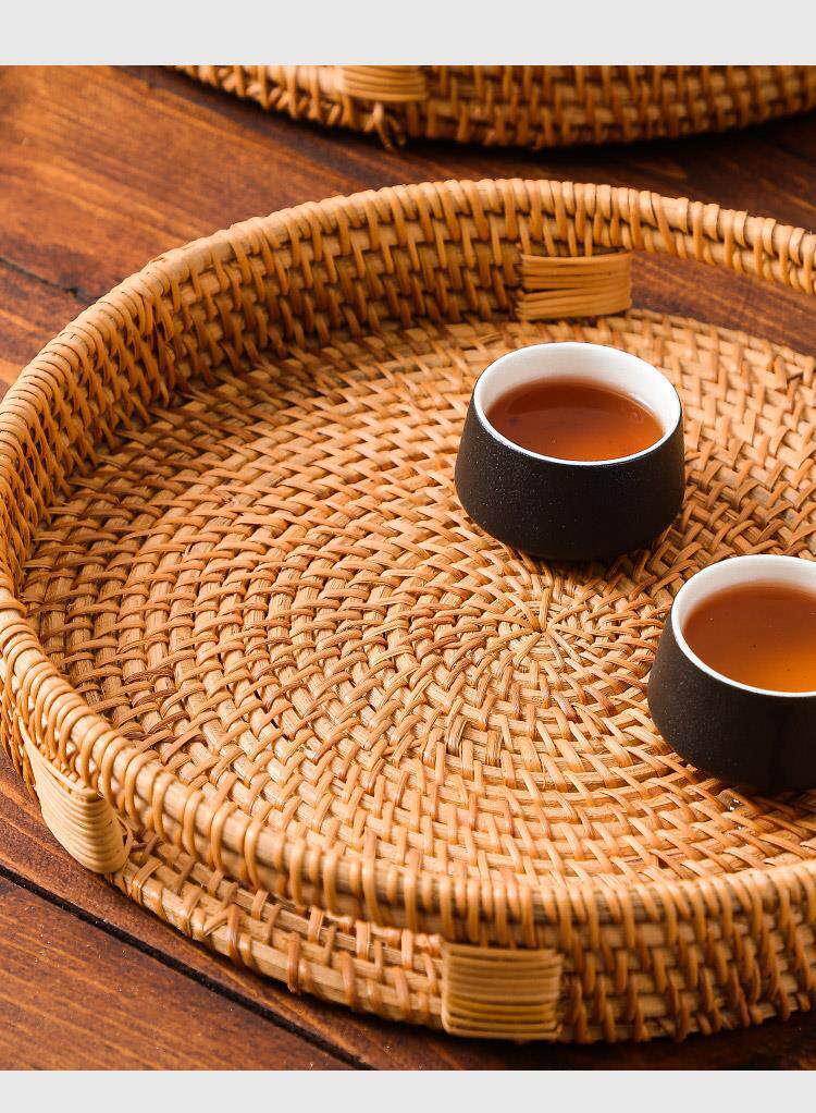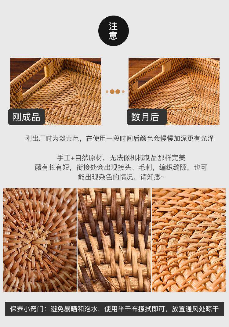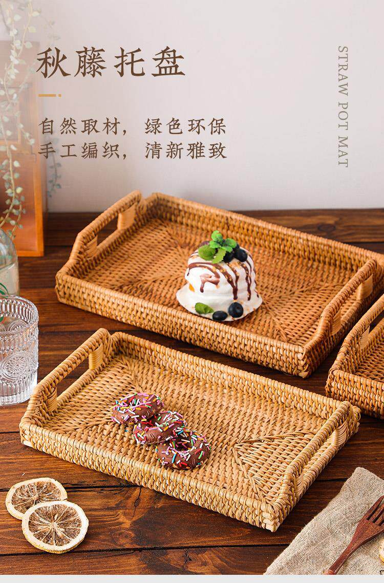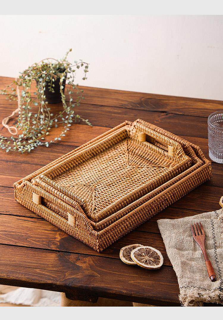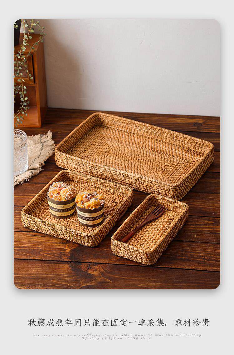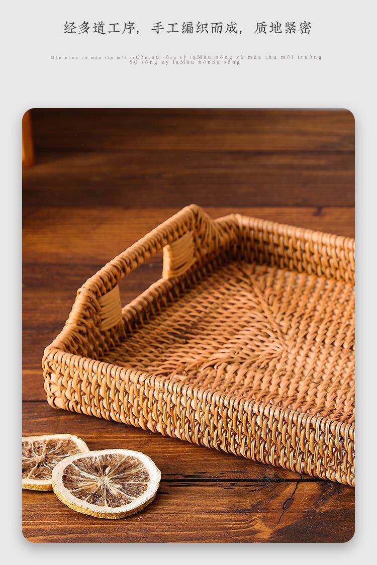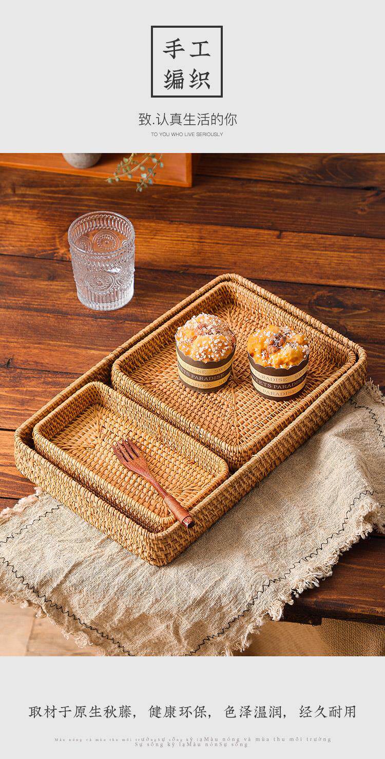 Retro Vietnamese handmade rattan rectangular buns storage basket snacks snack tray fruit basket