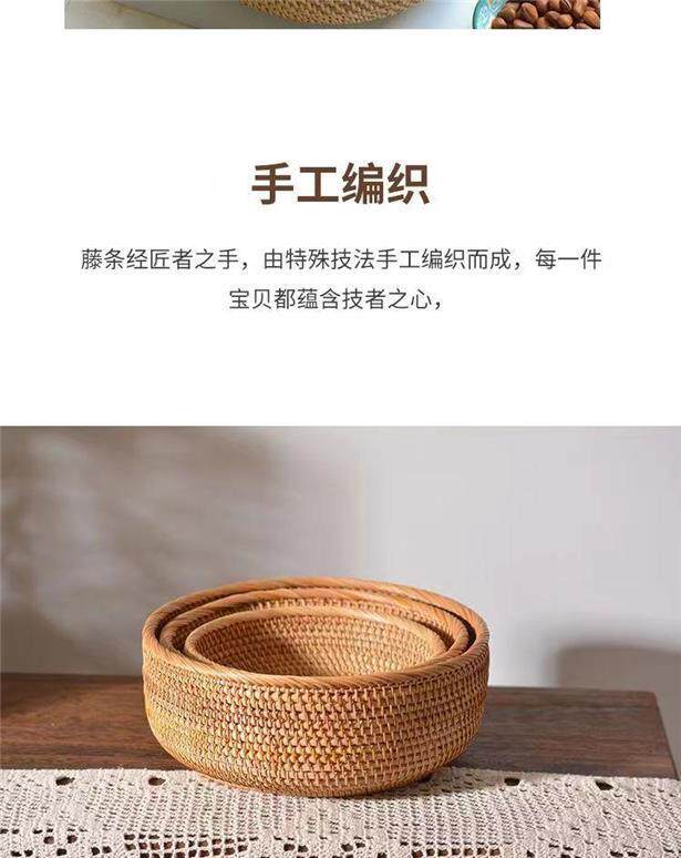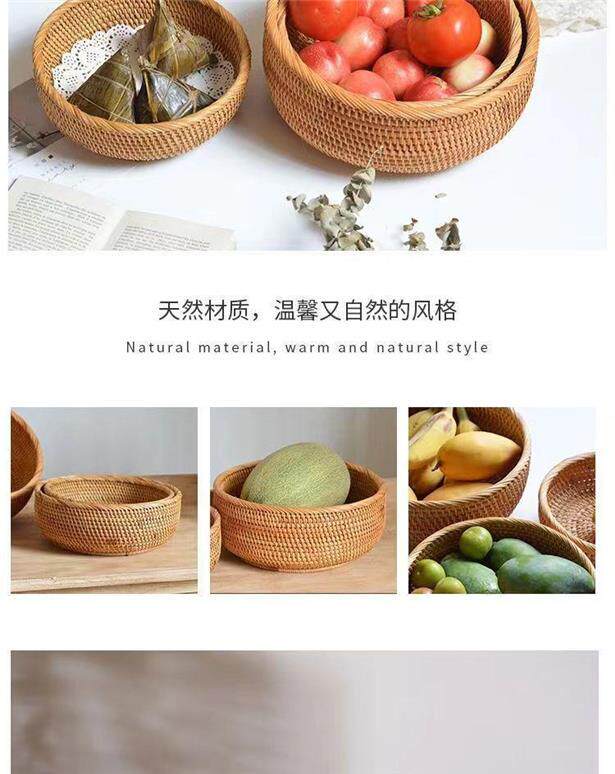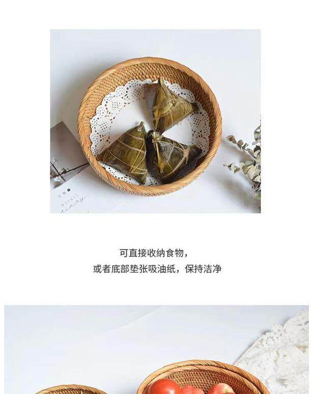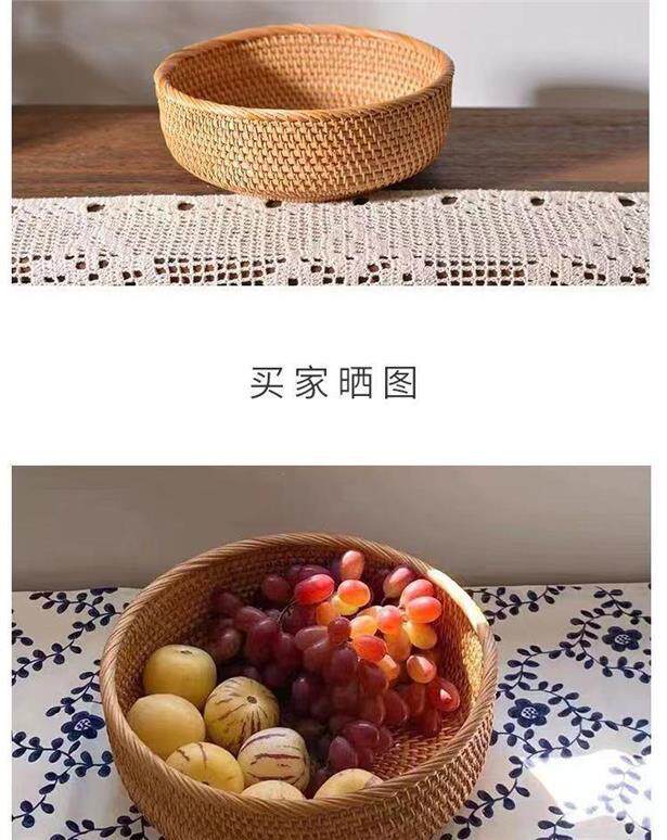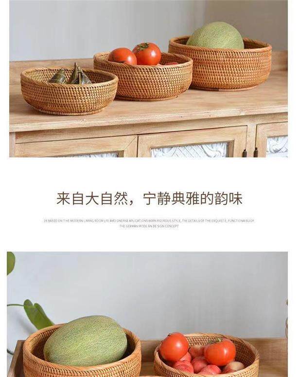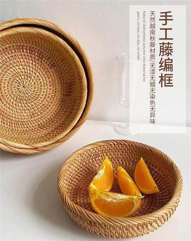 Vietnamese autumn rattan woven steamed bun storage basket handmade household round snack tray steamed bun fruit plate basket