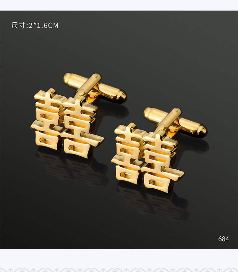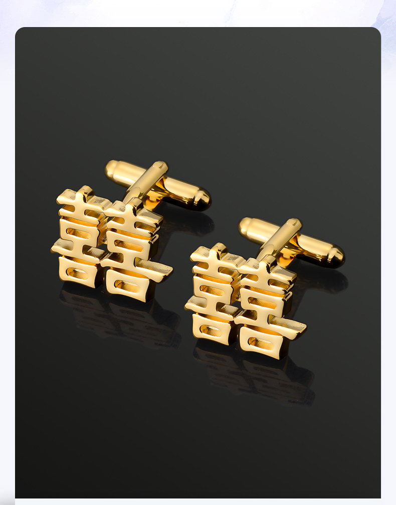 Happy Character Cufflinks for Men, French Shirt Cuff Buttons, Gold Hollow Design, Wedding Groom Tie Clip Set
