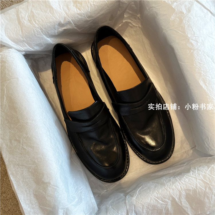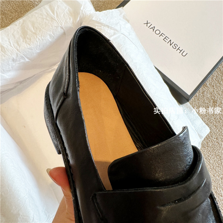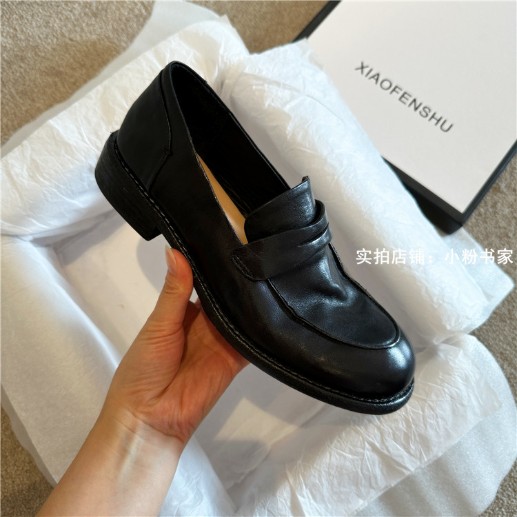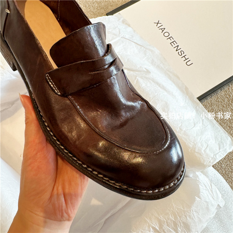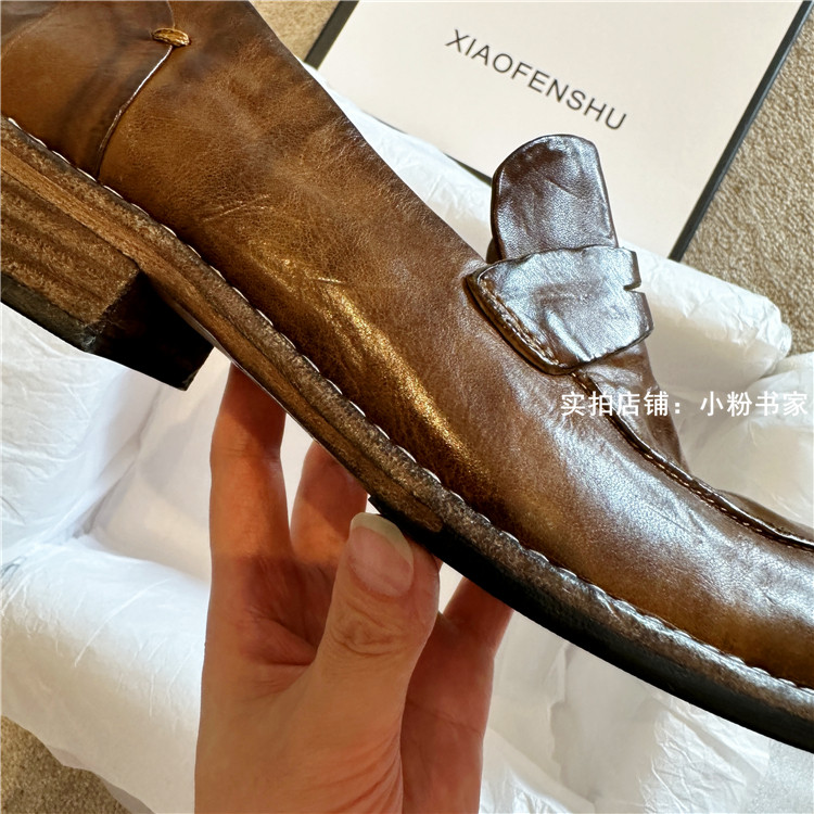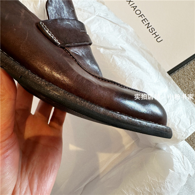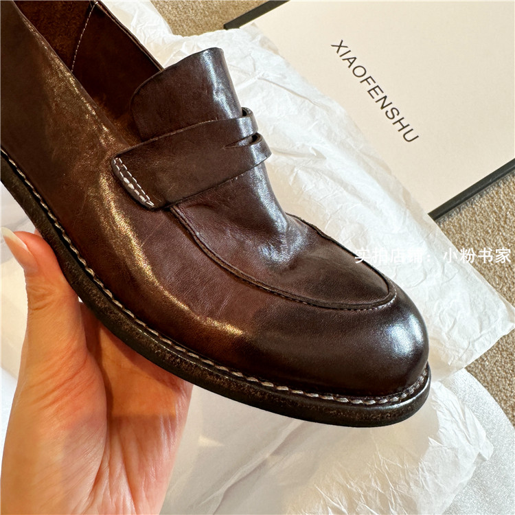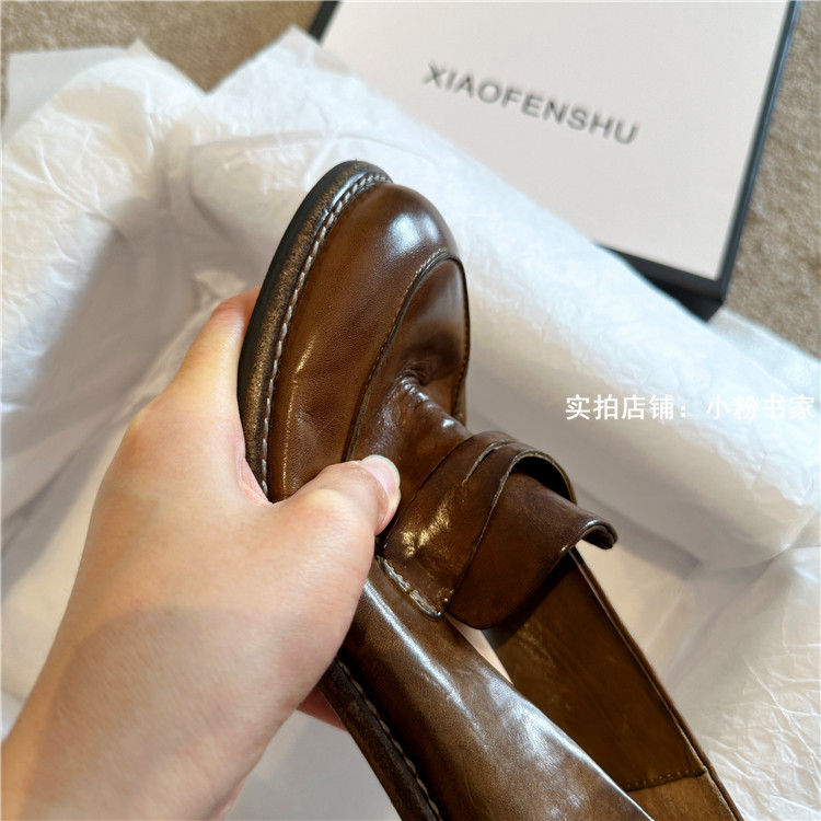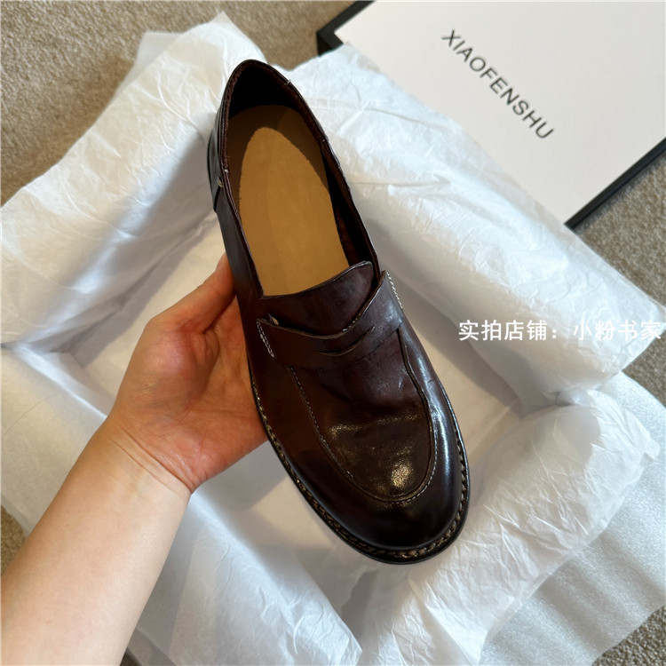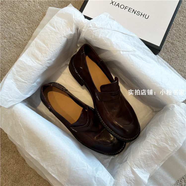 Handmade shoes horsehide washed retro distressed loafers for women autumn and winter new British style small leather shoes soft leather shoes