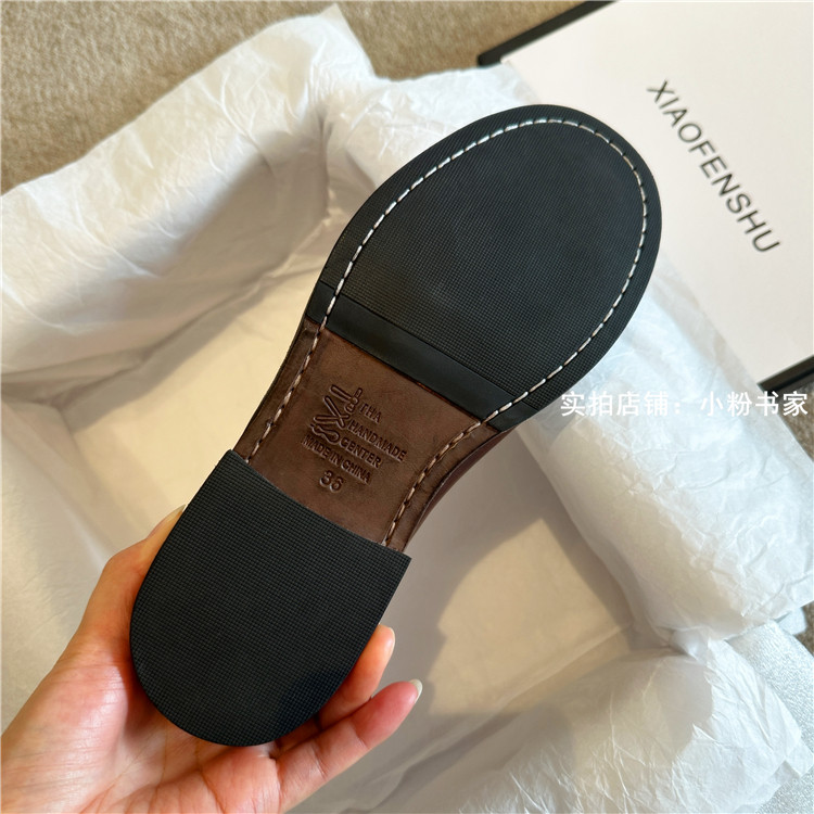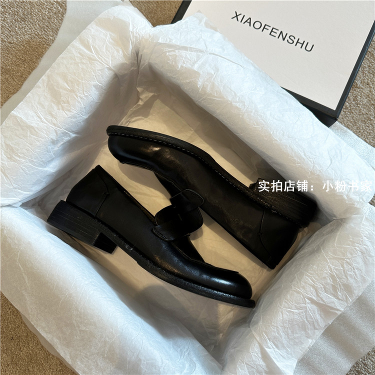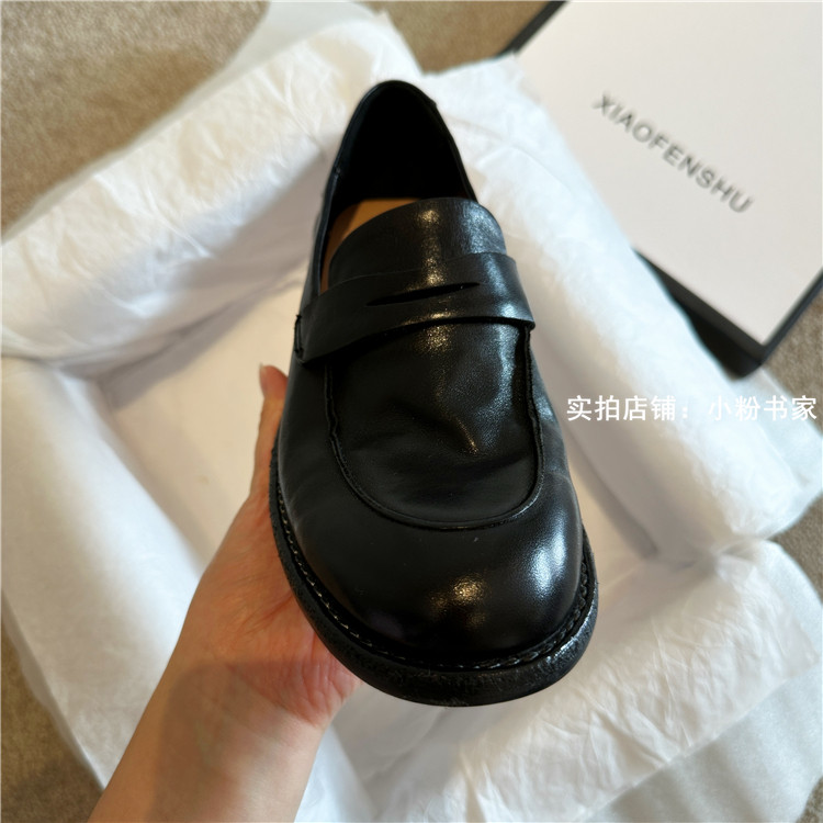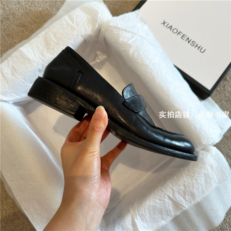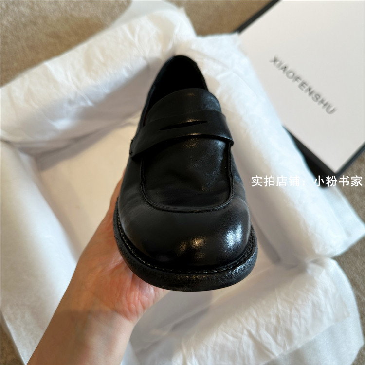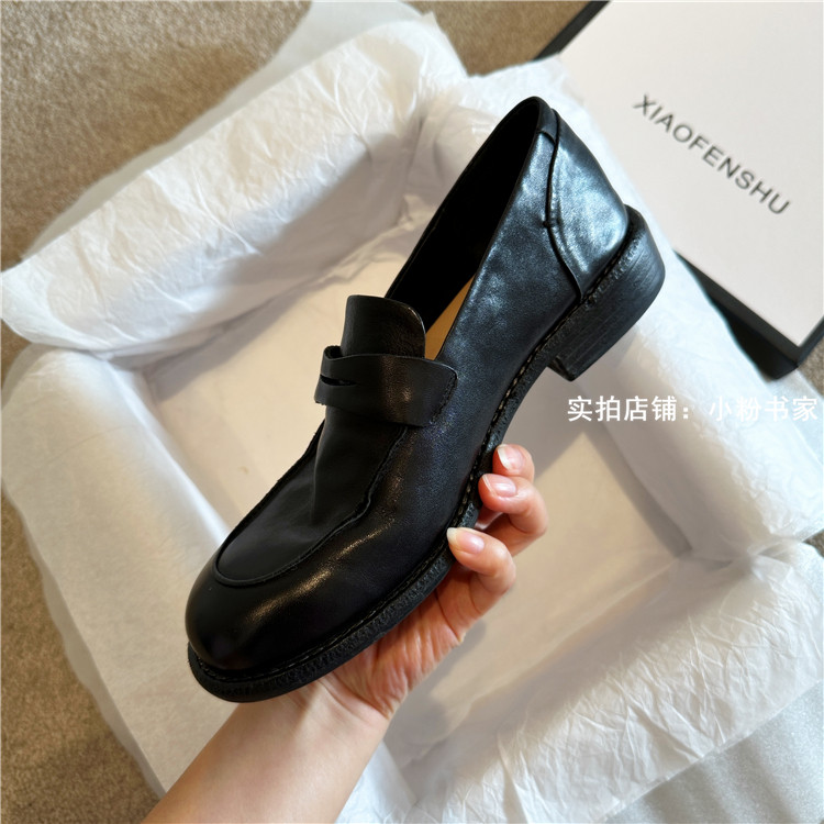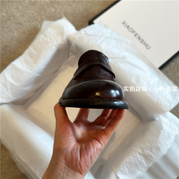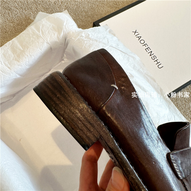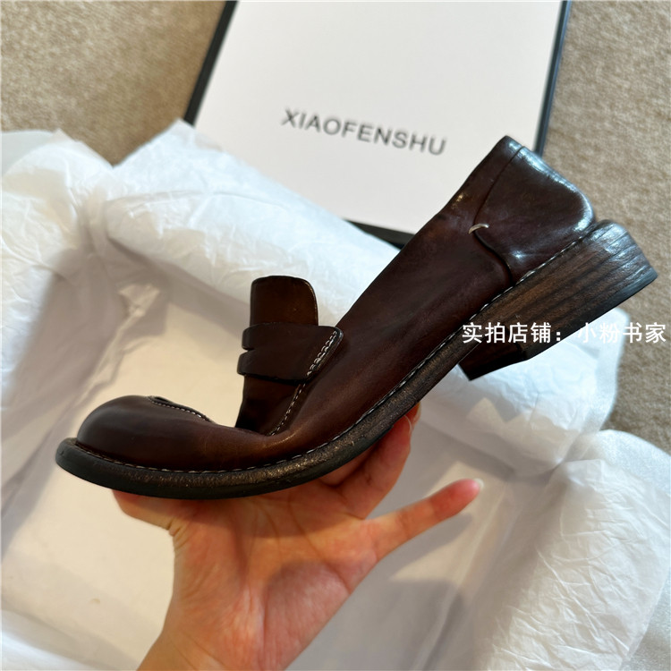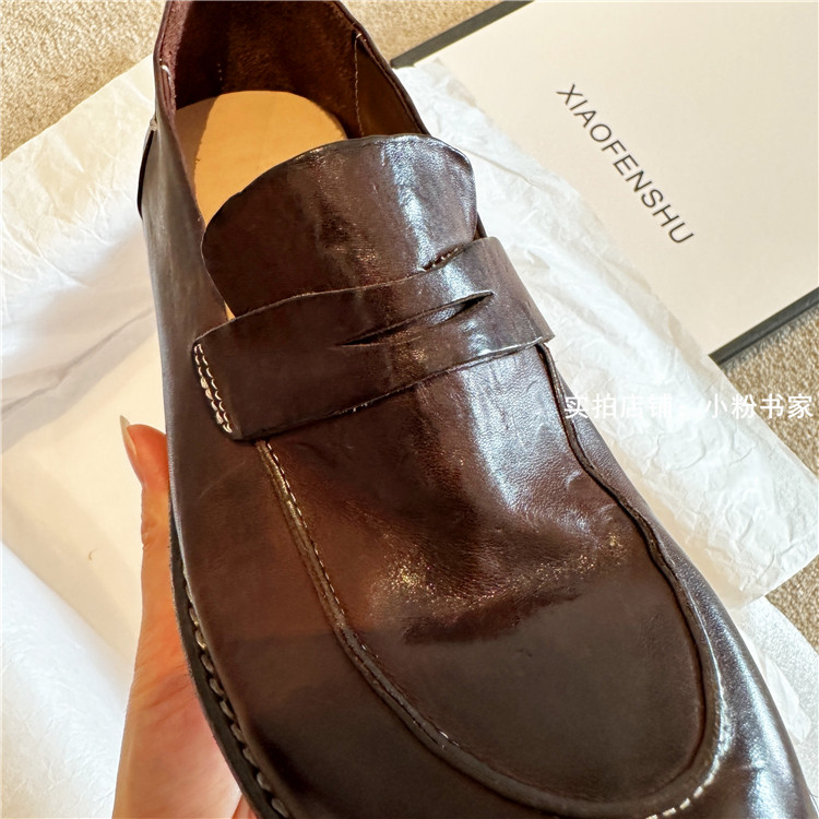 Handmade shoes horsehide washed retro distressed loafers for women autumn and winter new British style small leather shoes soft leather shoes
