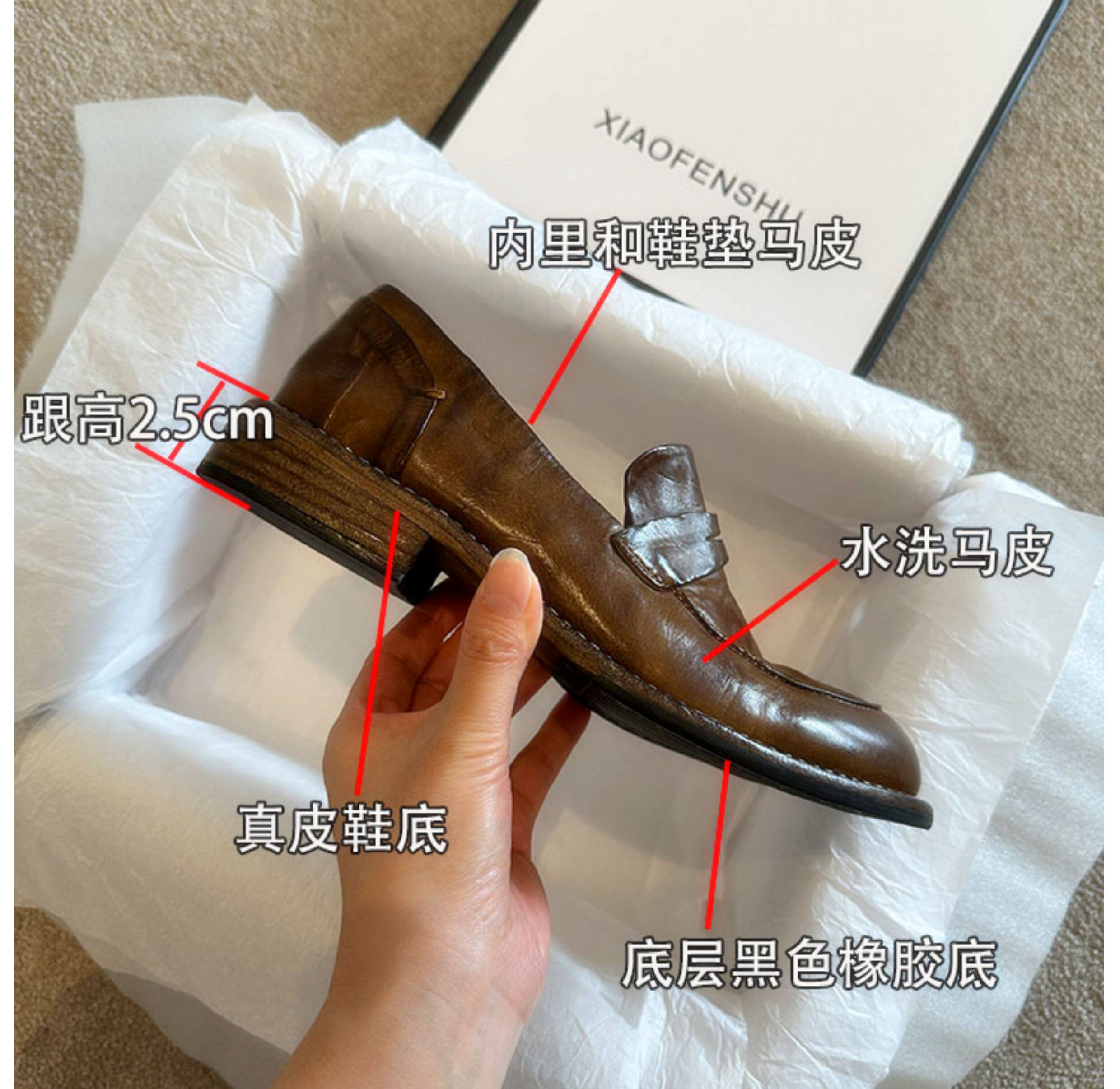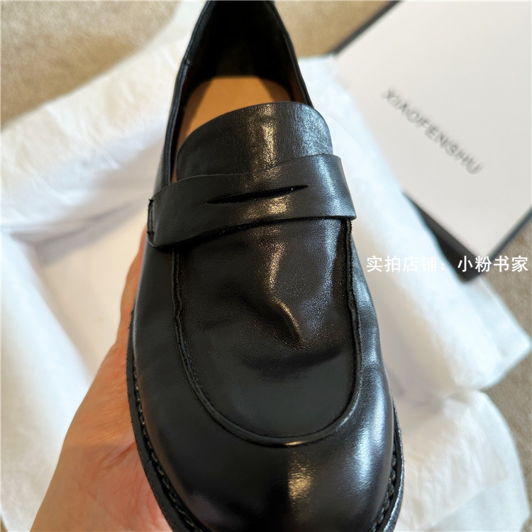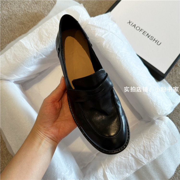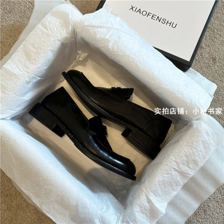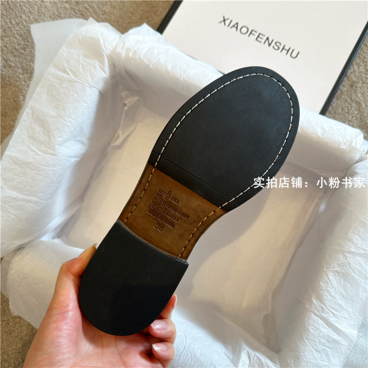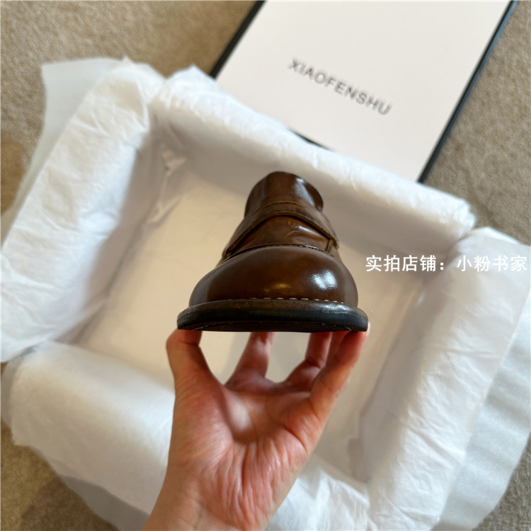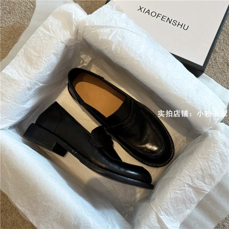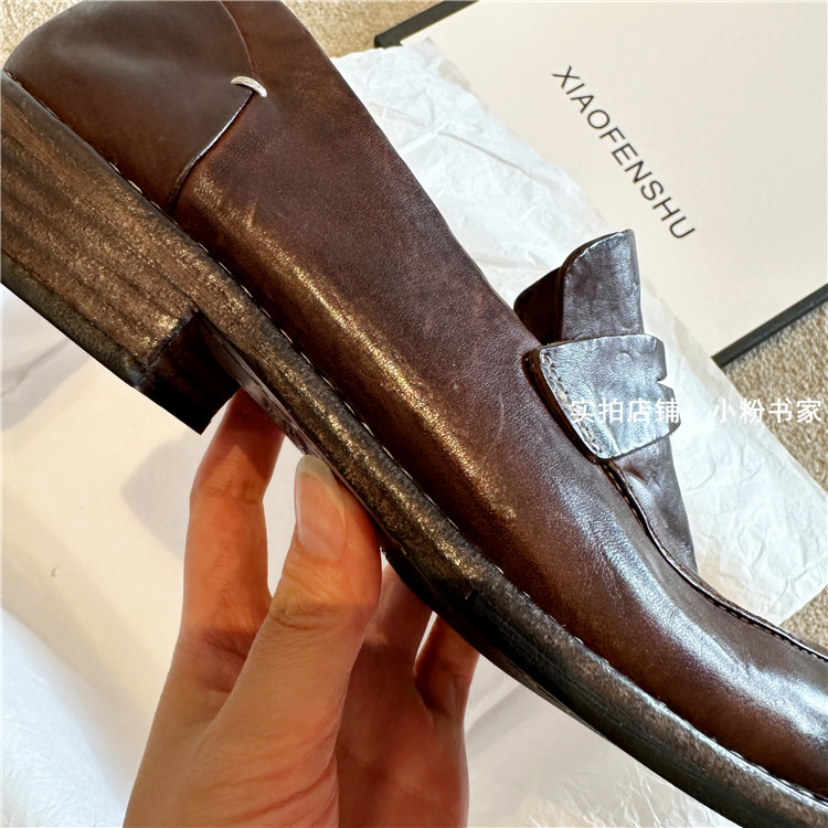 Handmade shoes horsehide washed retro distressed loafers for women autumn and winter new British style small leather shoes soft leather shoes