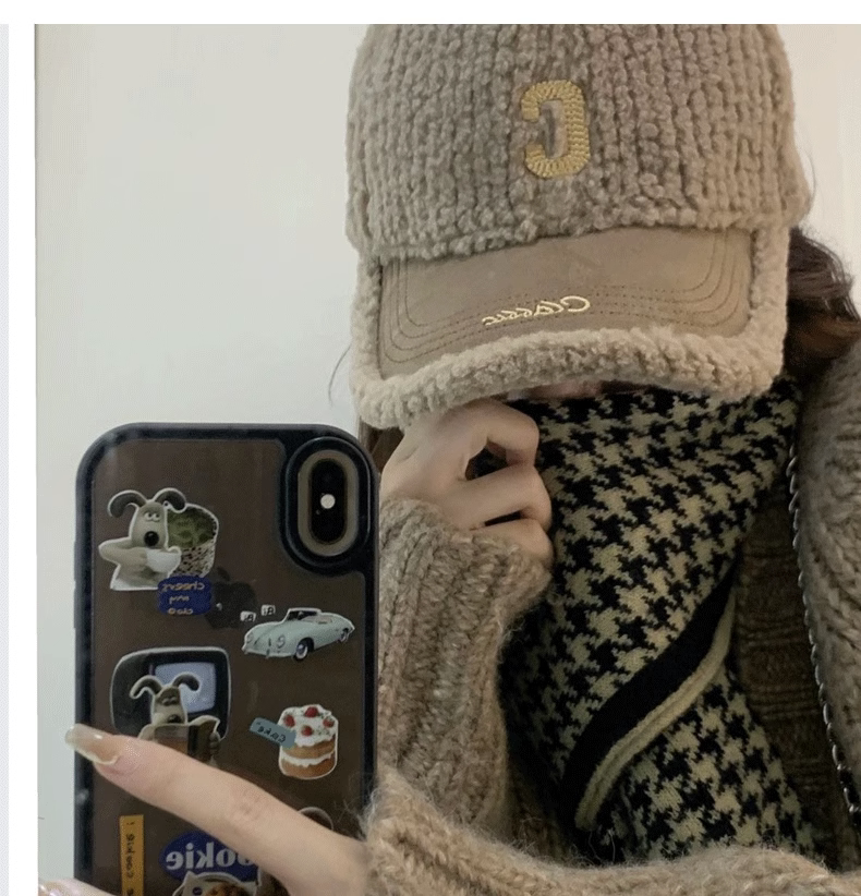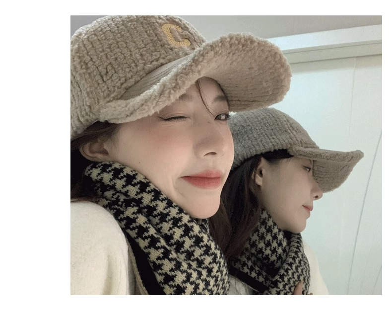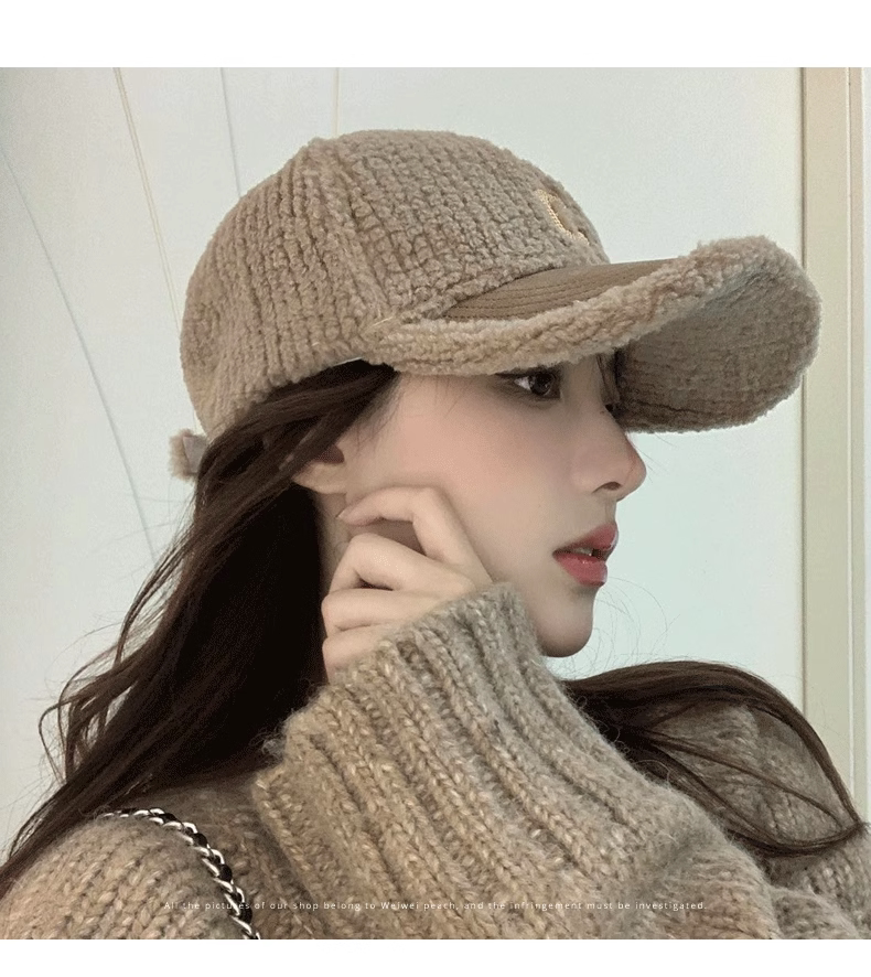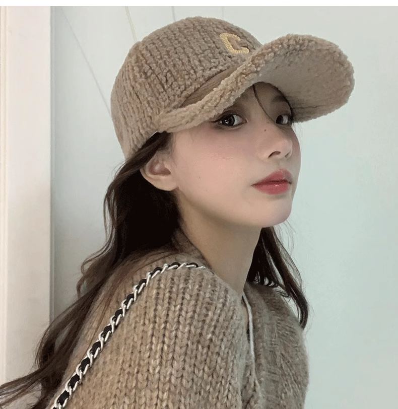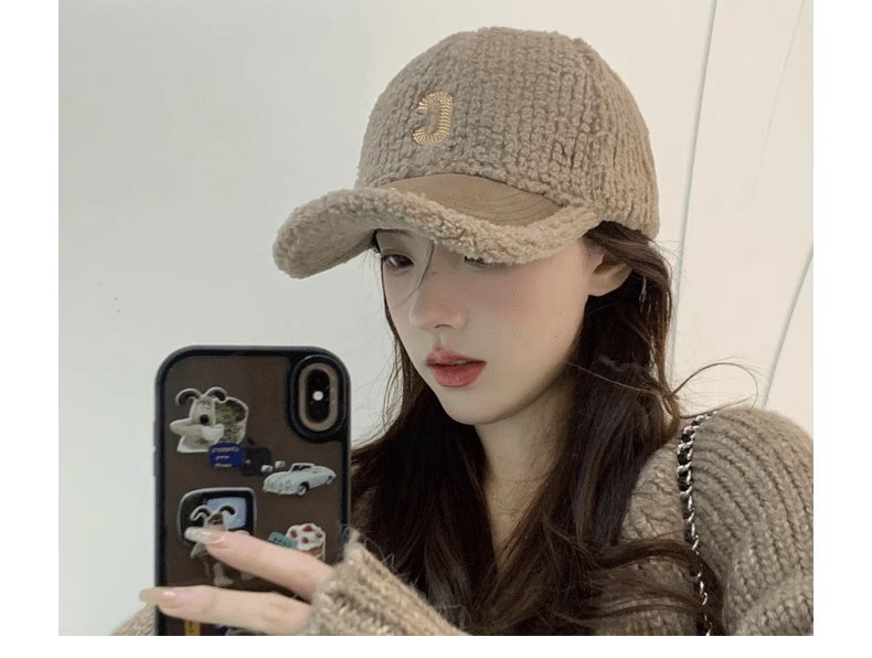 Mqvq Lamb Wool Baseball Cap for Women, Winter New Letter Design, Versatile, Face-Slimming, Thickened Deep Crown, Large Head Circumference