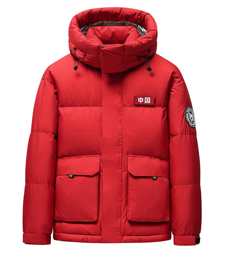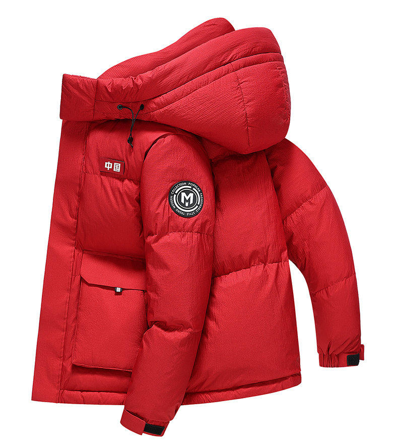 Red Dragonfly Hooded down Jacket for Men 2025 Winter New Trendy Casual Cold-Proof Warm Red Coat for Men