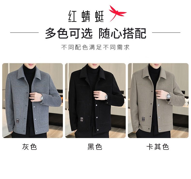 Мужское шерстяное пальто Red Dragonfly, новая осенне-зимняя модель, модная повседневная куртка с лацканами для мужчин.
