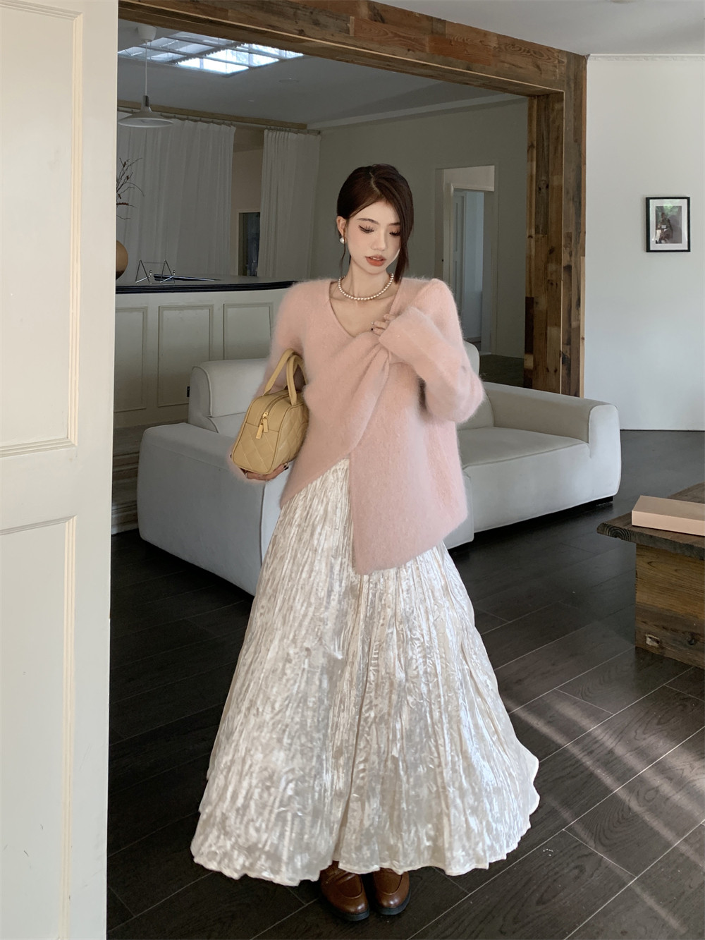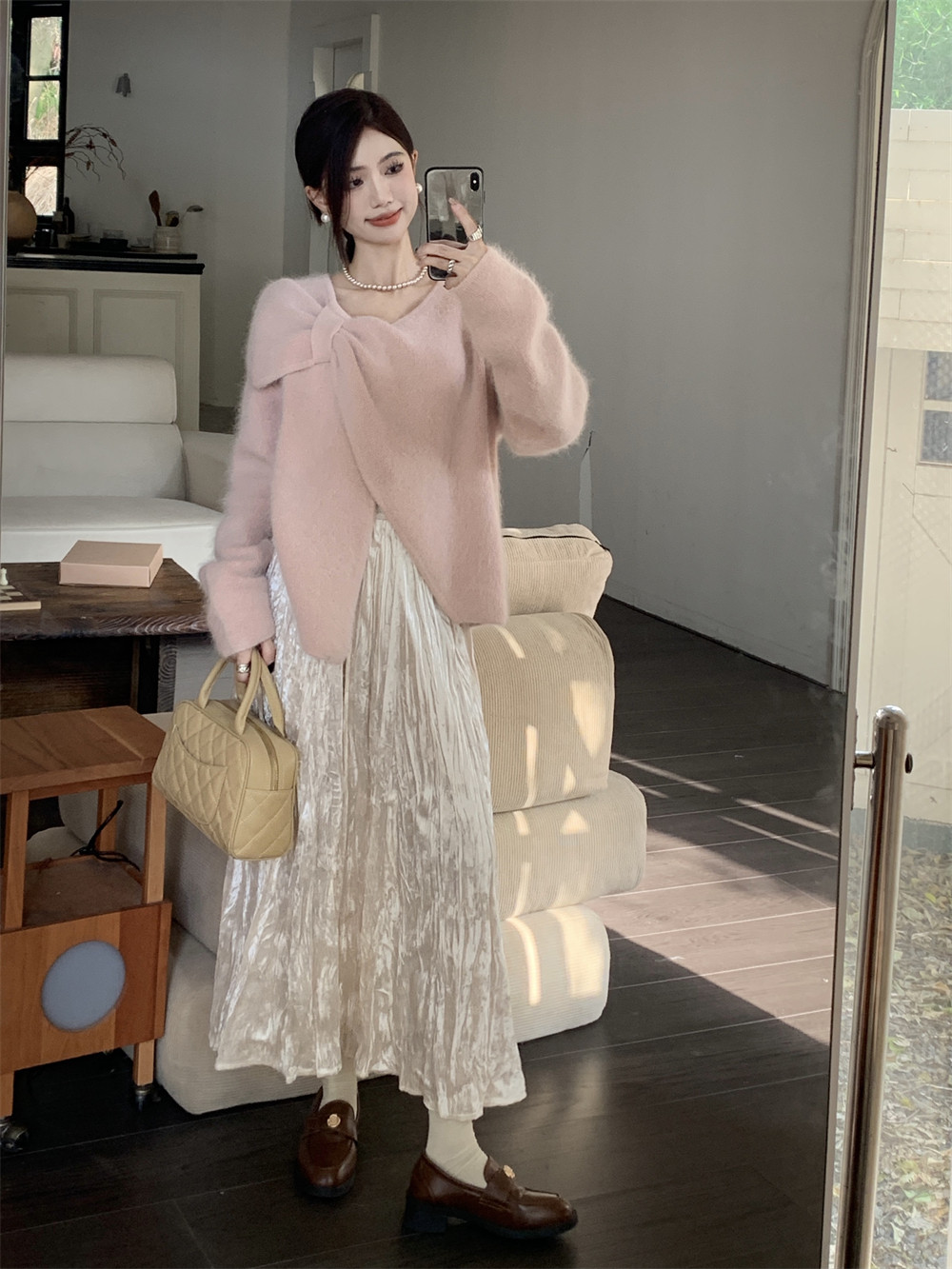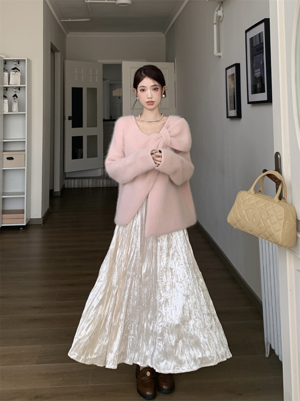 Fufu's small fragrant sweater suit skirt for women in autumn and winter, small and gentle, sweet and cute two-piece set