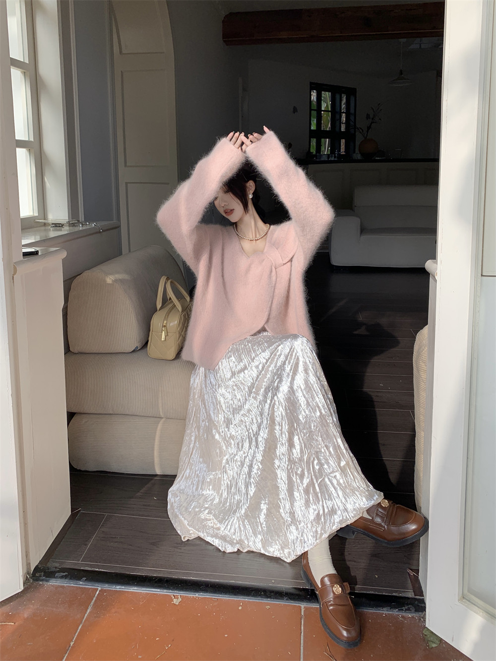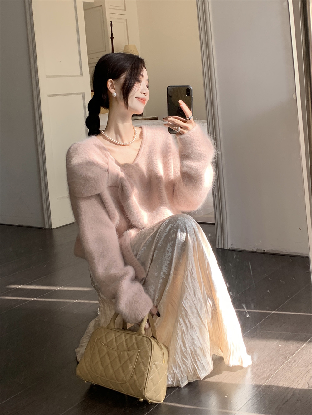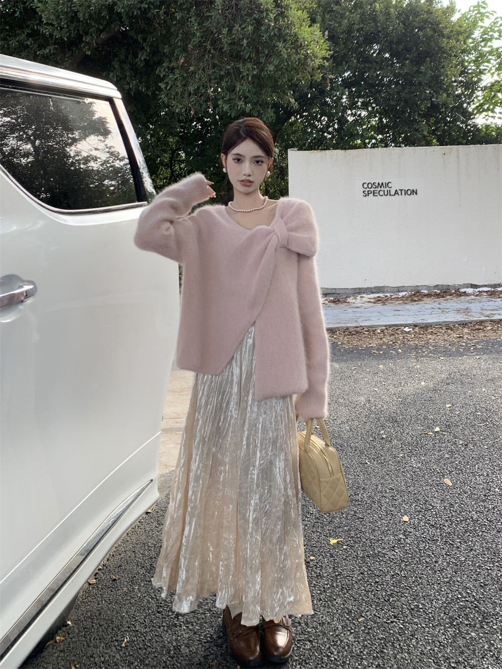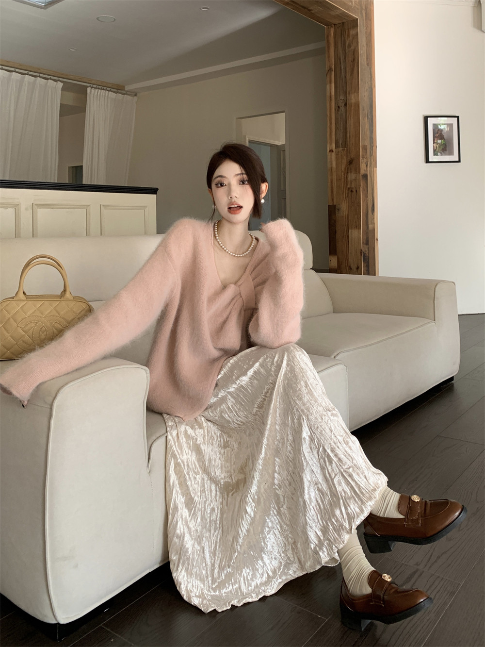 Fufu's small fragrant sweater suit skirt for women in autumn and winter, small and gentle, sweet and cute two-piece set
