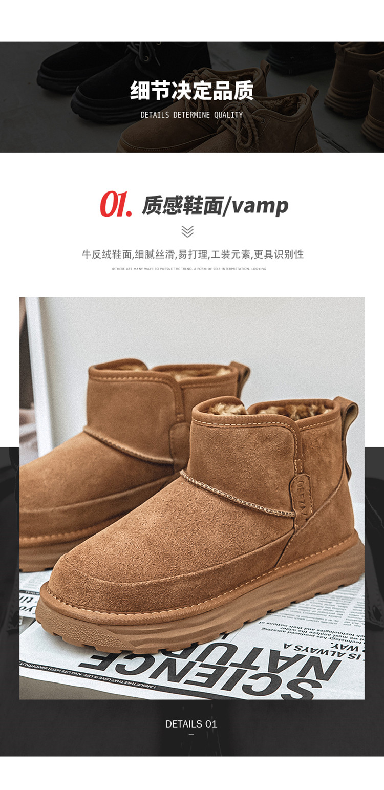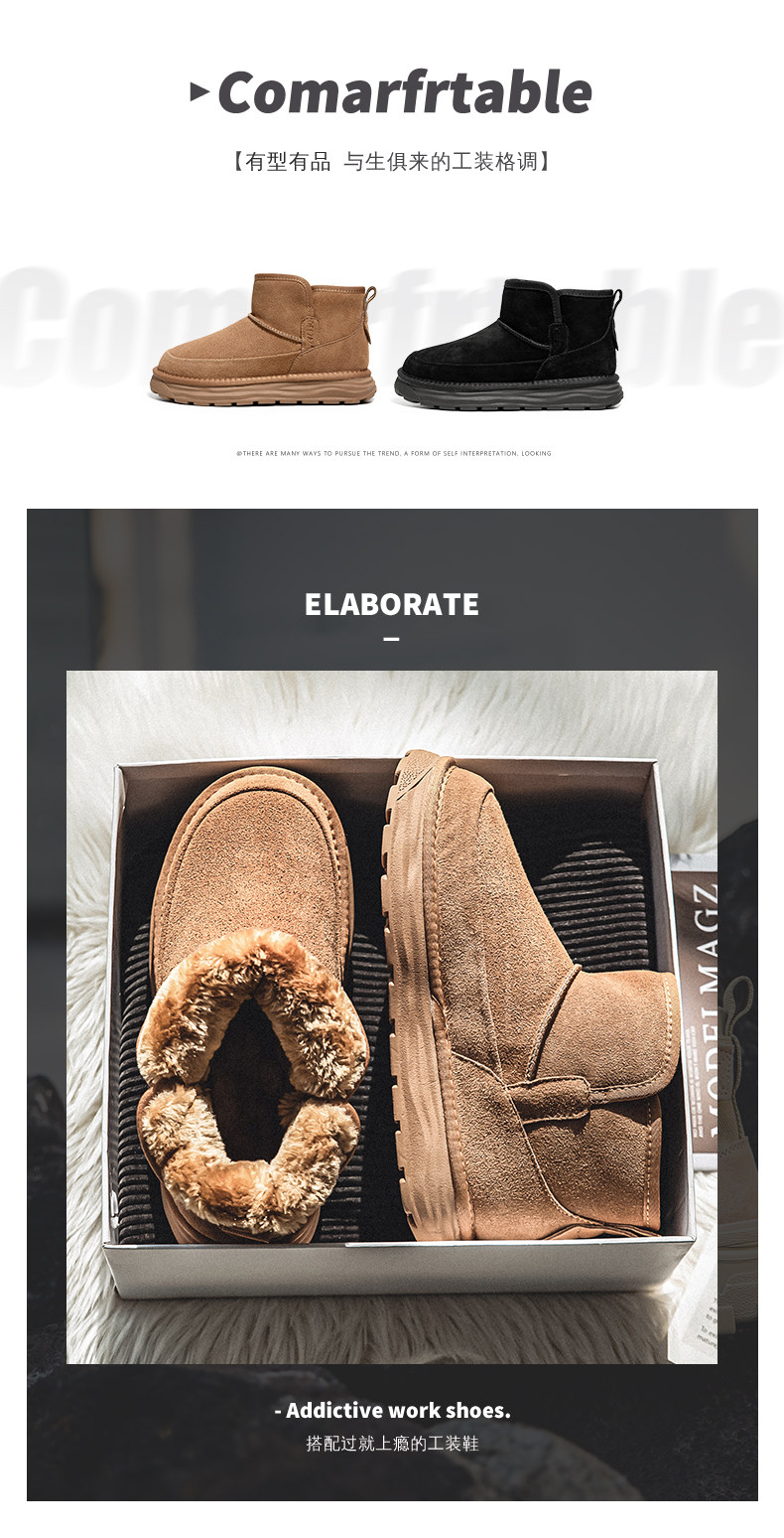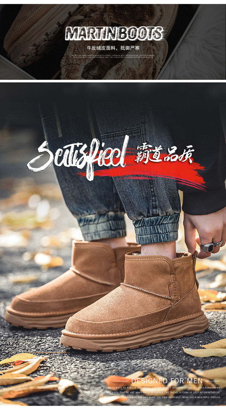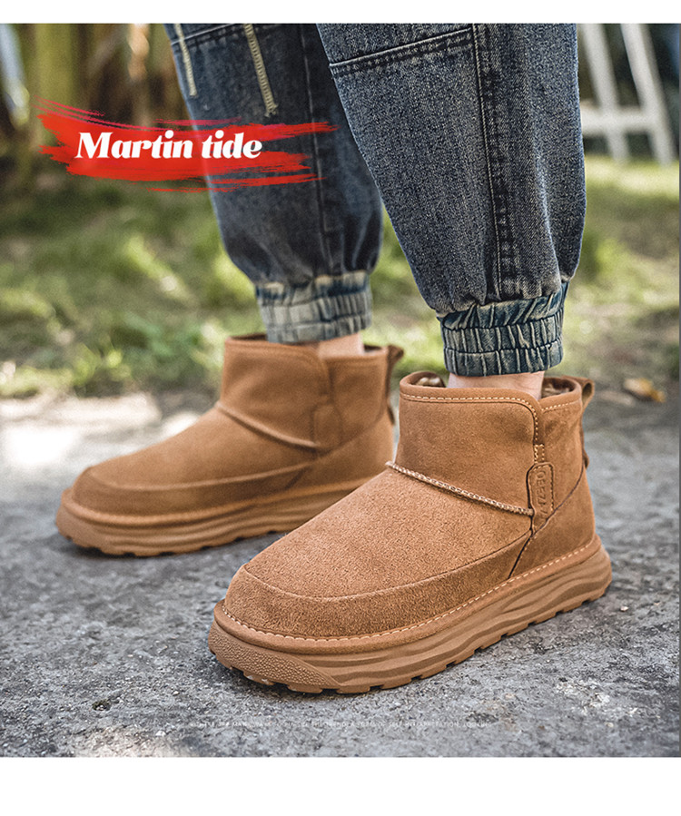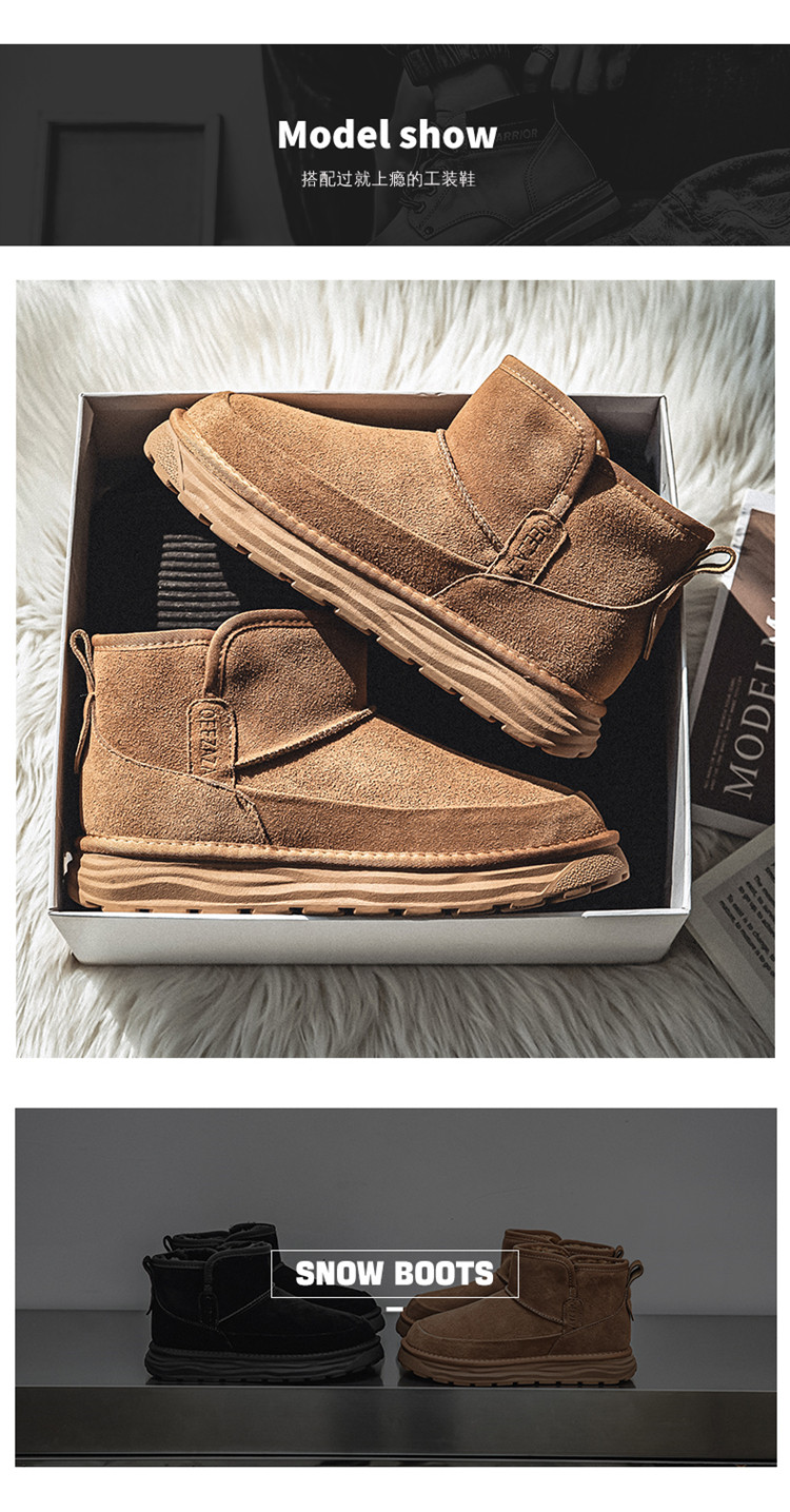 Men's Snow Boots, Northeast-Style Large Cotton Shoes, Cold-Resistant, Non-Slip, Thick-Soled, Genuine Leather, High-Top, Winter Fleece-Lined, Thickened, Warm Loafers