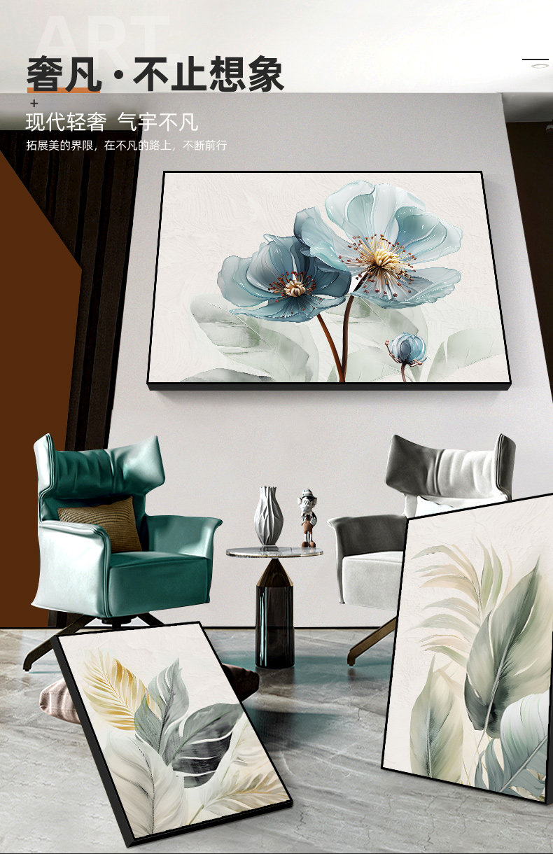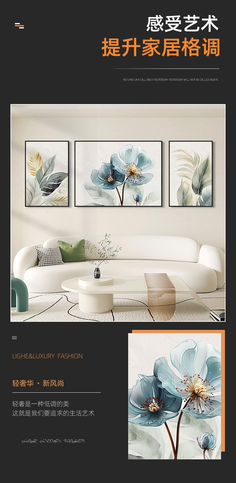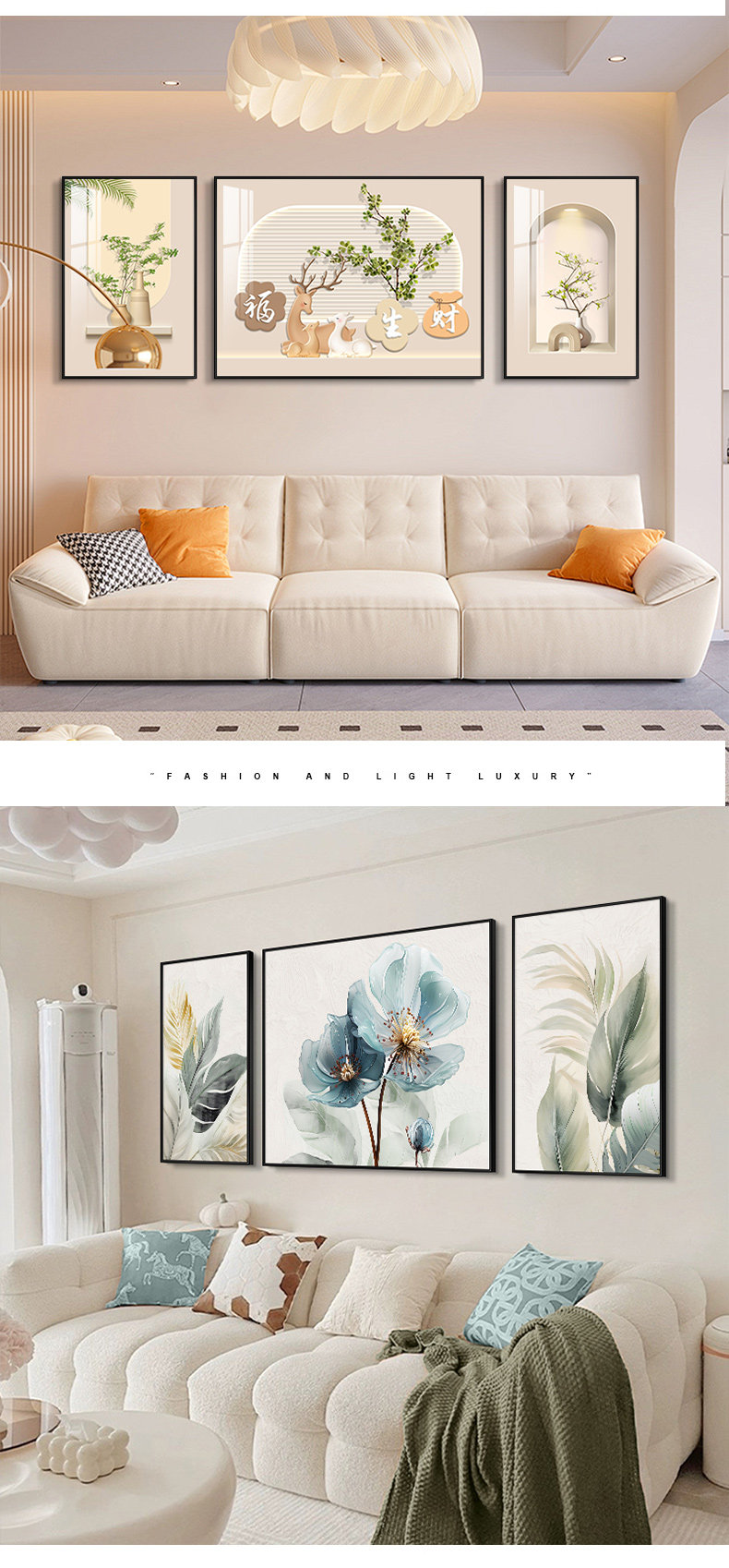 Living room decorative painting, modern minimalist sofa background wall hanging painting, light luxury mural, atmospheric wall painting, high-end triptych
