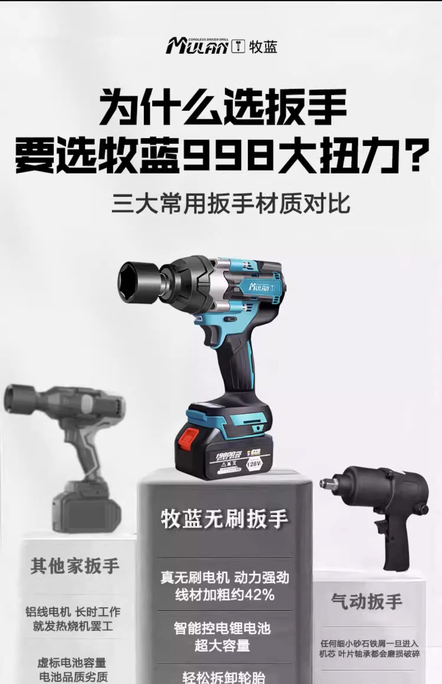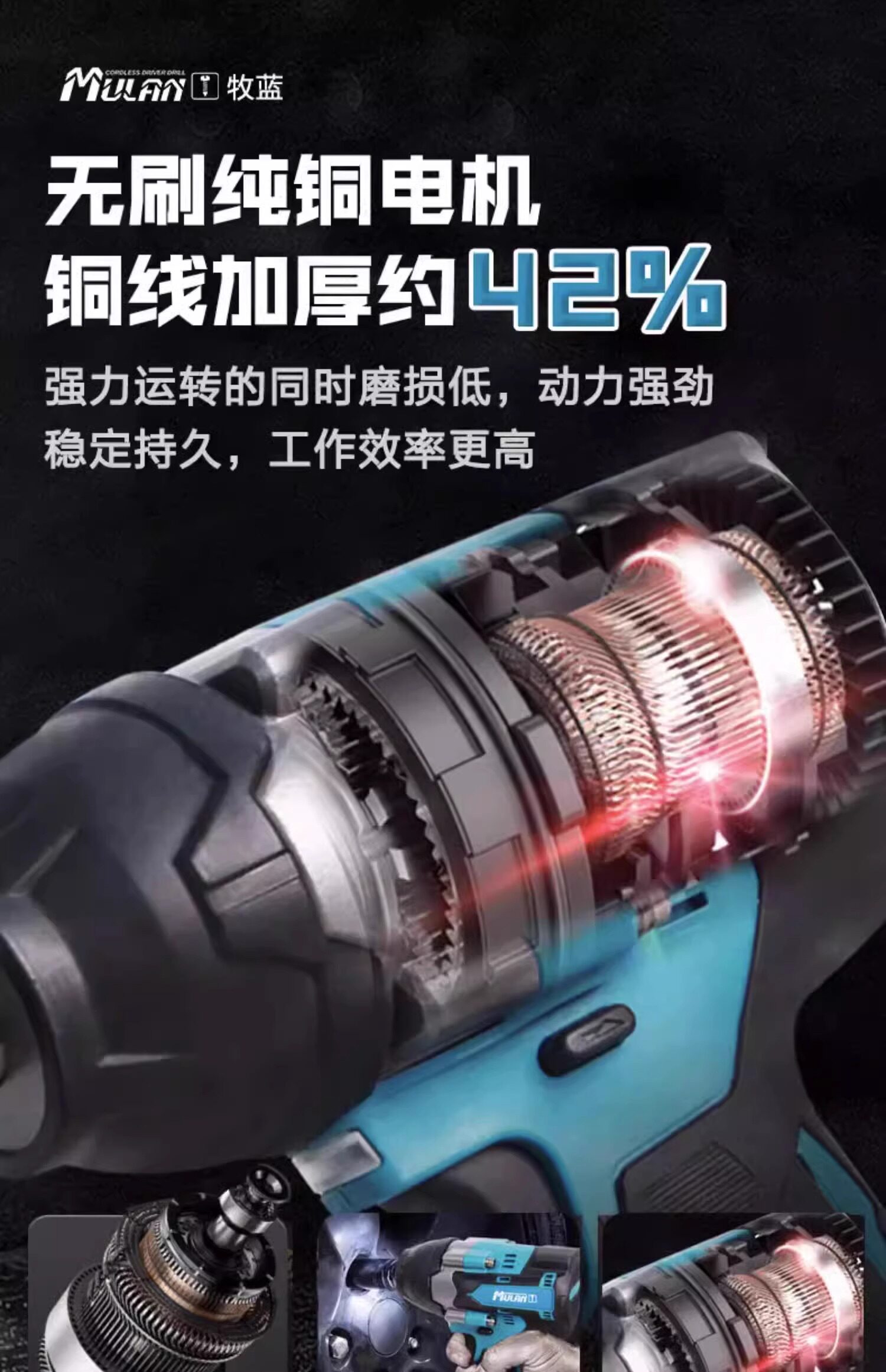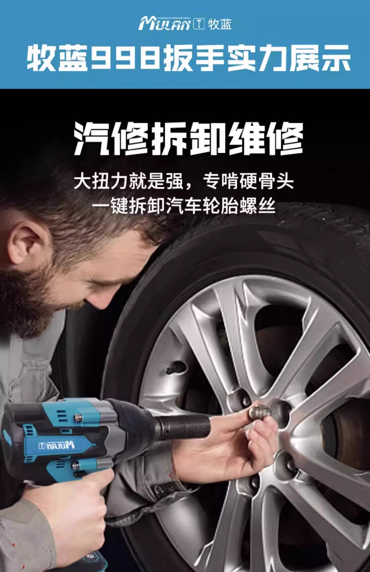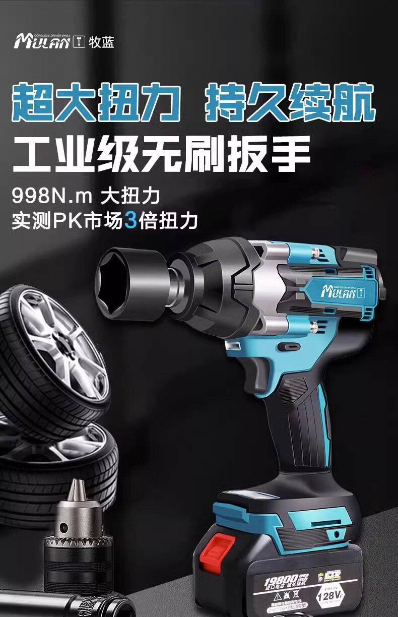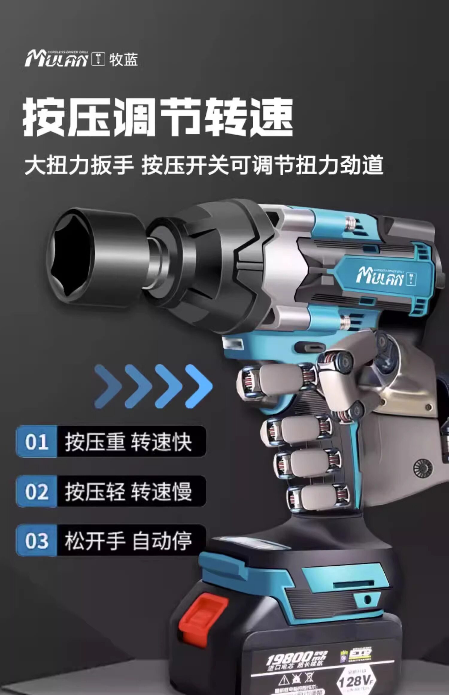 German high-torque electric wrench for auto repair, brushless heavy-duty lithium impact wrench, electric wind cannon charging storm